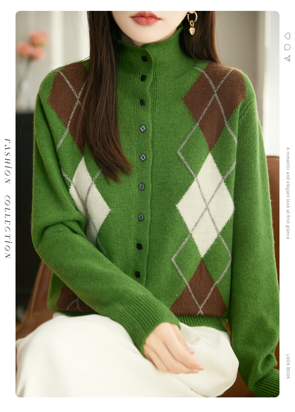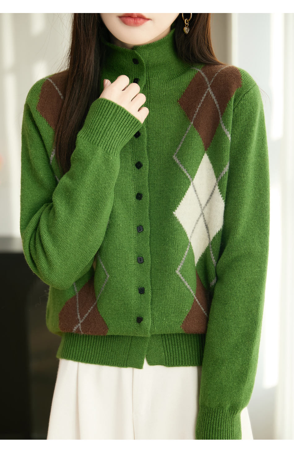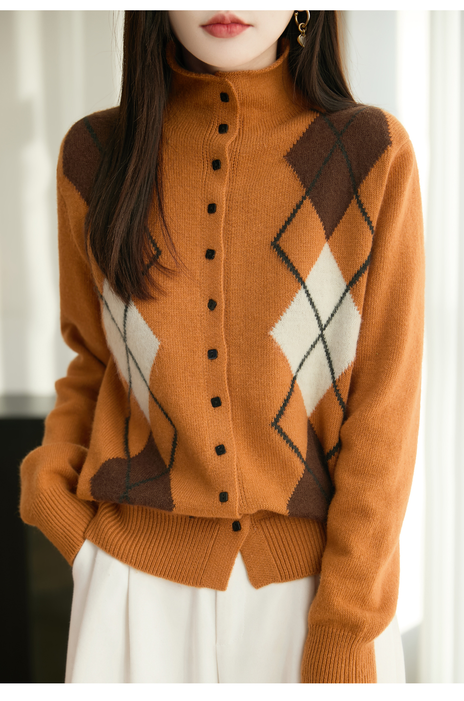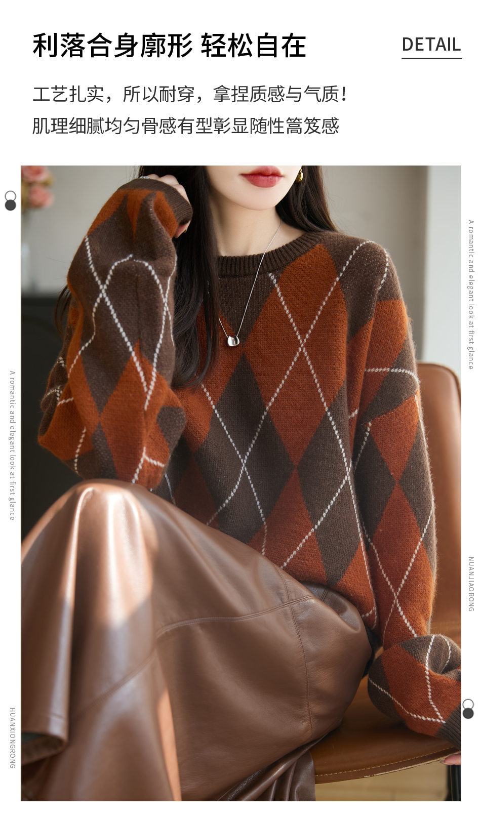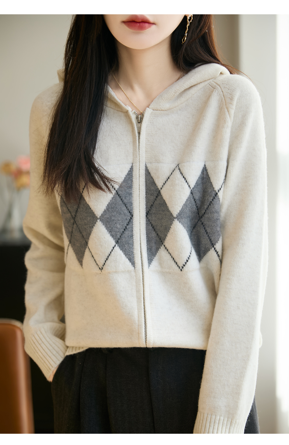 「纤束马」浣熊绒菱形格毛衣 , 传递出复古文艺的英伦气息,是时尚界的永恒经典