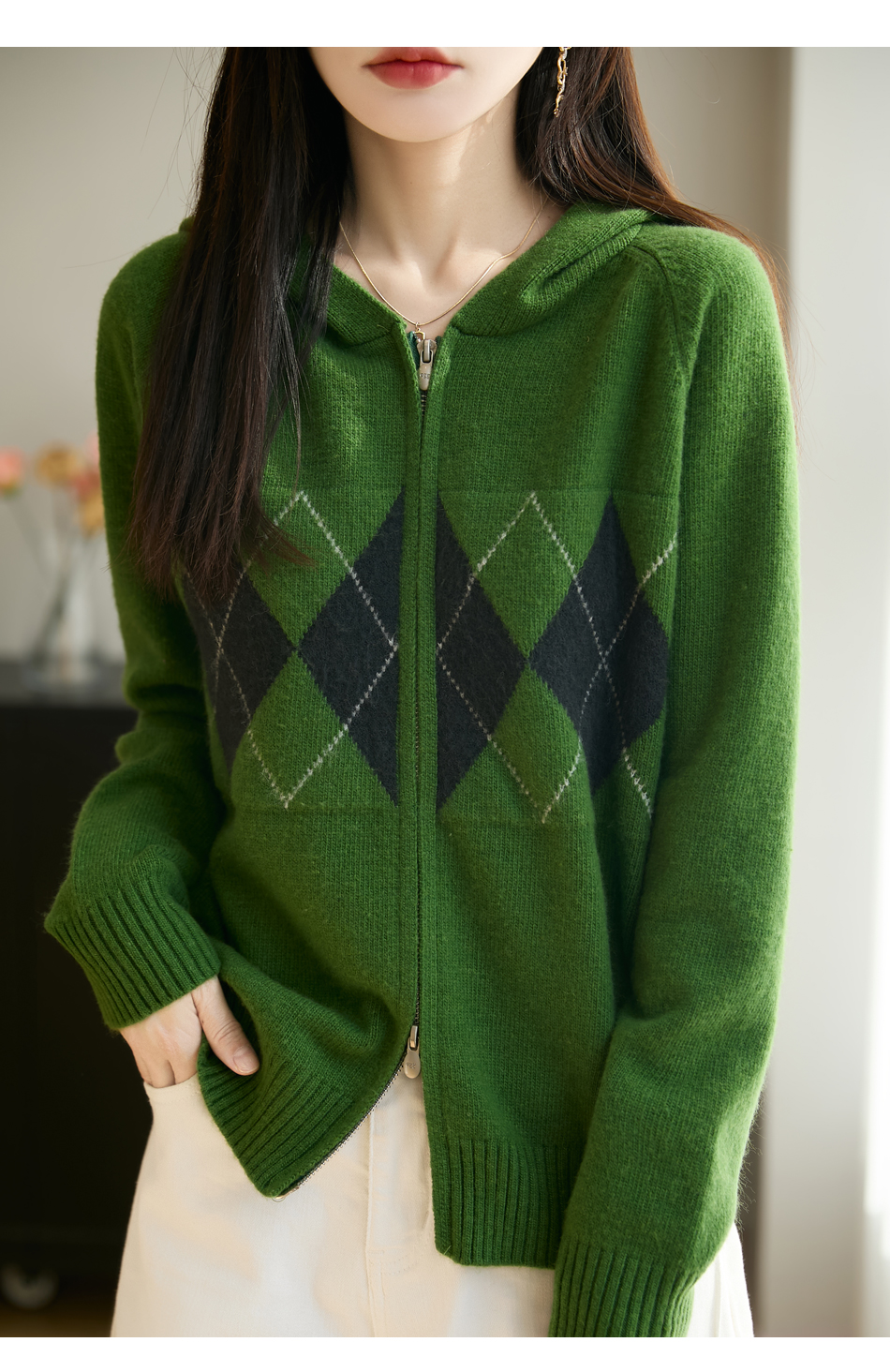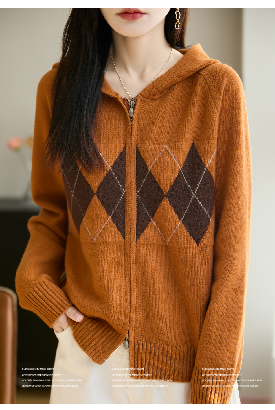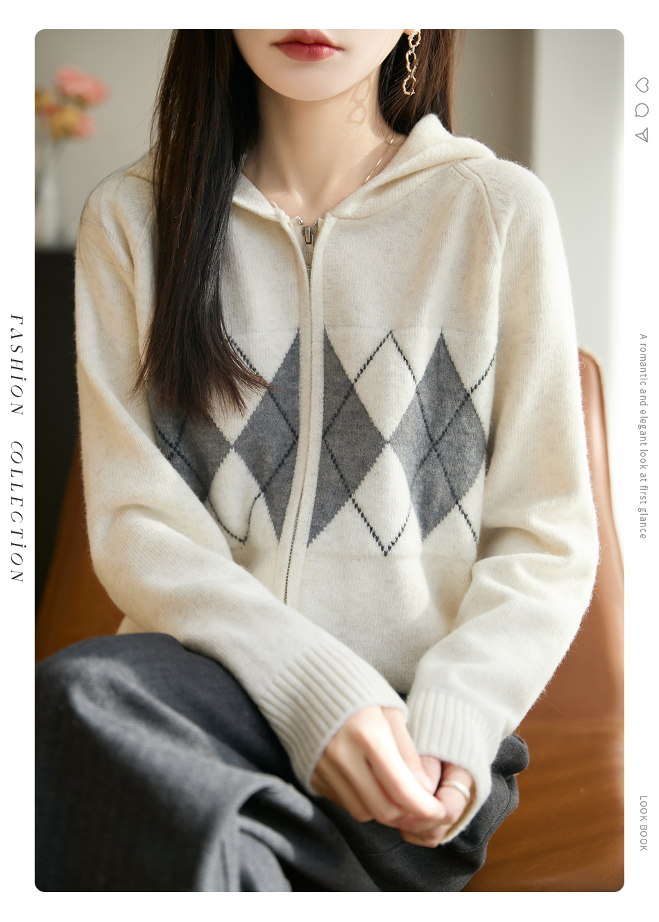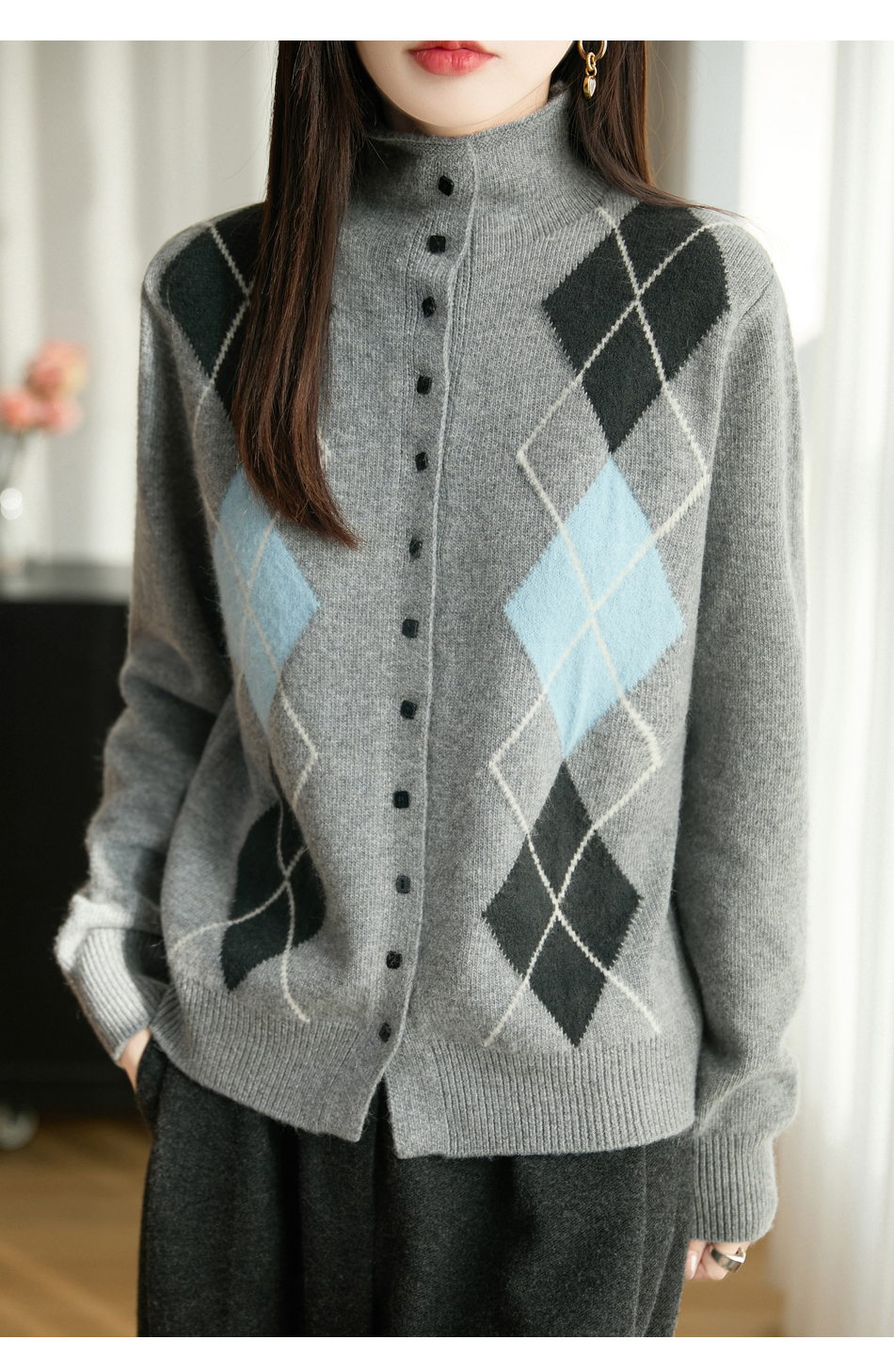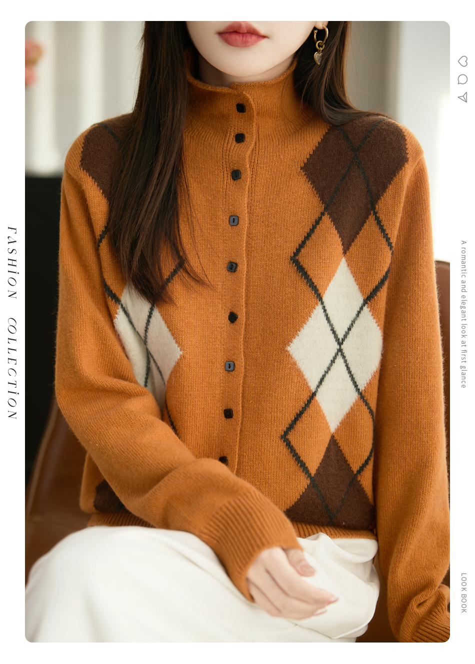 「纤束马」浣熊绒菱形格毛衣 , 传递出复古文艺的英伦气息,是时尚界的永恒经典