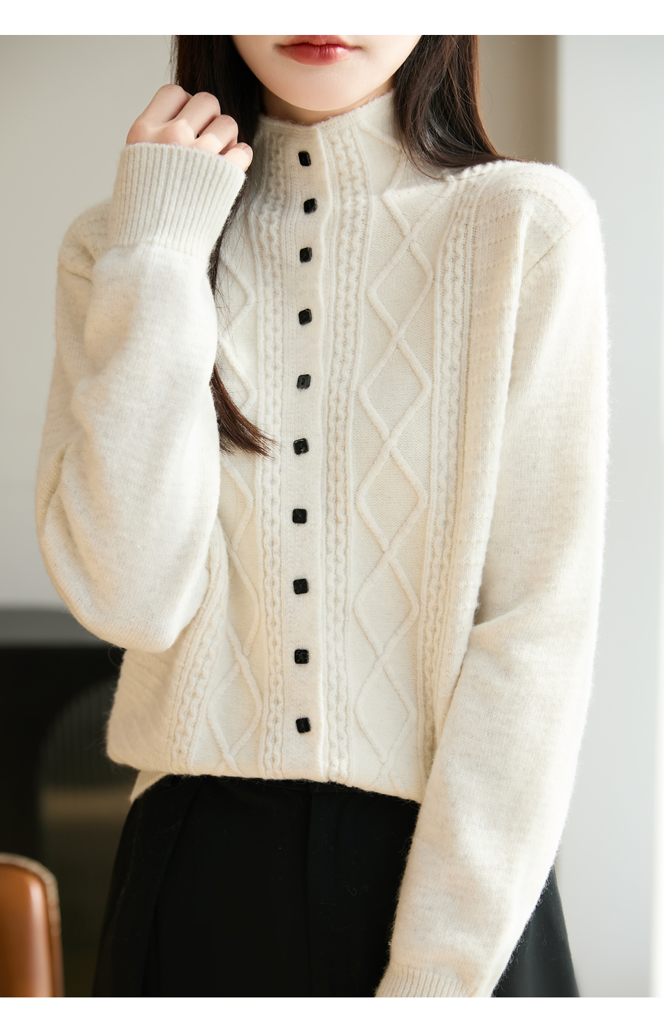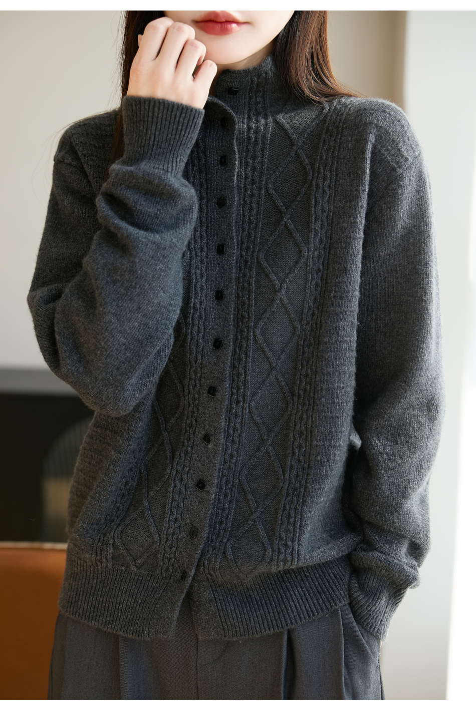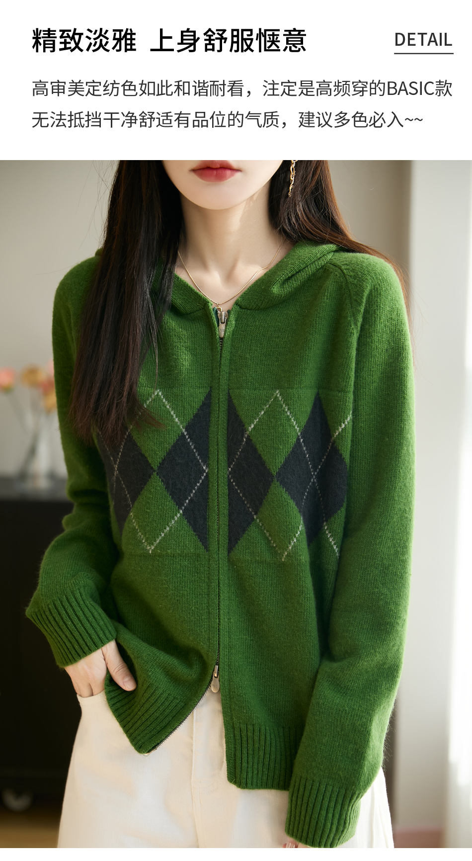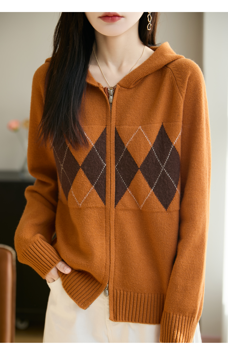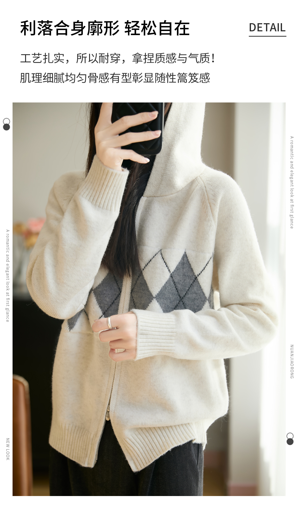 「纤束马」浣熊绒菱形格毛衣 , 传递出复古文艺的英伦气息,是时尚界的永恒经典