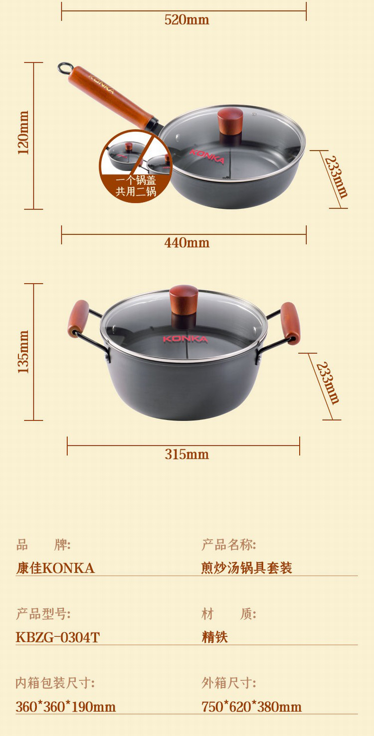 康佳(KONKA)煎炒汤锅具三件套KBZG-0304T