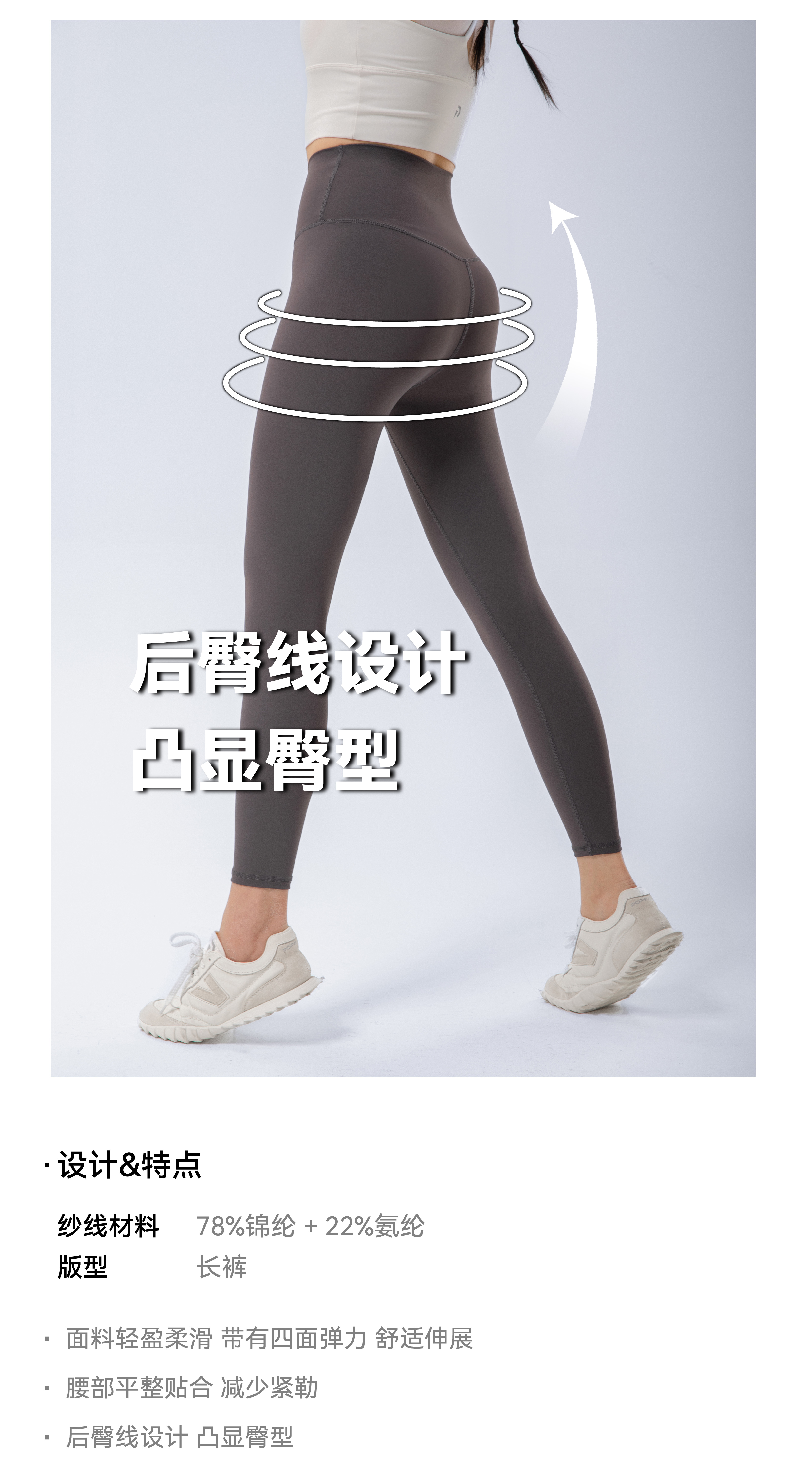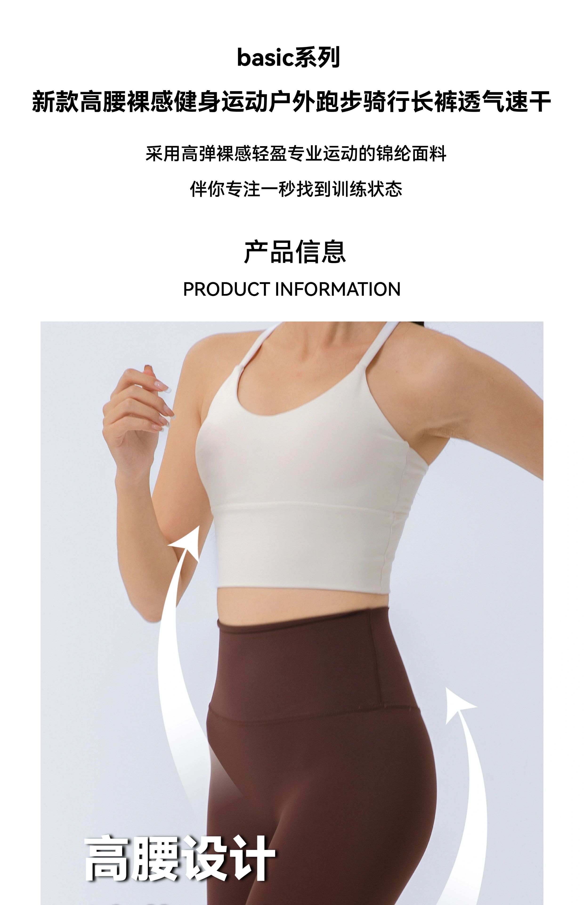 POPBASIC新款臀训裤高腰裸感健身运动户外跑步骑行长裤透气速干