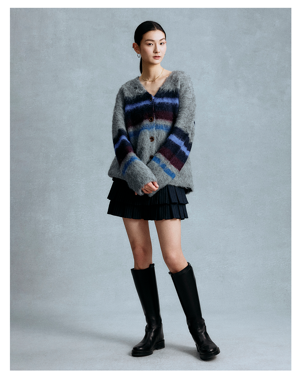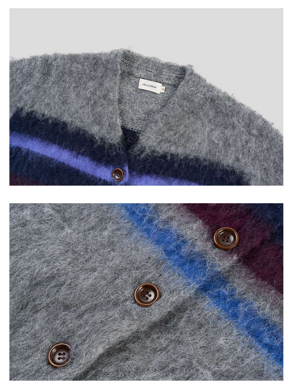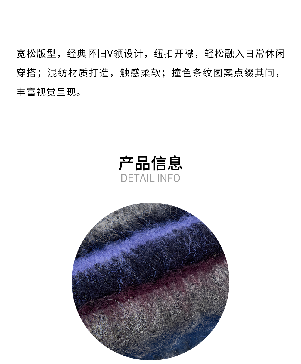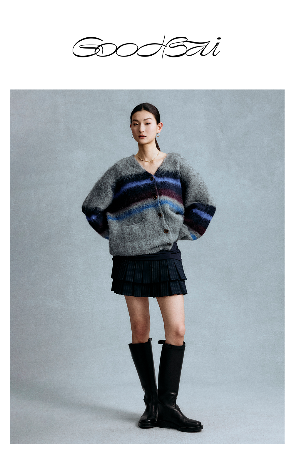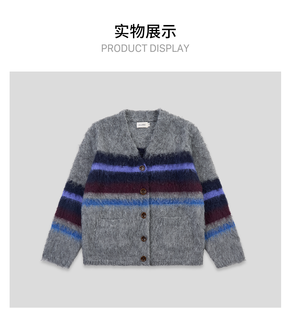 GOODBAI 撞色横条纹V领oversize长毛针织毛衣