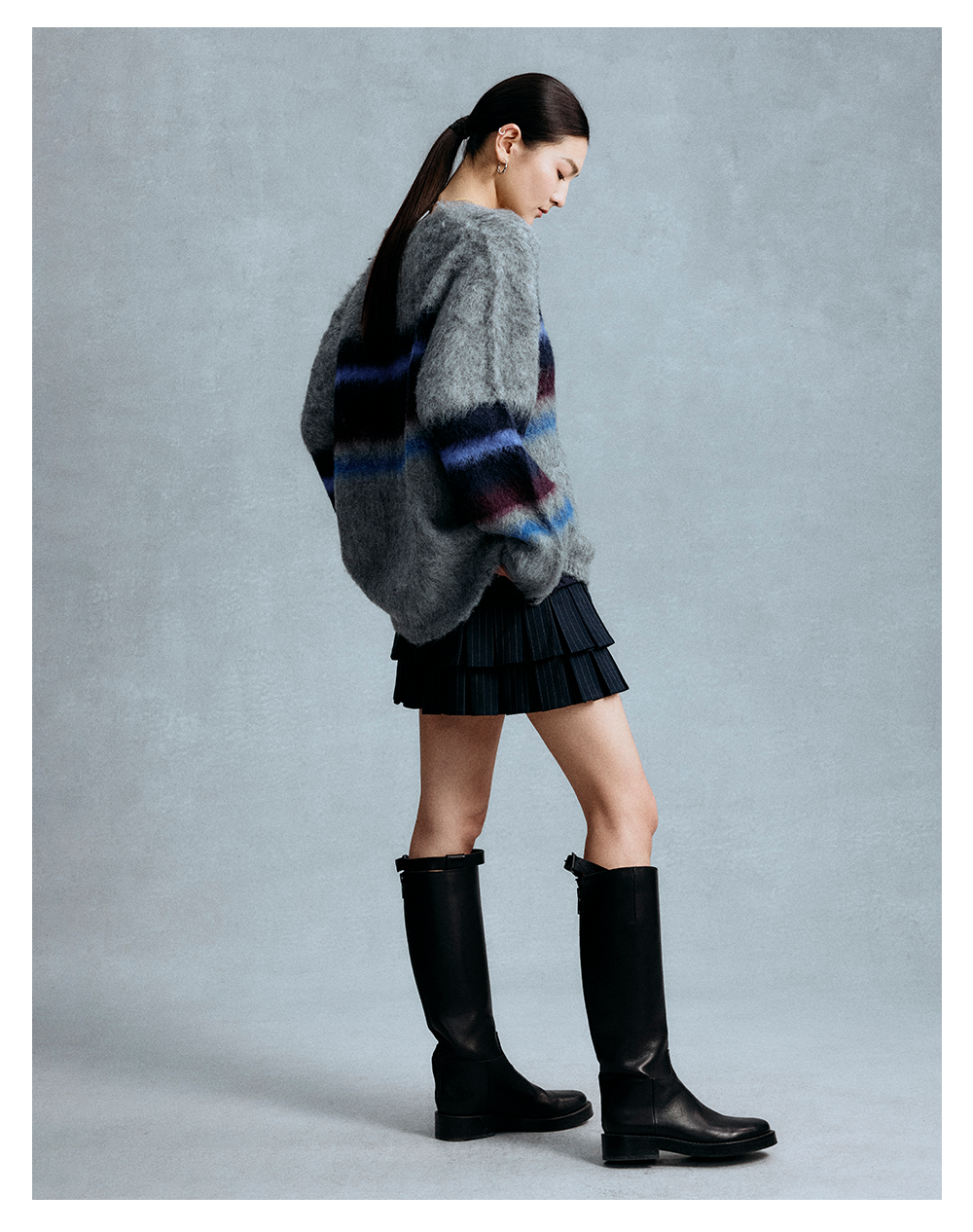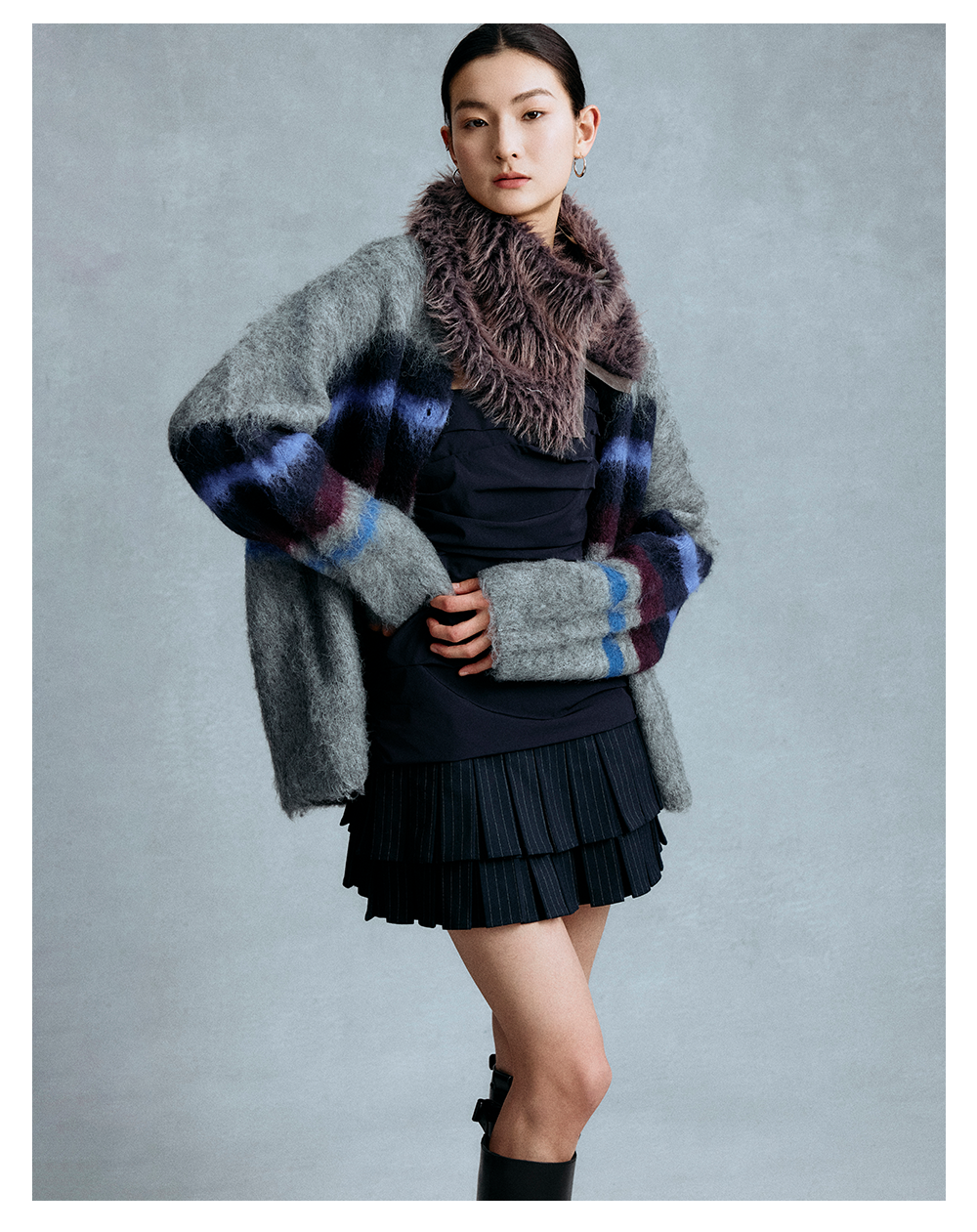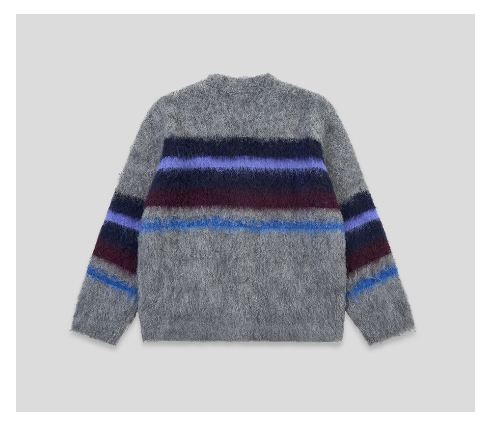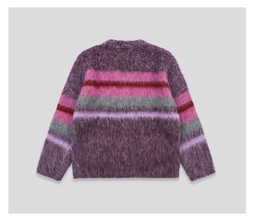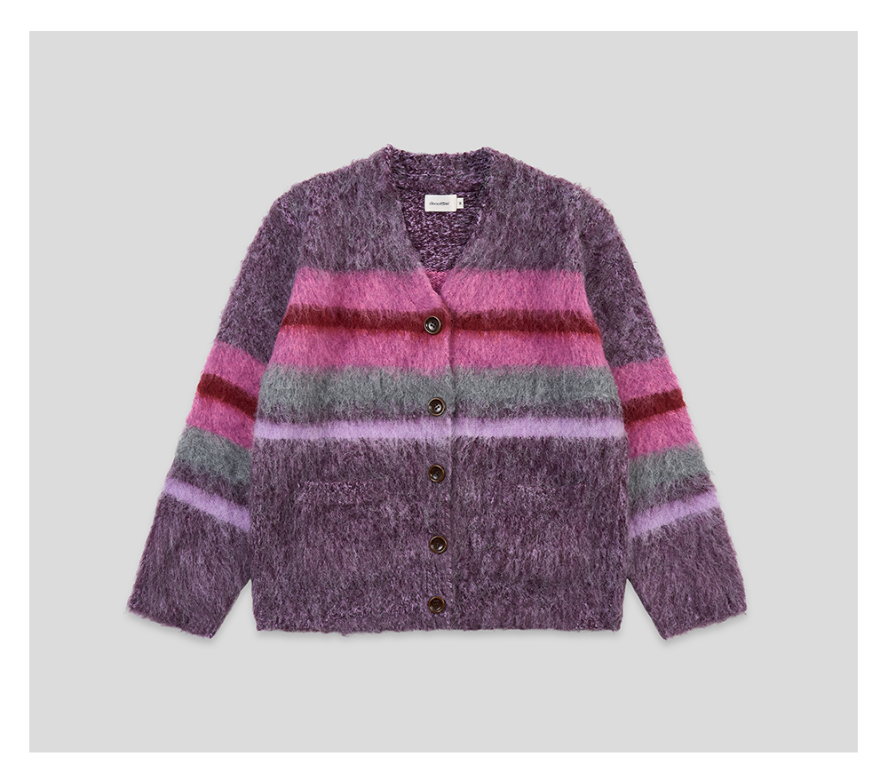 GOODBAI 撞色横条纹V领oversize长毛针织毛衣