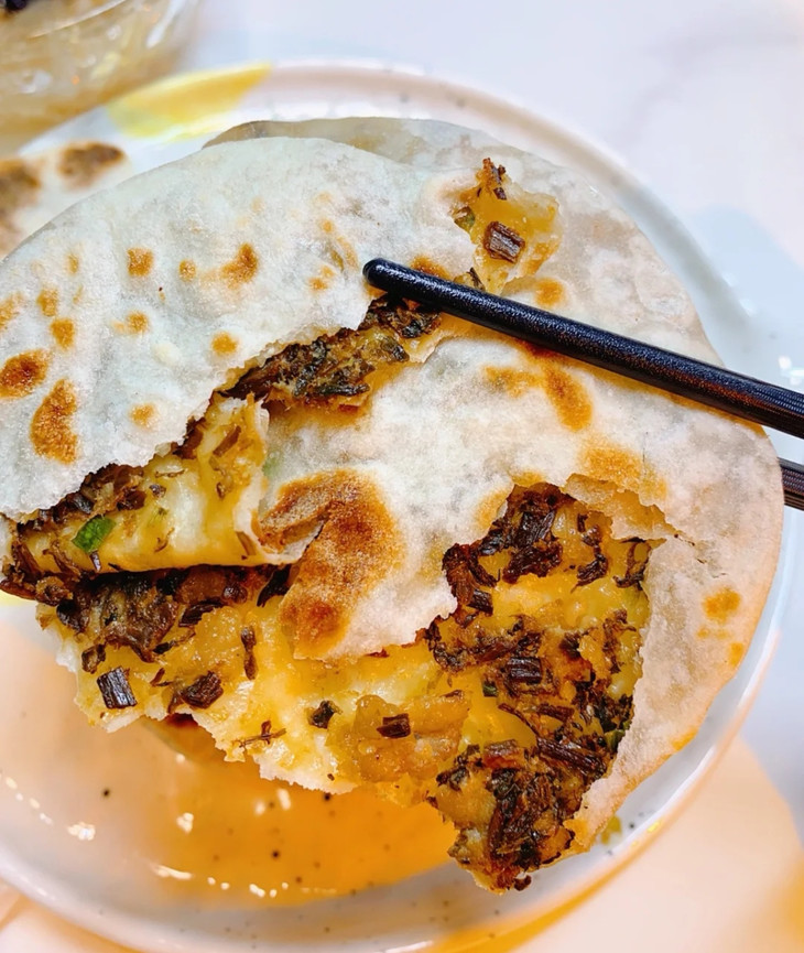 有没有和我们一样,爆爱梅干菜饼的人? 每次只要路过锅盔店,甭管饿不饿,都得来上一张! 浸润了油脂的梅干菜,在高温烘烤之下激发出诱人的浓郁香味~饼皮烤到微焦, 每咬上一口先被酥脆的口感唤醒味觉, 紧接着浓香的梅干菜与肉的浓香会在舌尖上迅速散开,令人沉醉。