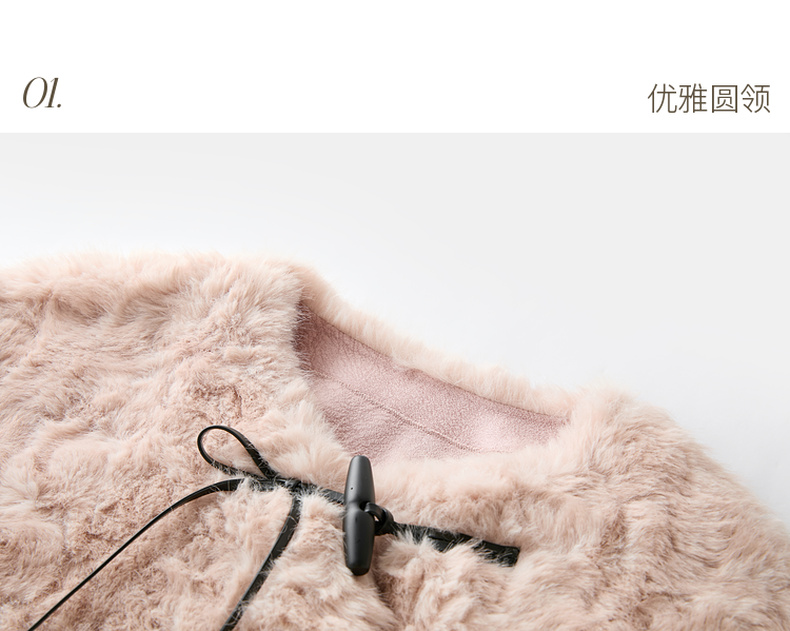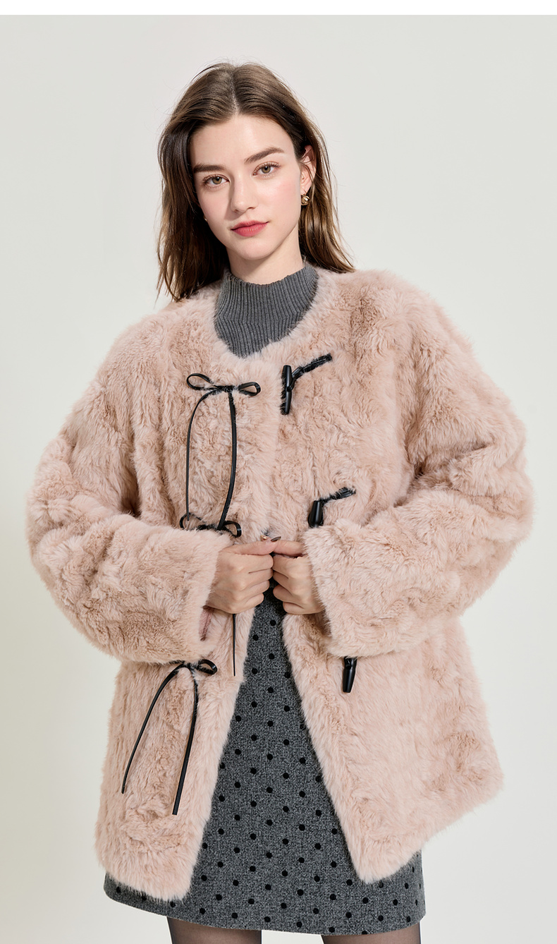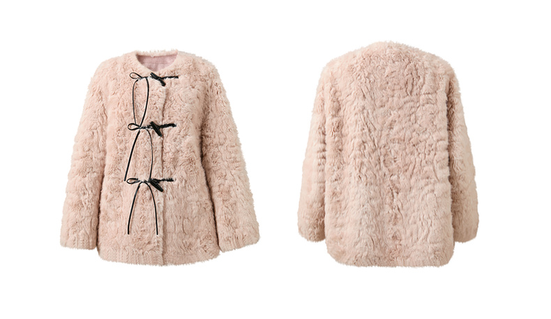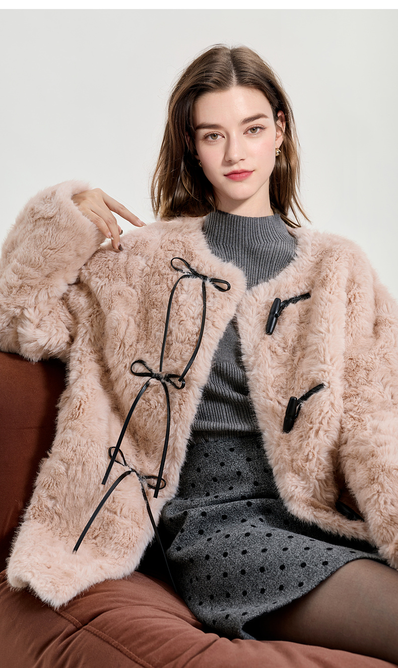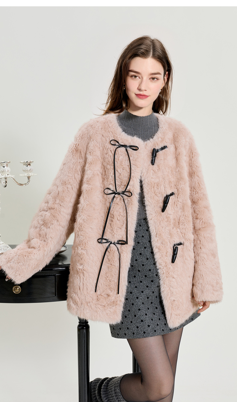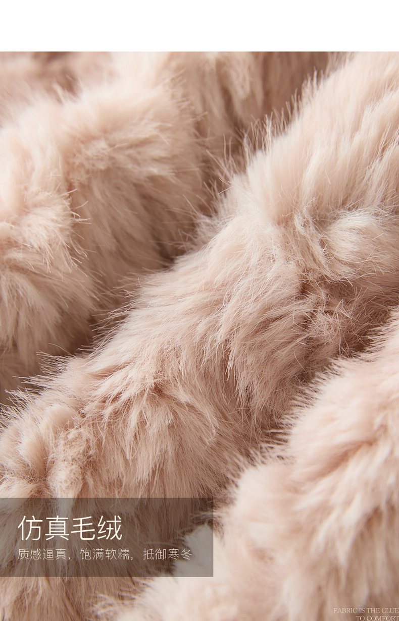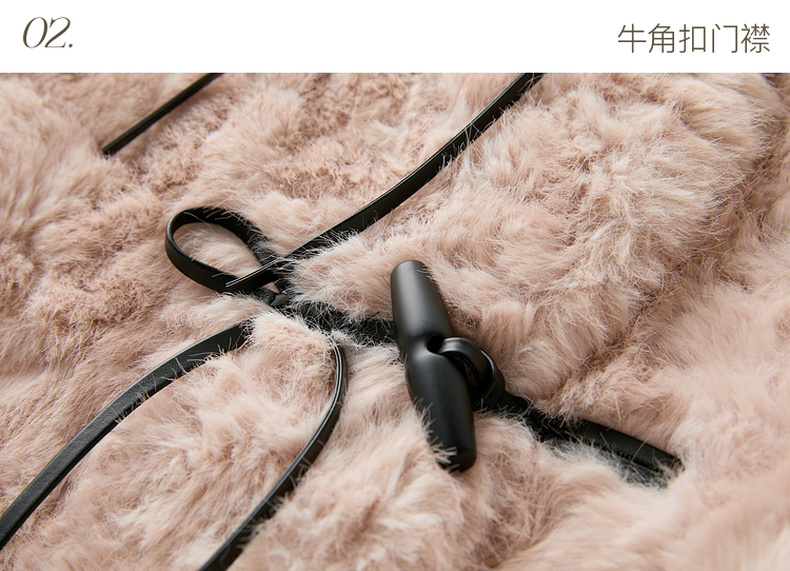 三彩2025冬季新款环保皮草毛绒外套仿真毛毛宽松牛角扣保暖M