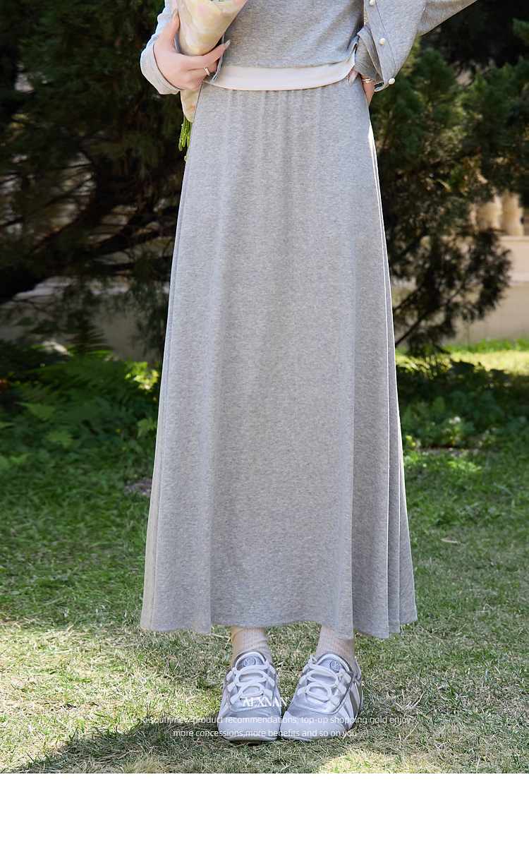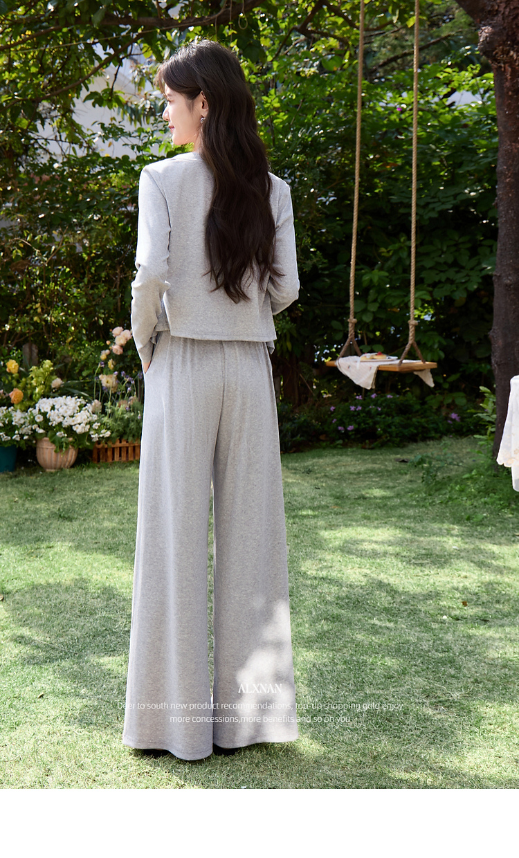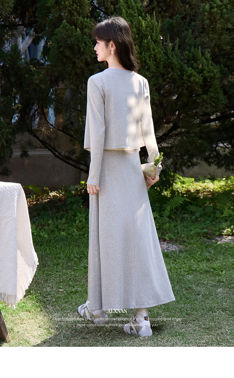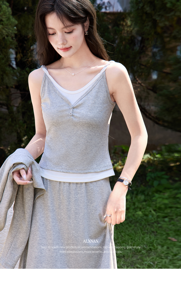鹿向南「轻歌曼舞」灰色假两件休闲正肩长袖t恤女春新款短款上衣