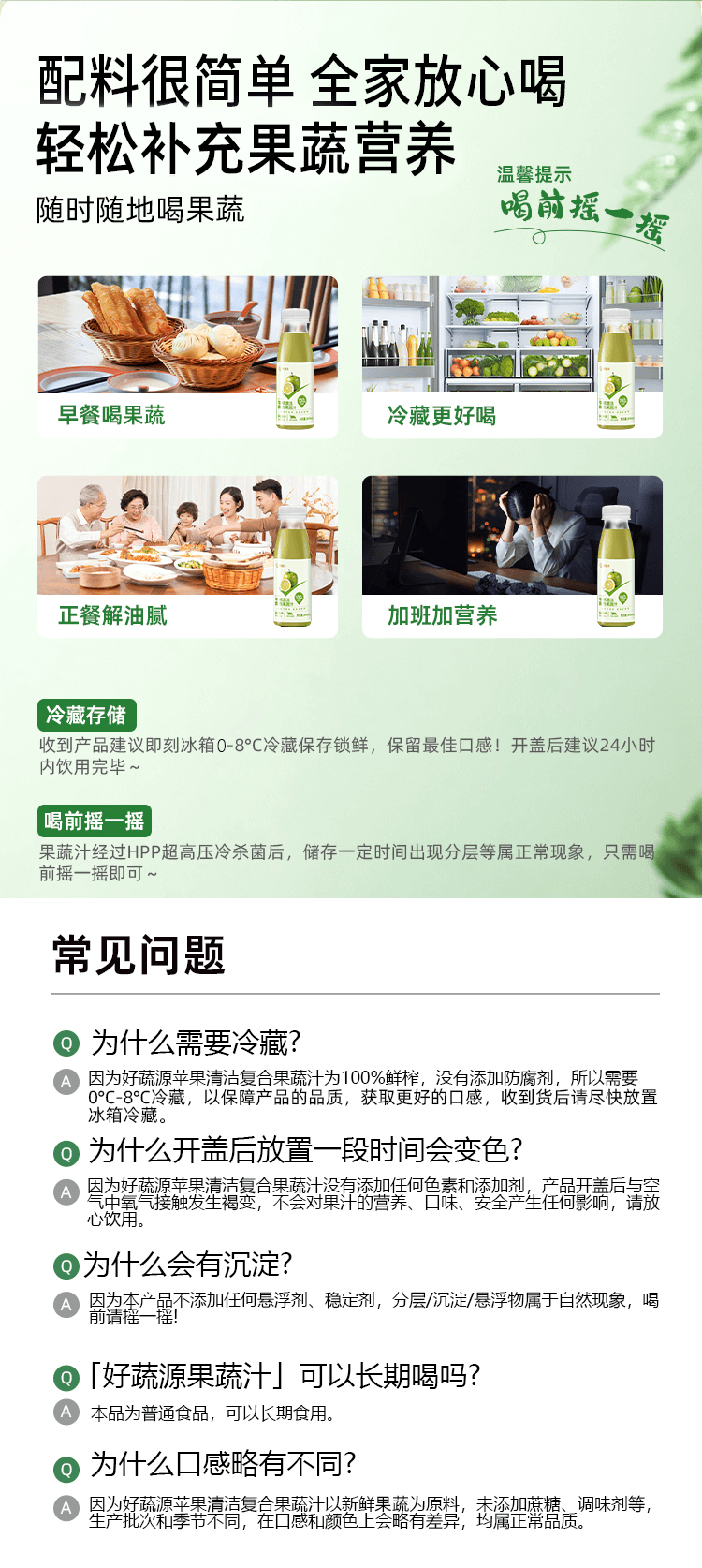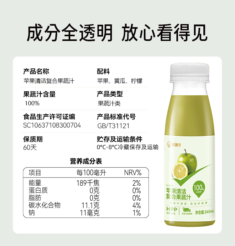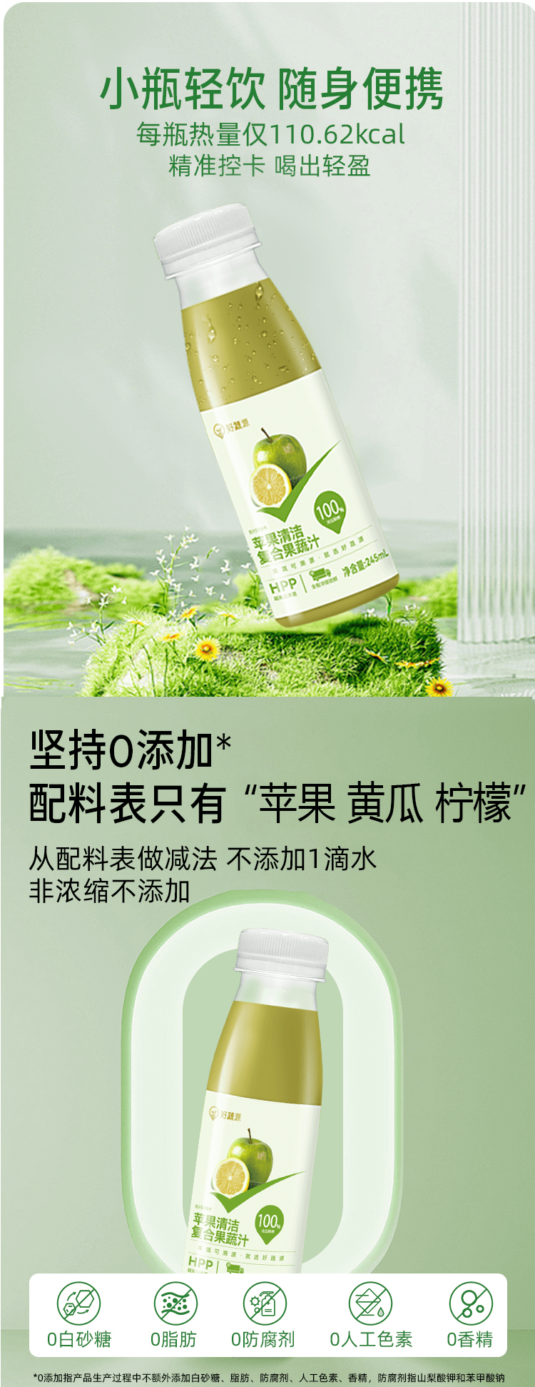 【果蔬轻食】好蔬源 HPP苹果清洁复合果蔬汁 245ml/瓶 果蔬轻食喝出轻畅(果蔬汁有效期至2025年12月22日)