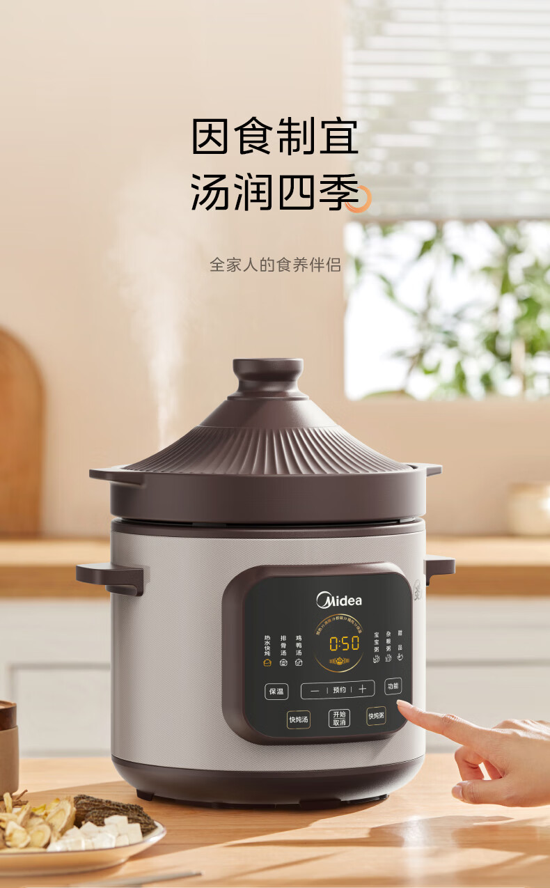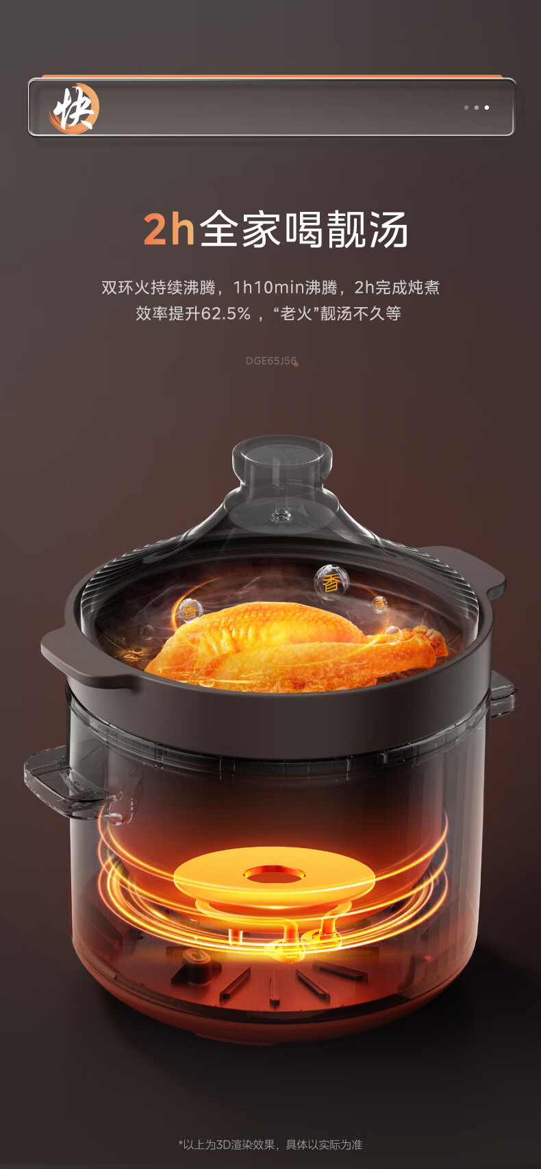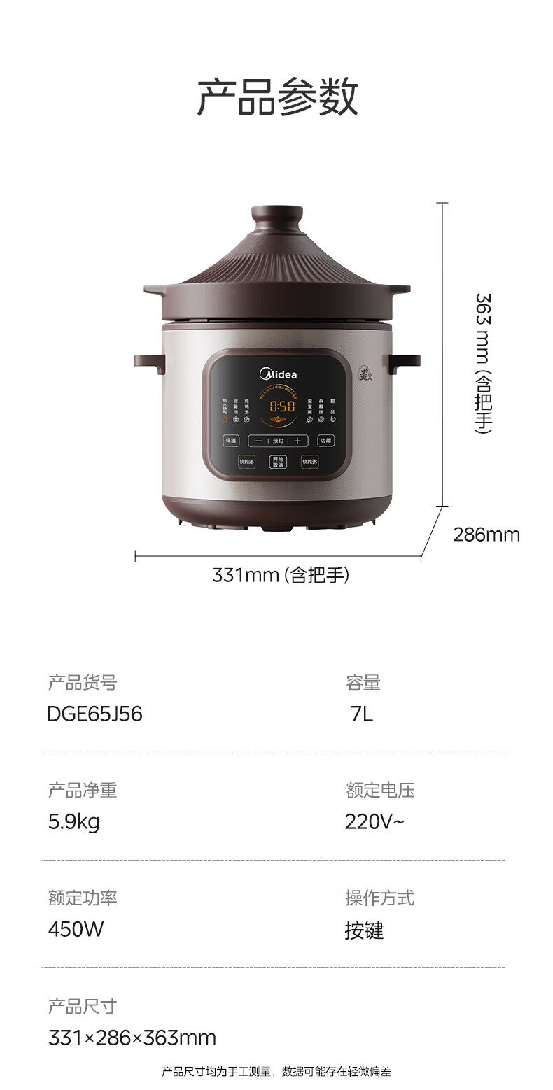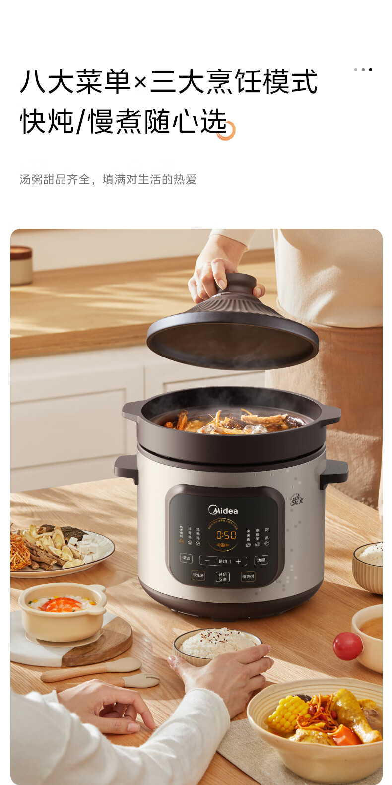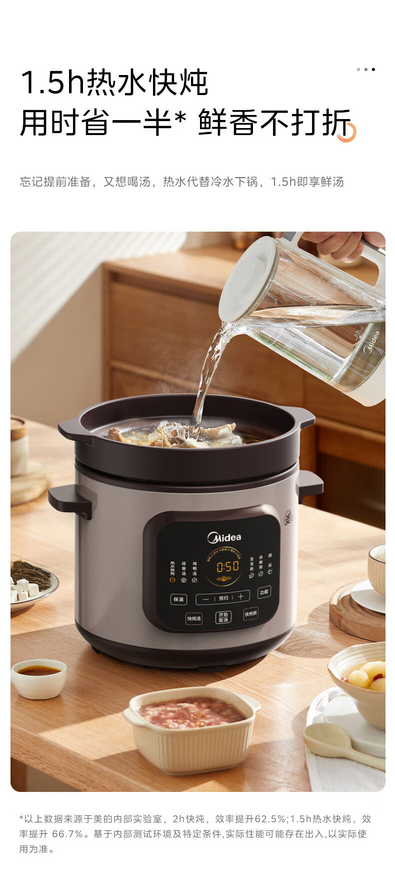 美的(Midea)快炖电炖锅电砂锅 陶瓷全自动450W双环火智能炖汤盅煲汤紫砂锅煮粥7L电热锅一体多功能锅 DGE65J56