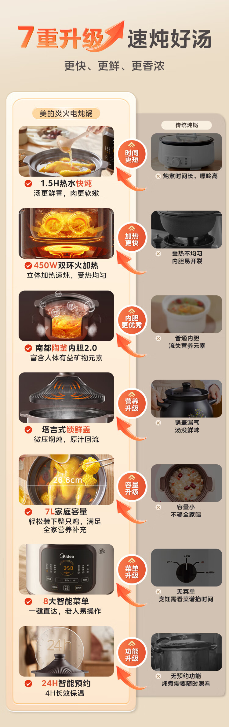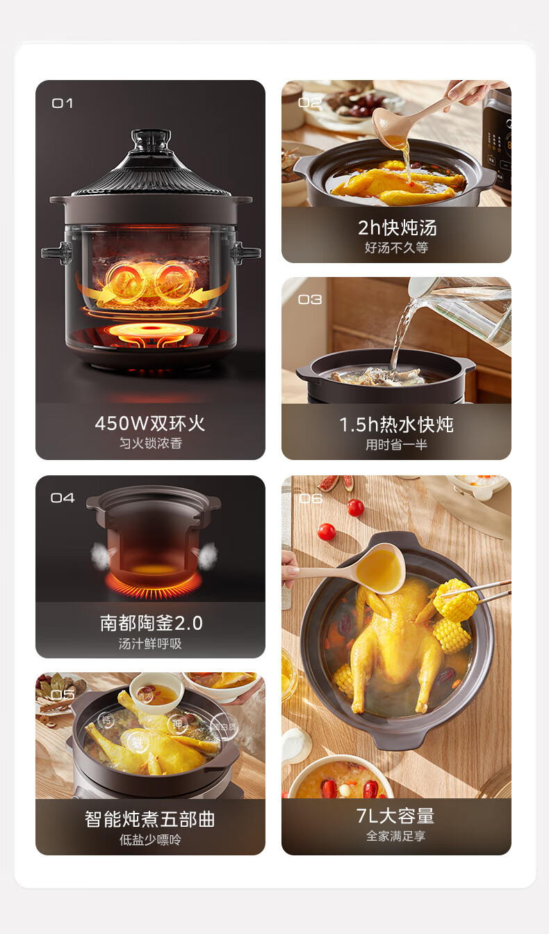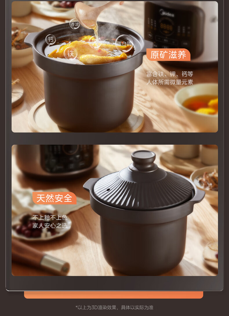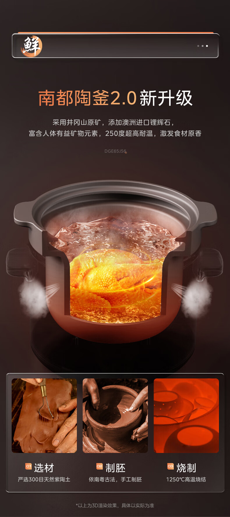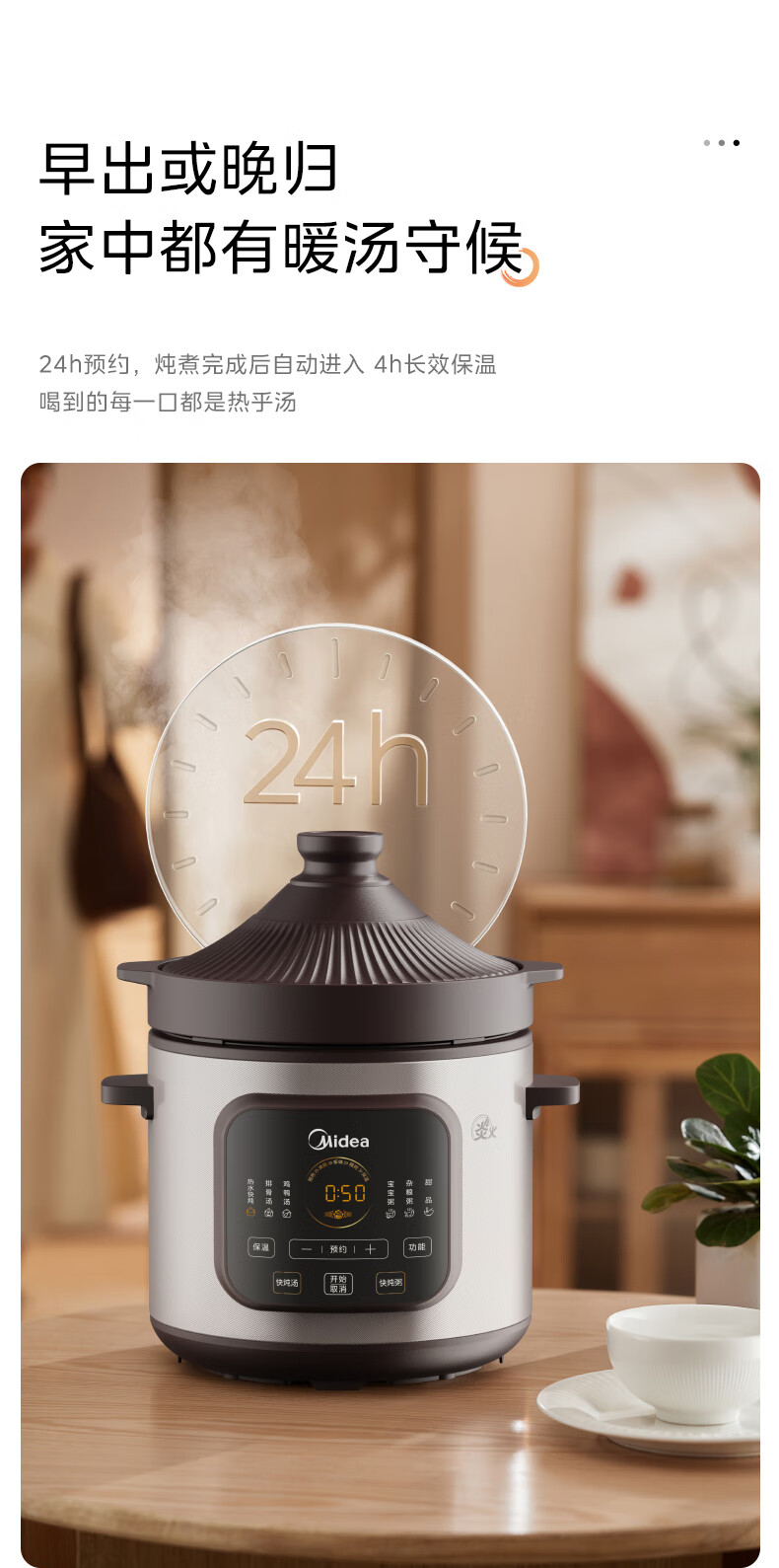 美的(Midea)快炖电炖锅电砂锅 陶瓷全自动450W双环火智能炖汤盅煲汤紫砂锅煮粥7L电热锅一体多功能锅 DGE65J56