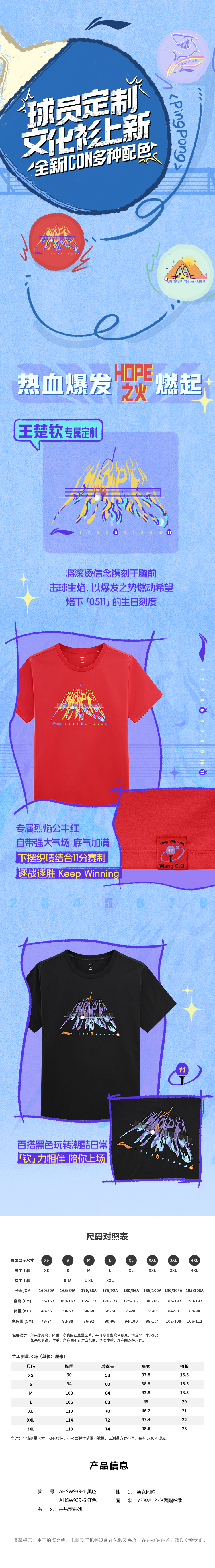 【“钦”刻达成】李宁乒乓球系列王楚钦同款夏季短袖文化衫AHSW939-6
