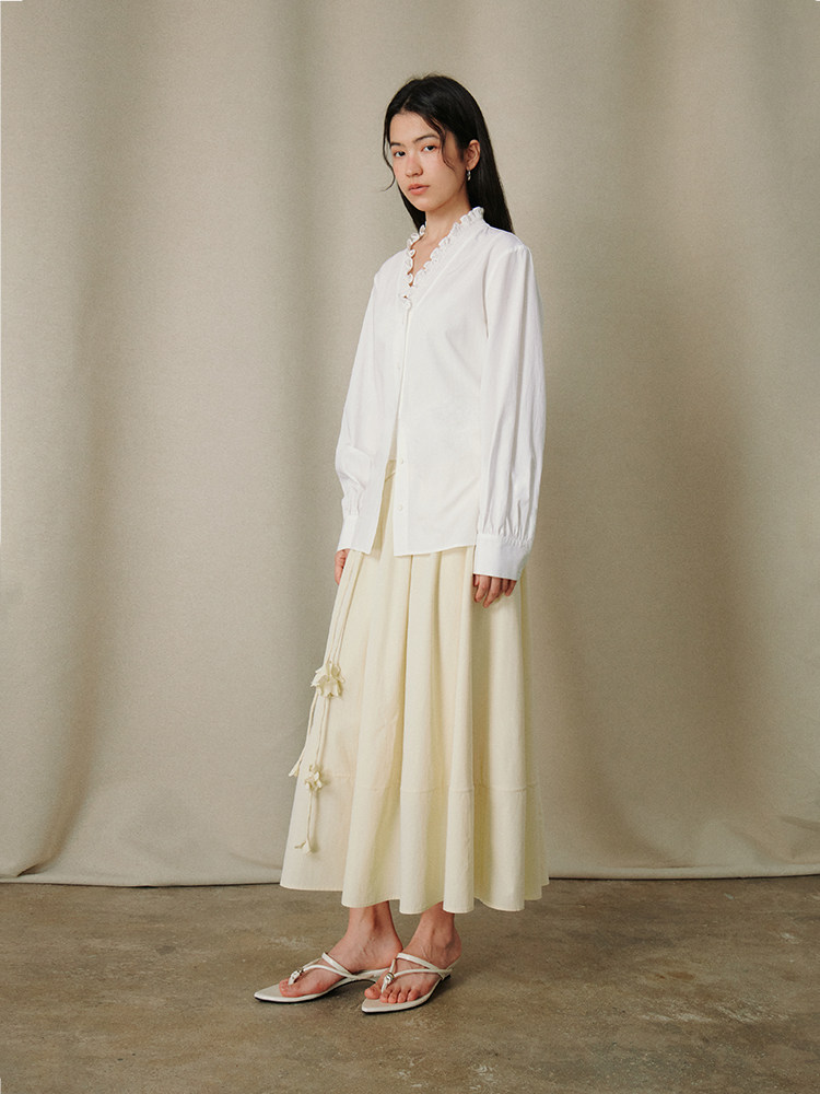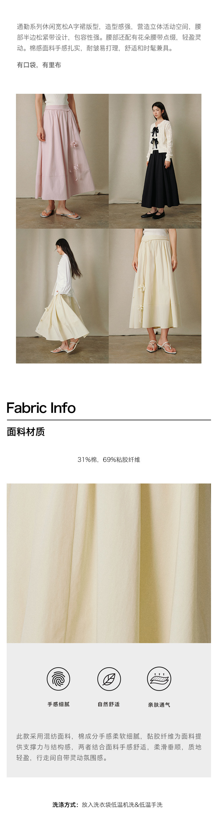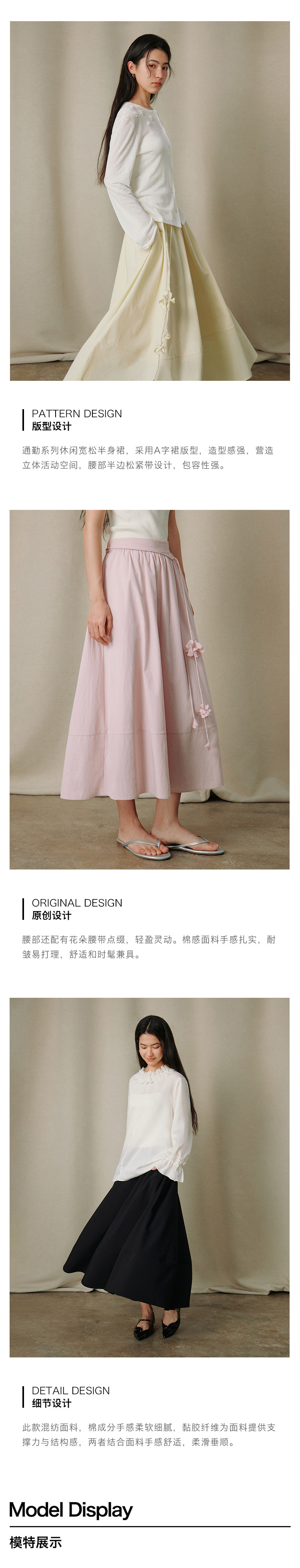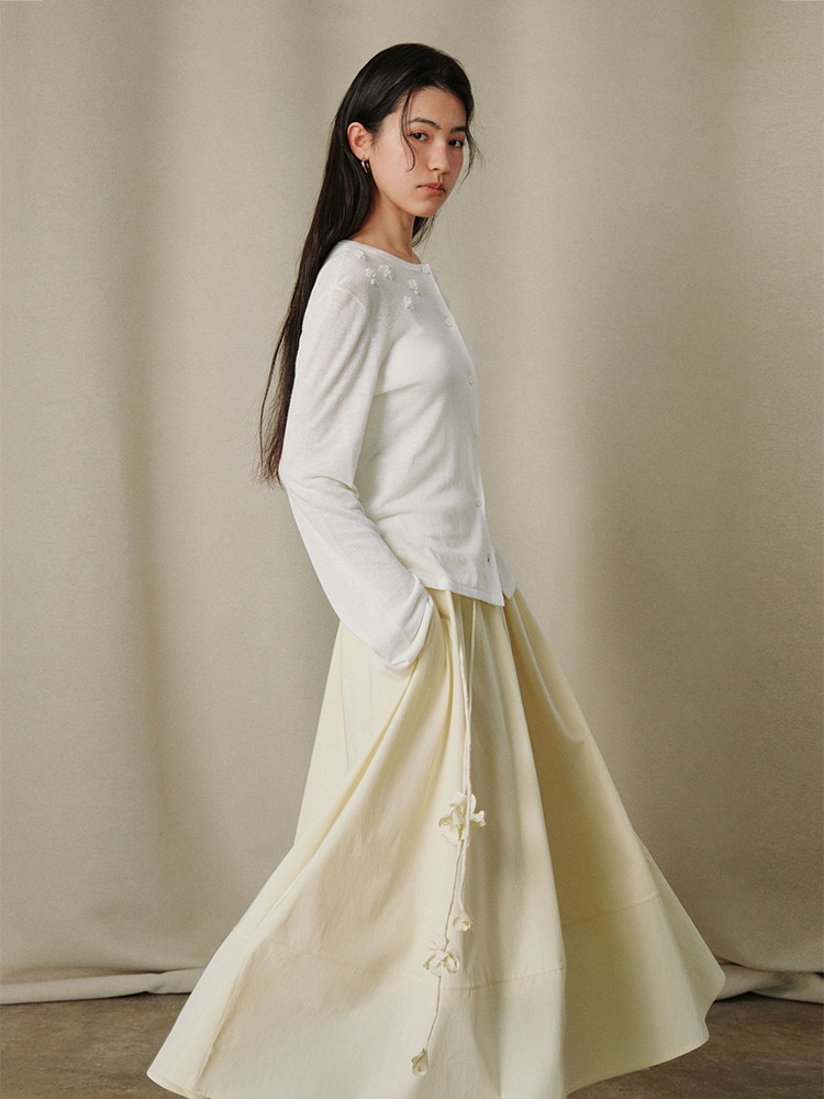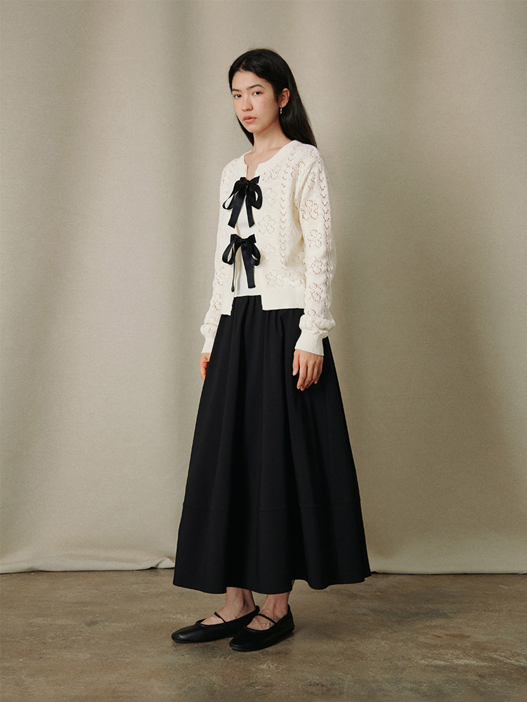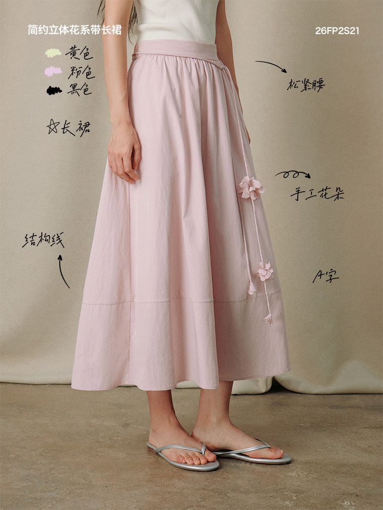 ForPoem 26/SS 原创设计通勤系列简约立体花系带长裙半身裙