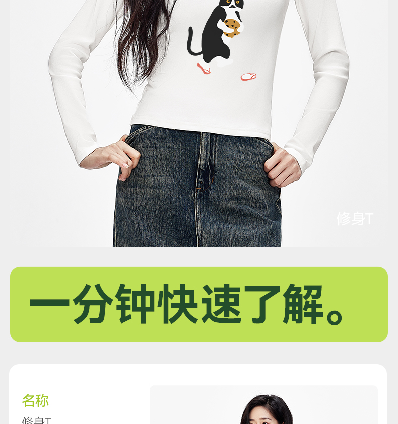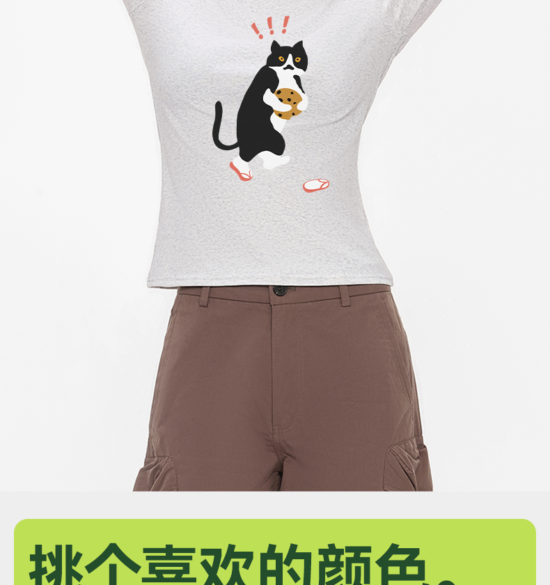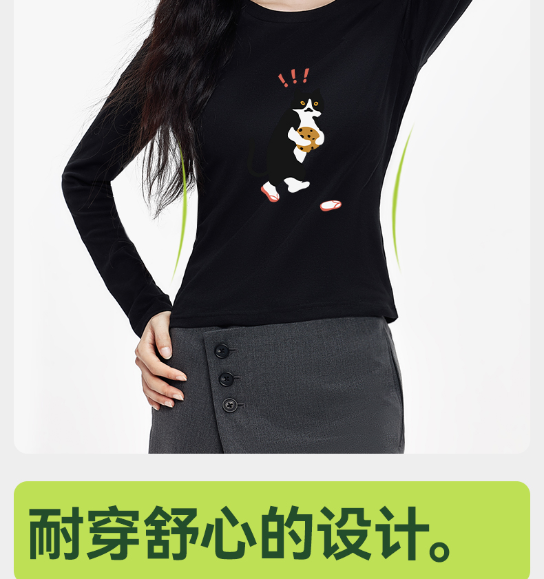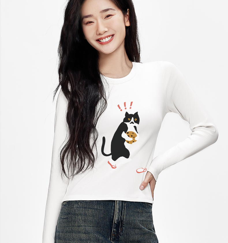 「棉的美学」秋季圆领打底衫女印花新款柔软亲肤上衣简约修身衣服