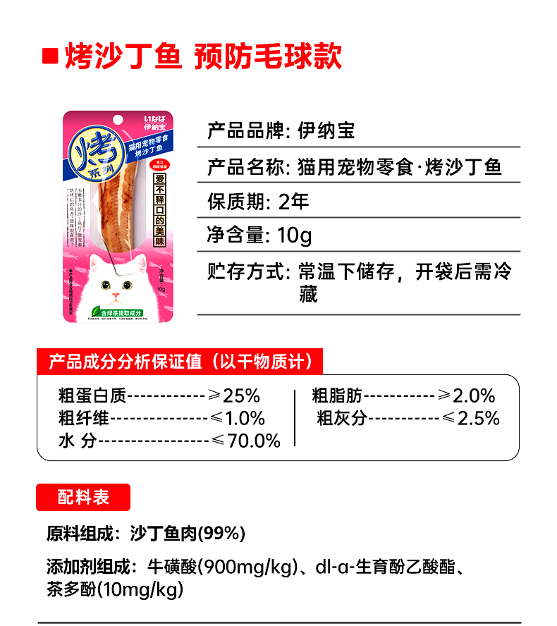伊纳宝 烤沙丁鱼(猫用宠物零食 原味 预防毛球)16g*48/箱