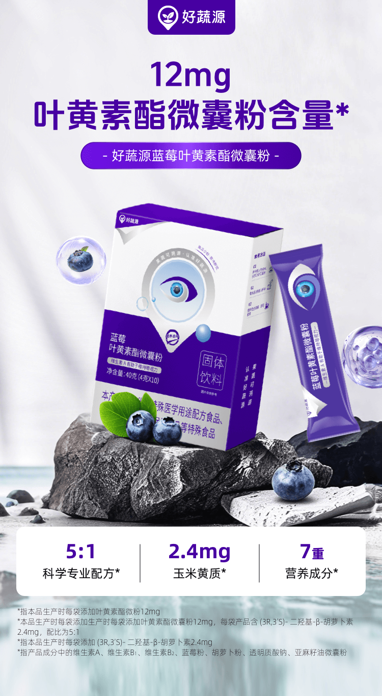 【独立锁鲜包装】好蔬源 蓝莓叶黄素酯微囊粉 4g*10条/盒 多重营养科学配比
