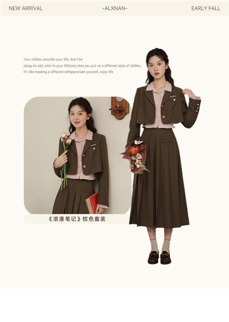鹿向南《浪漫笔记》小众设计感时尚套装短外套+半身裙
