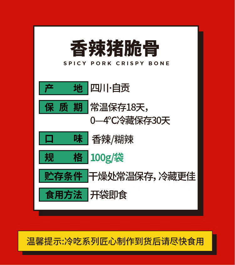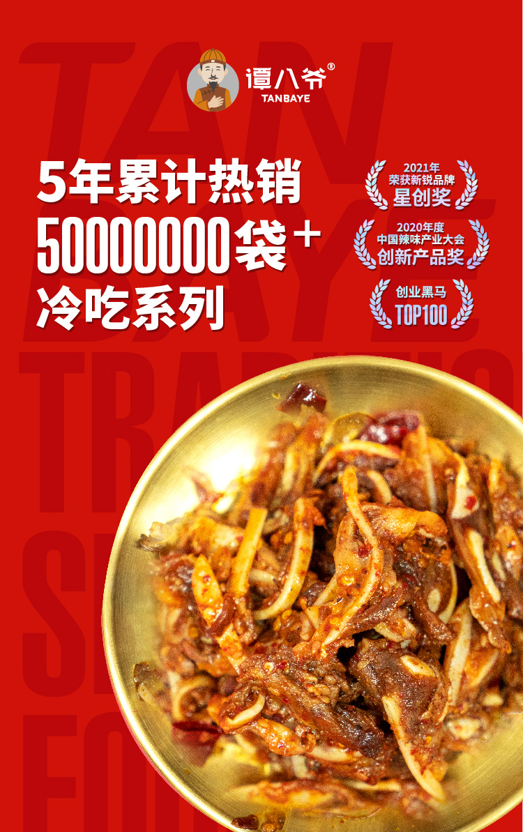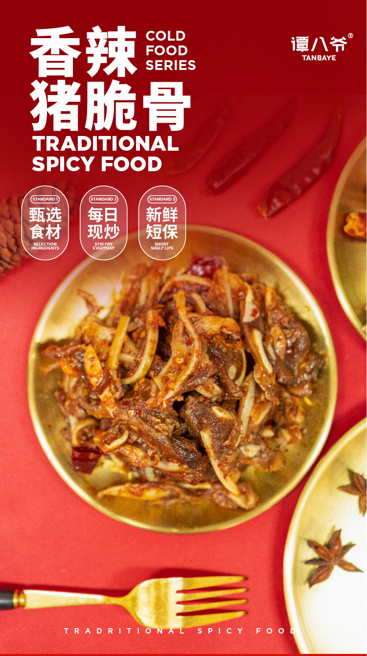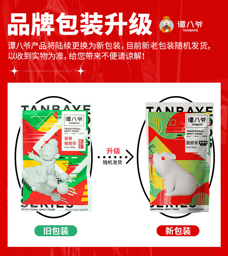 谭八爷香辣猪脆骨冷吃月牙骨软骨休闲零食即食肉干肉脯真空包装100g/袋 4袋装