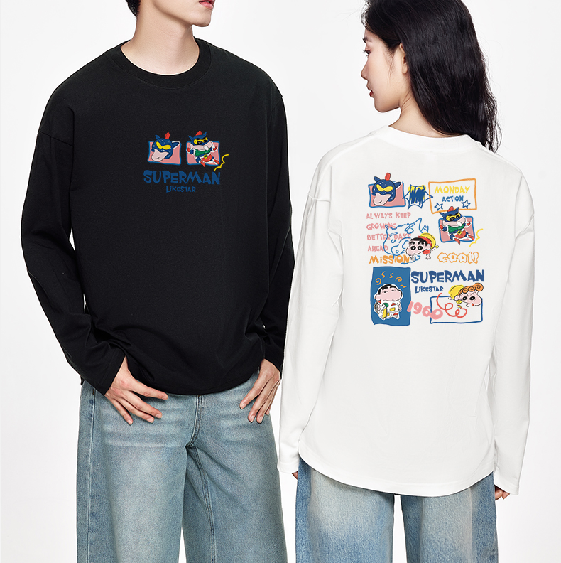 「棉的美学」萌趣卡通纯棉长袖T恤新款设计印花情侣同款打底上衣
