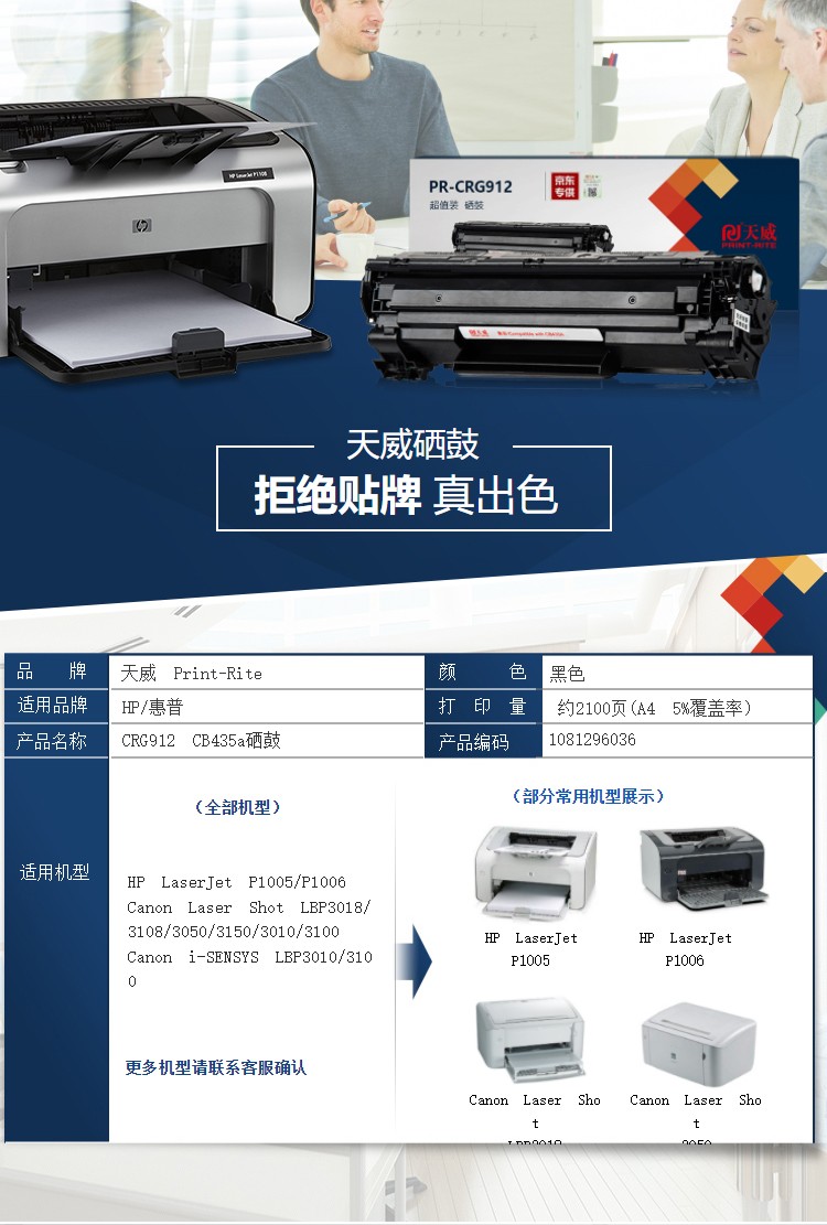 天威CRG912 CB435a硒鼓 适用惠普HP P1005 P1006 佳能CANON 3018 3108 3050 3150 LBP3010打印机大容量