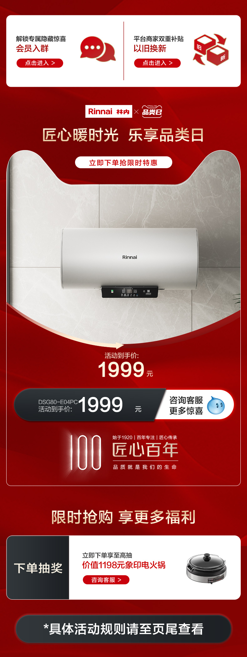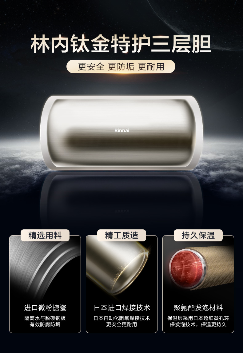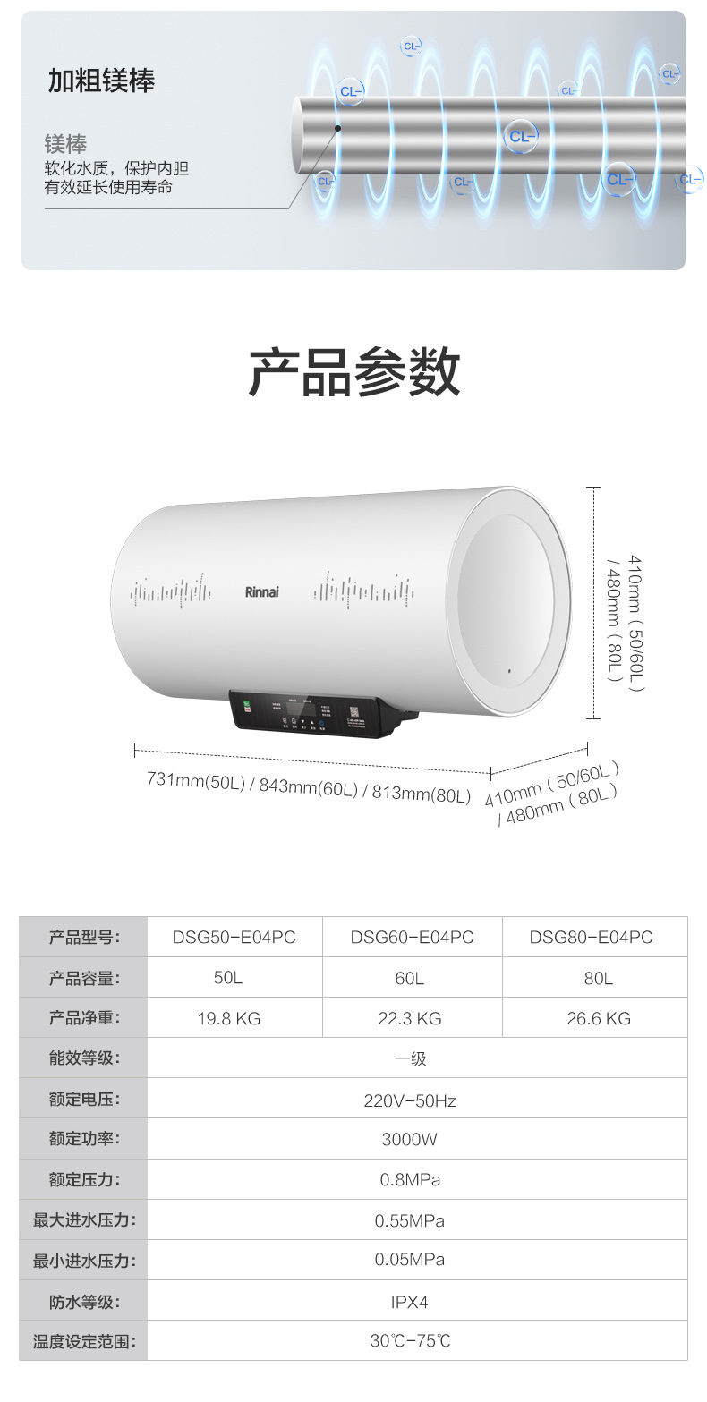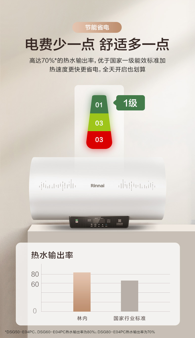 Rinnai/林内 电热水器80升家用洗澡速热储水式节能一级能效E04PC