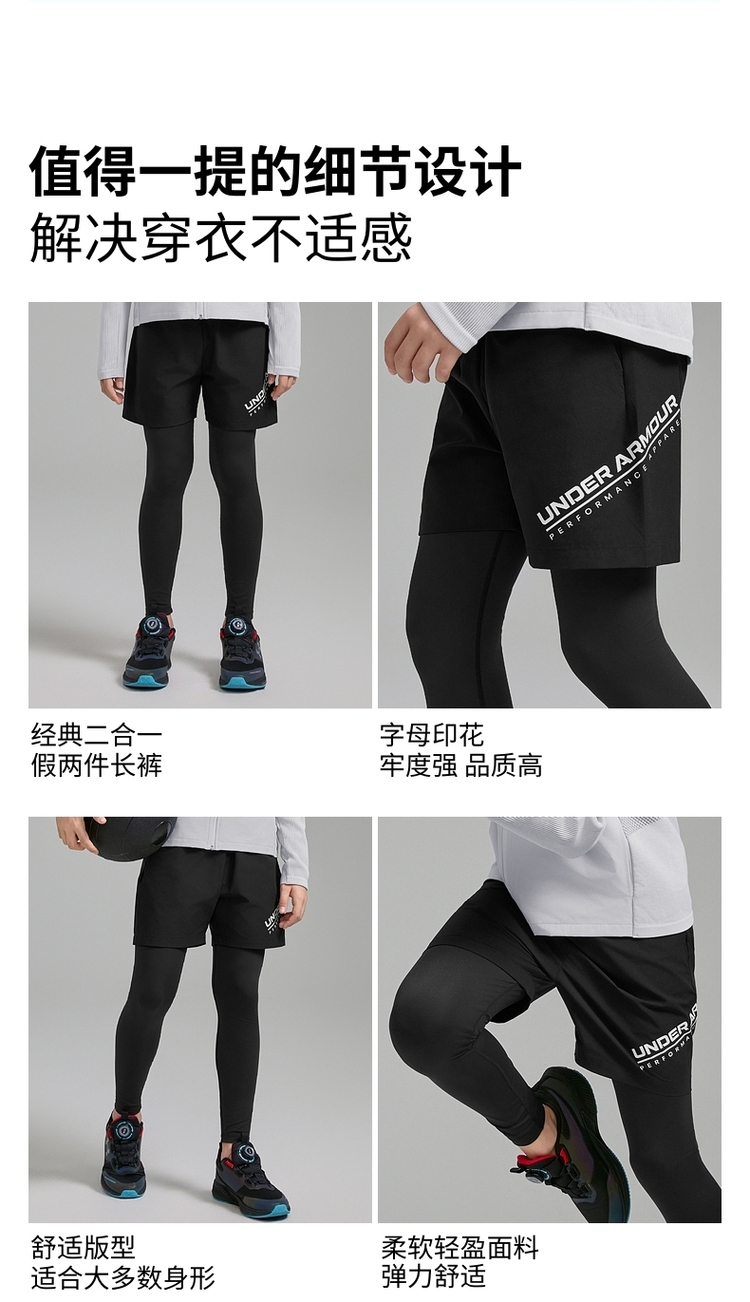 【推荐商品2】安德玛儿童假两件运动长裤253123126