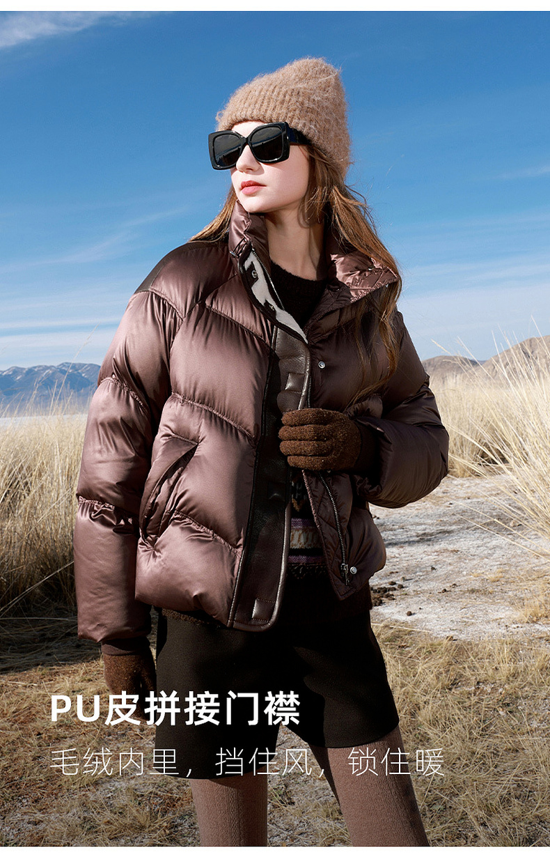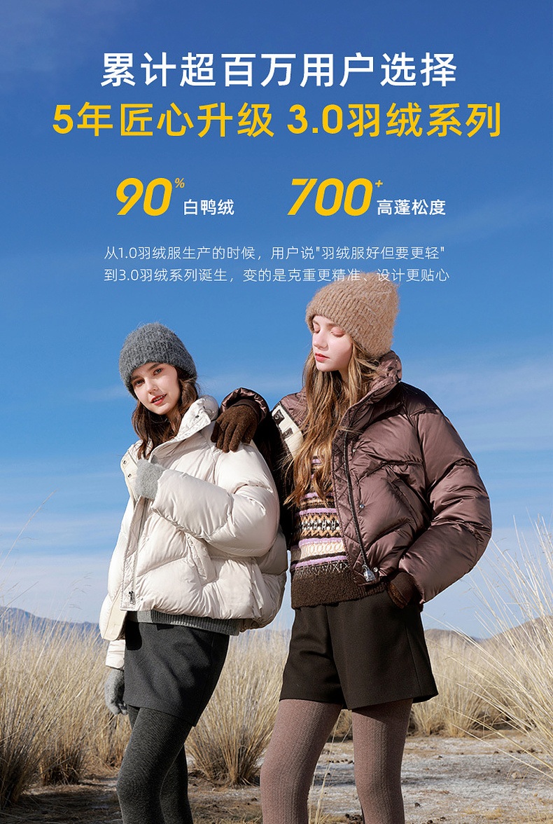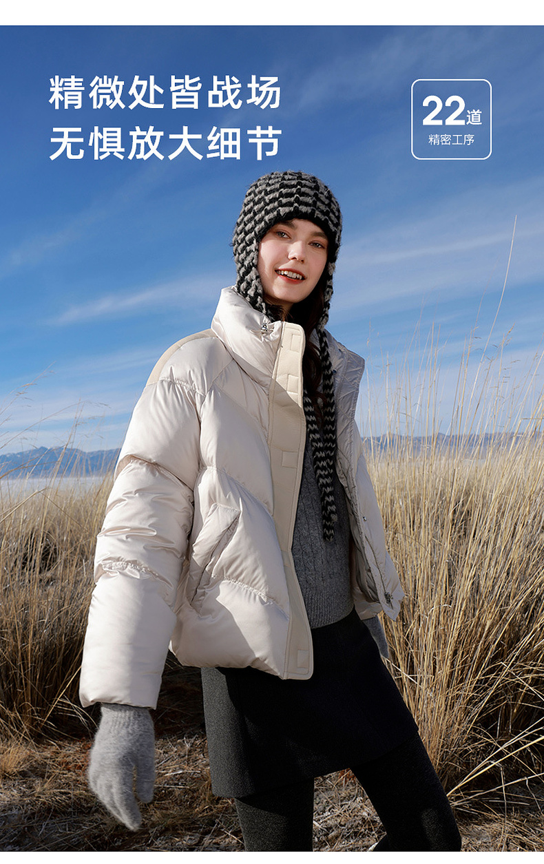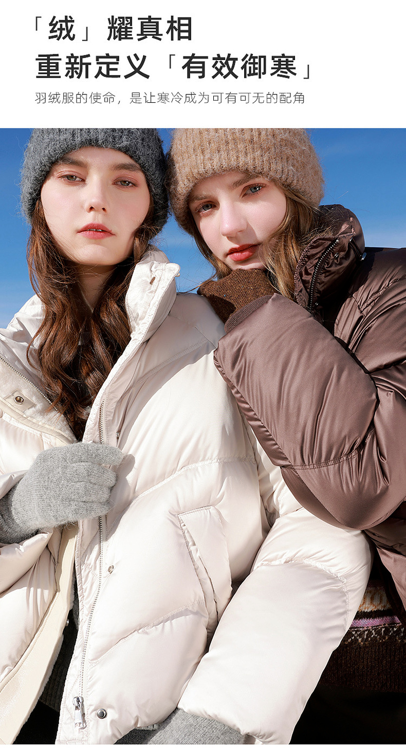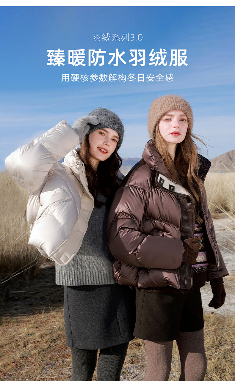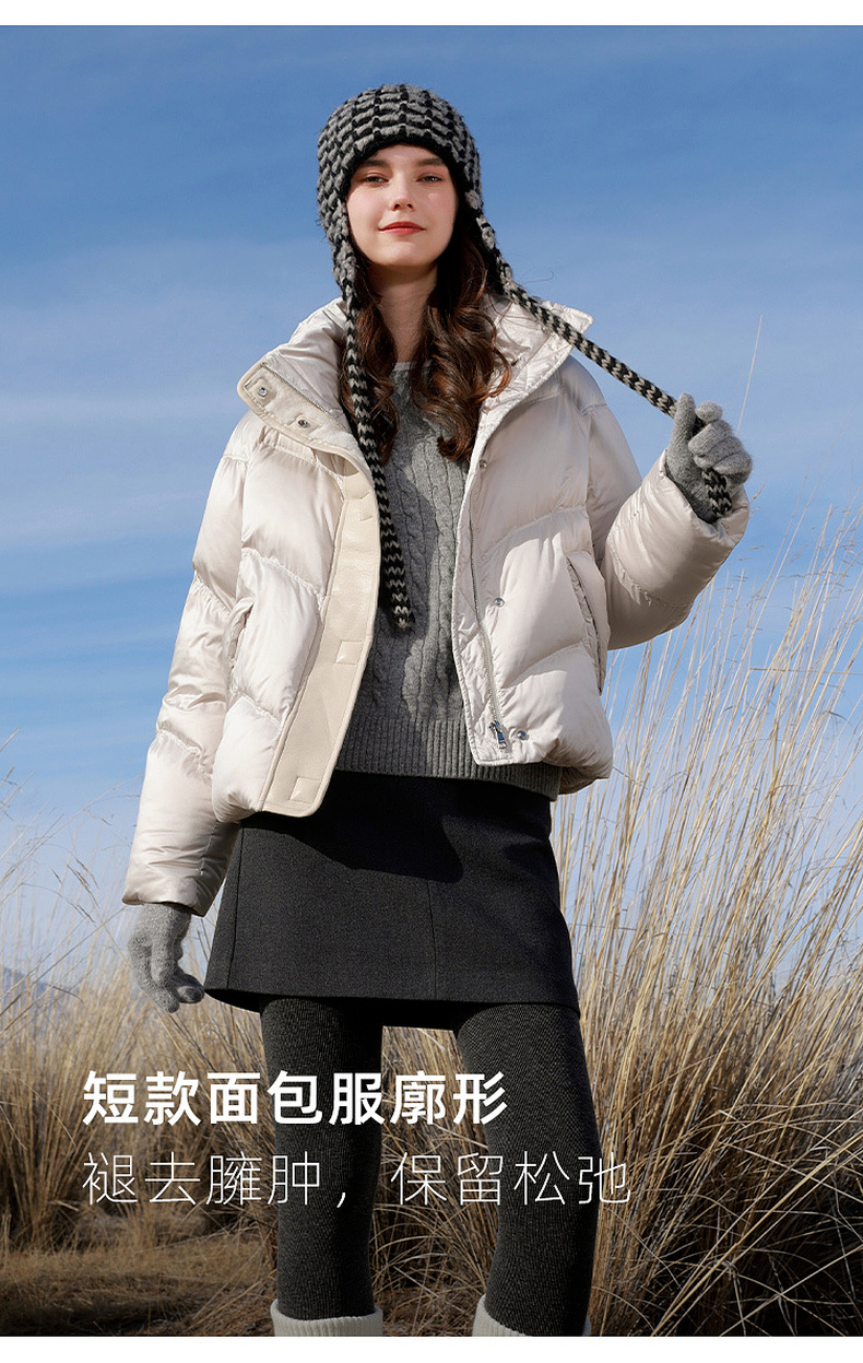 【防水易打理】三彩2025冬季新款90白鸭绒羽绒服短款小个子M