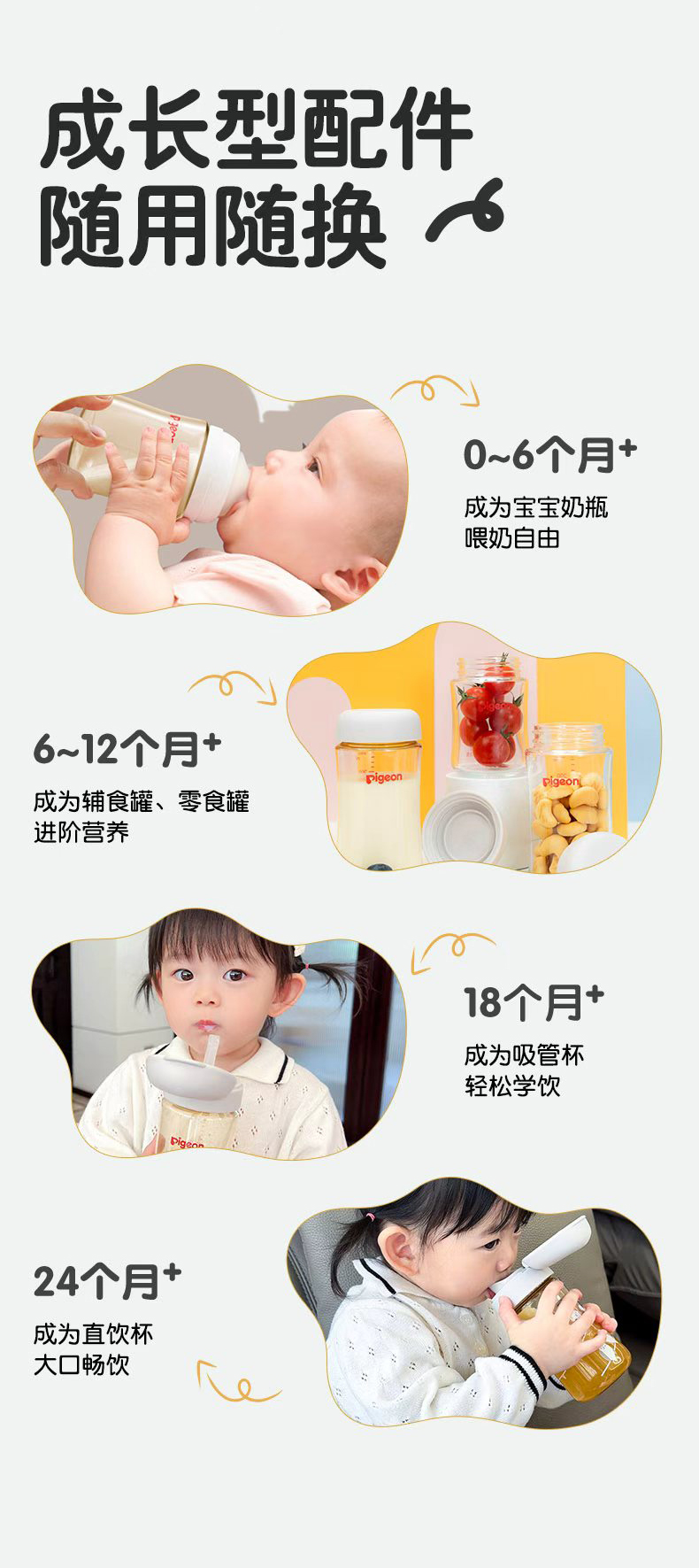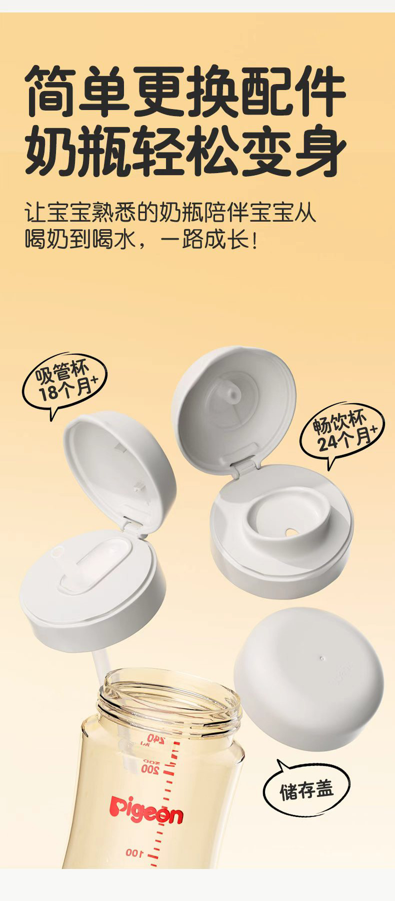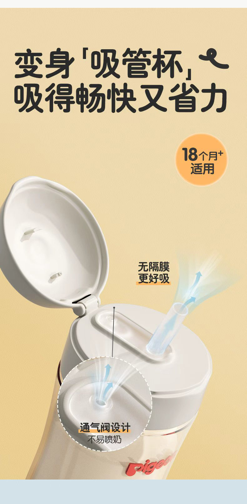 【官方自营】PIGEON/贝亲宝宝奶瓶吸管配件吸管杯头瓶盖双把手18-24月