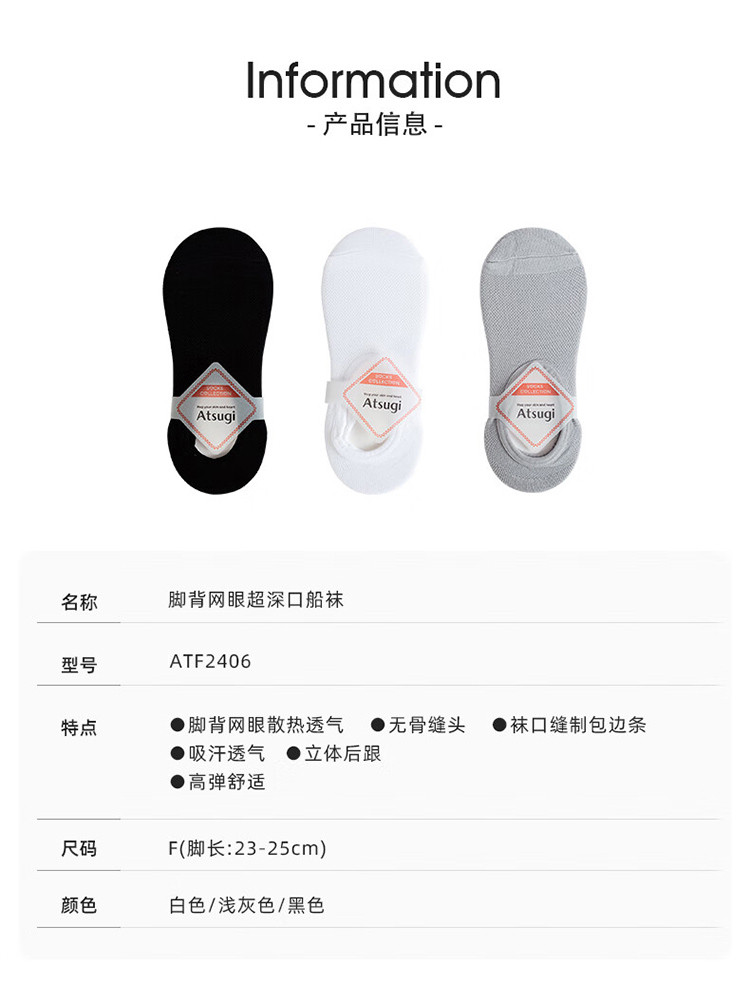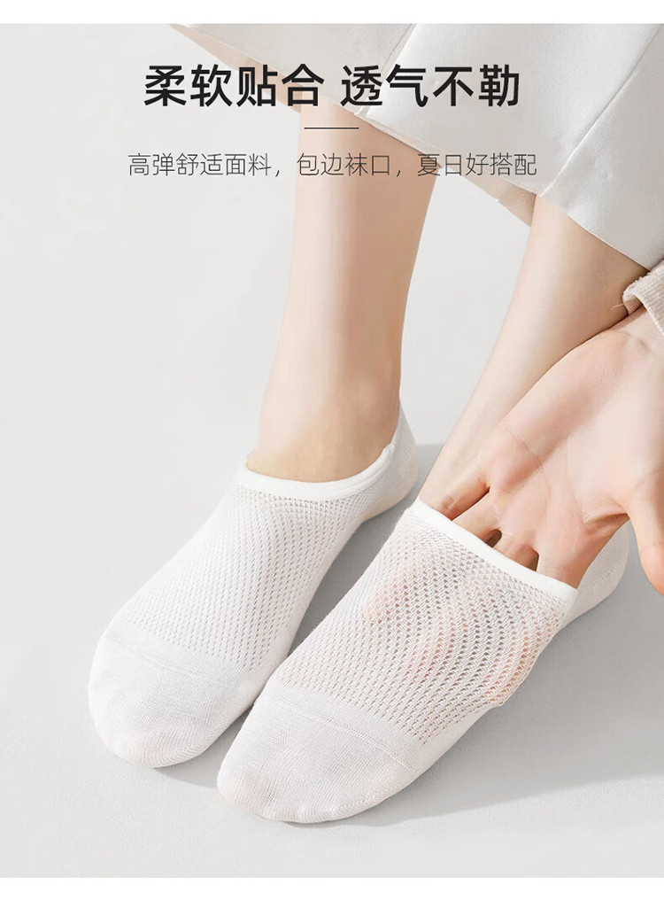 厚木Atsugi 【10双装】深口隐形船袜不易掉跟袜子女白色夏季薄款透气网眼短袜