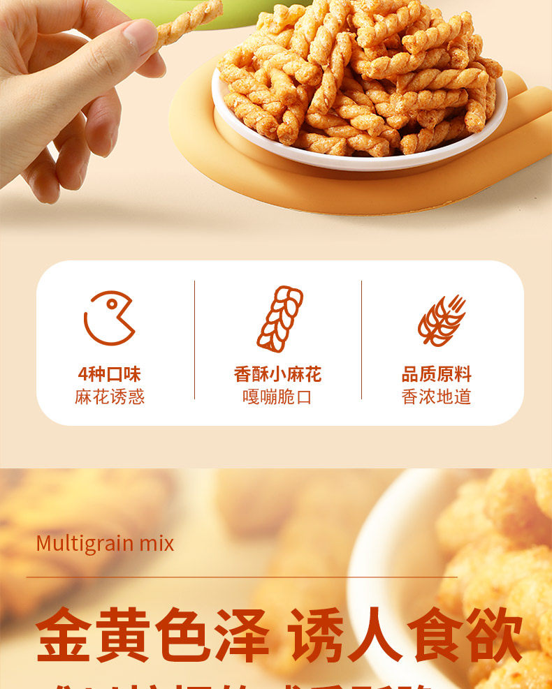 【味滋源】小麻花袋装130g 网红零食散装休闲食品整箱 酥脆海苔葱香辣味