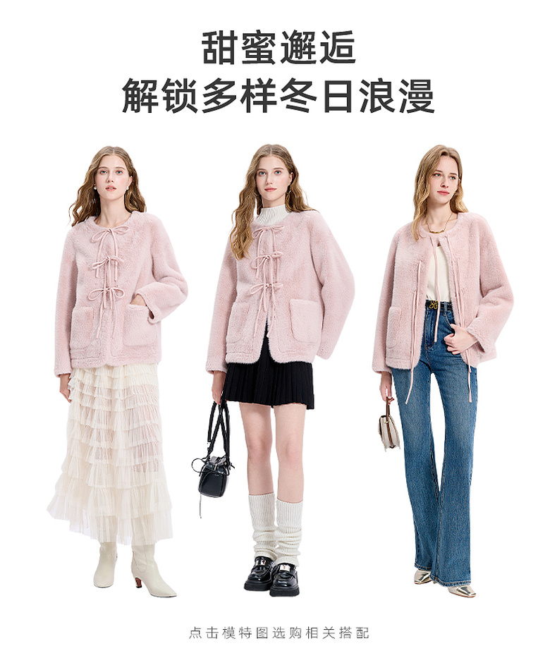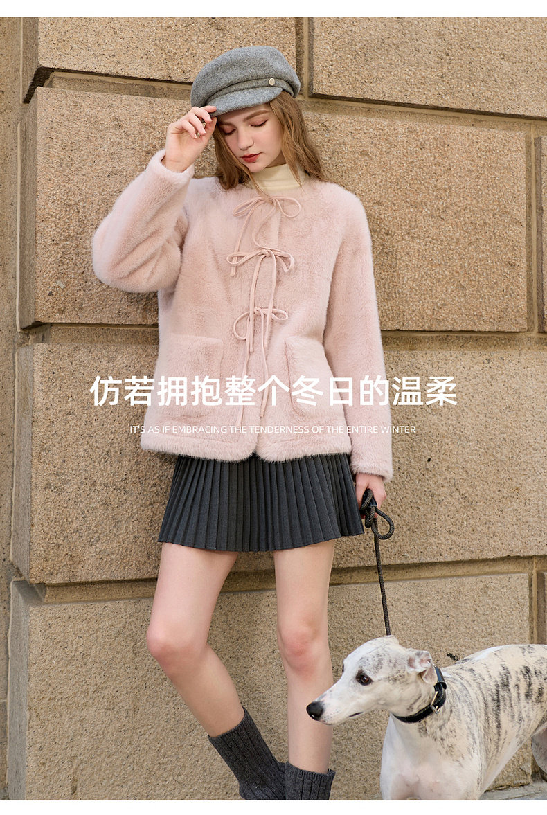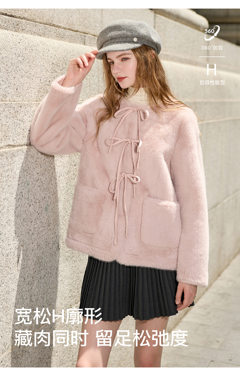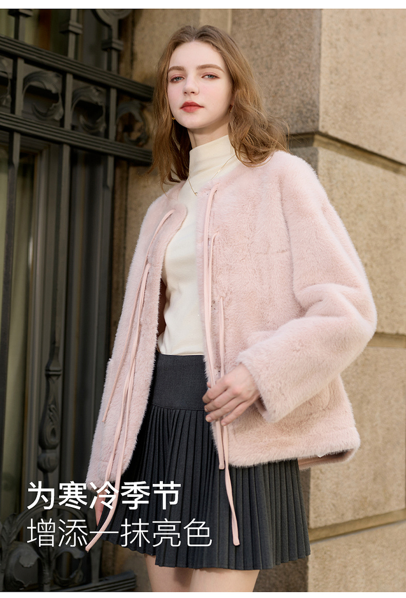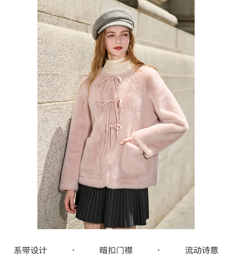 【可机洗懒人皮草】三彩2025冬季新款环保皮草系带毛毛外套M