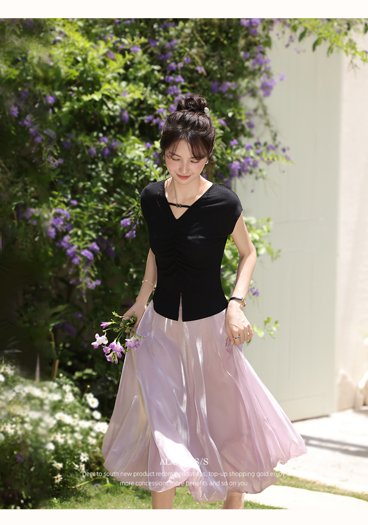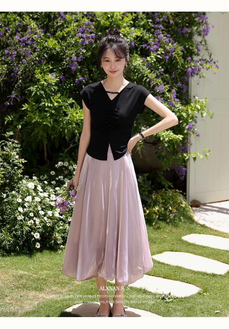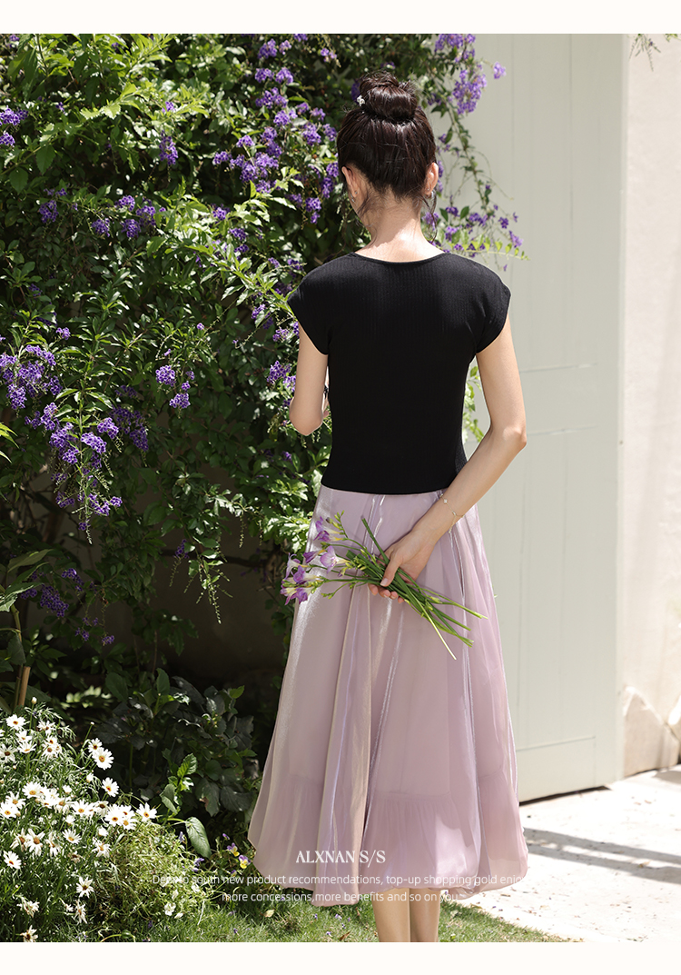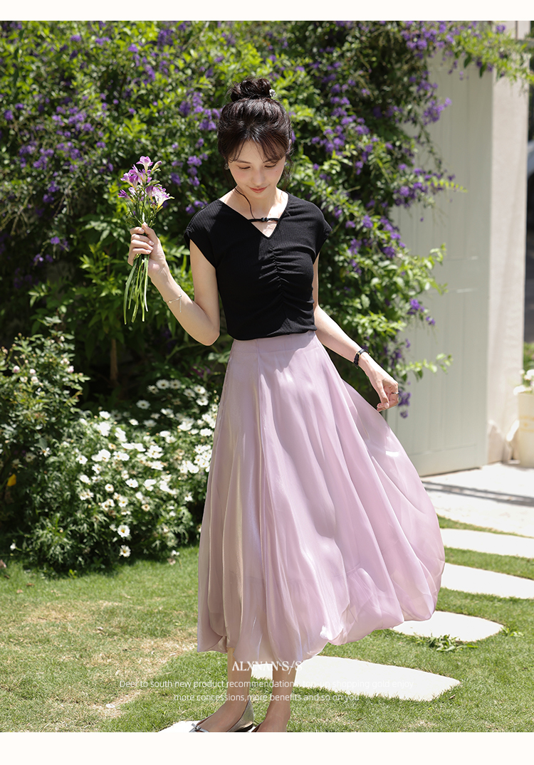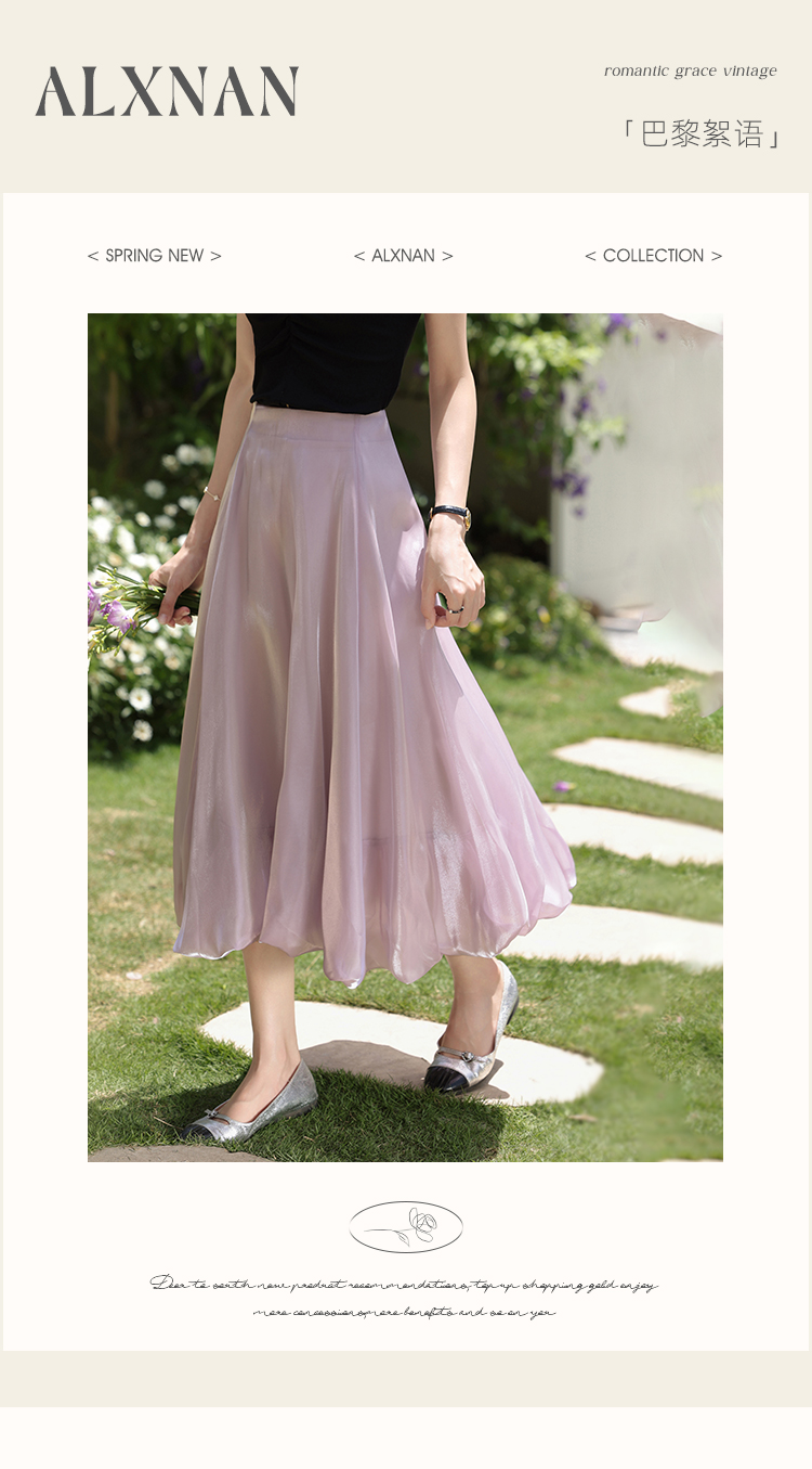 鹿向南「巴黎絮语」粉紫色气质半身裙女夏季高腰中长款a字花苞裙L55757