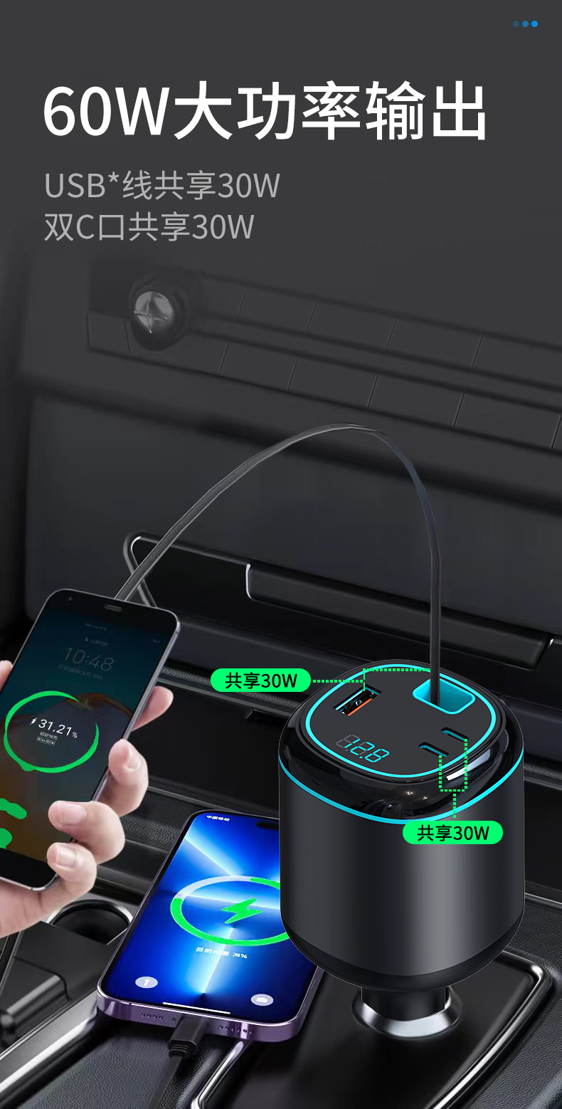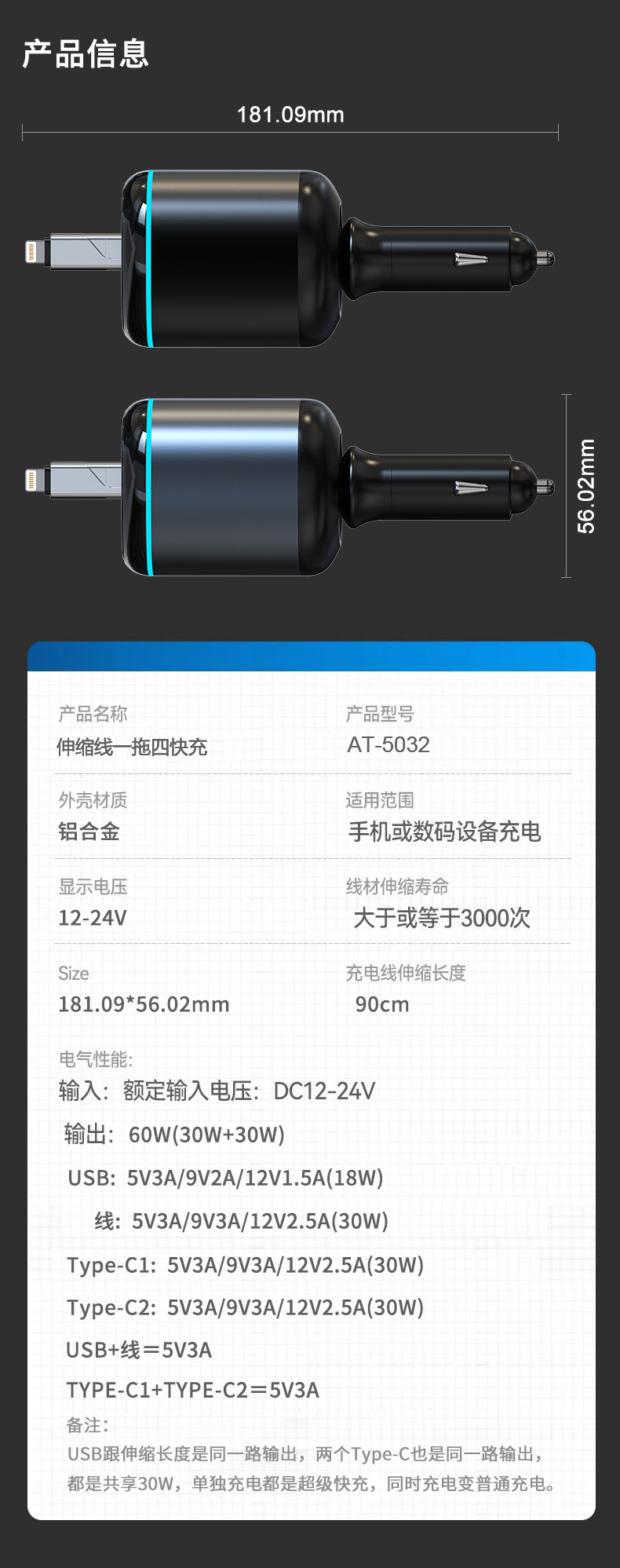 Auto Travel美旅一拖四伸缩线车载充电器AT-5032