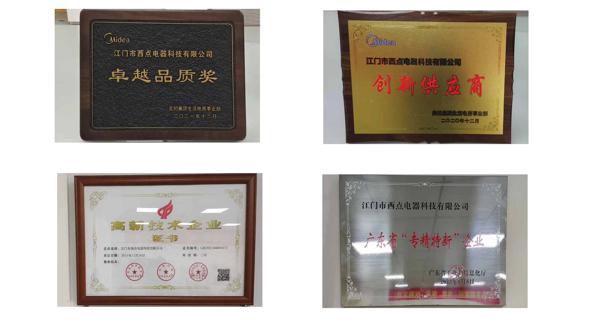 工厂获得:国家级高新技术企业、国家级专精特新企业,卓越品质奖,美的创新供应商奖……