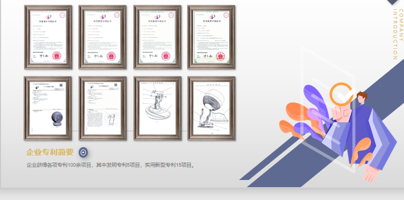 拥有各类专利技术100多项,产品全部符合全球各类认证要求,工厂符合Sedex、BSCI 等全球各类品质认证要求。