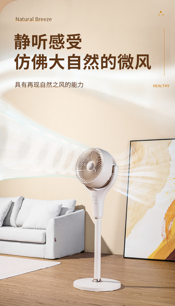 超旋风,自然风,婴儿风,正常风,四种风类模式,适合每一个家庭使用的场景,让循环扇更加的智能。