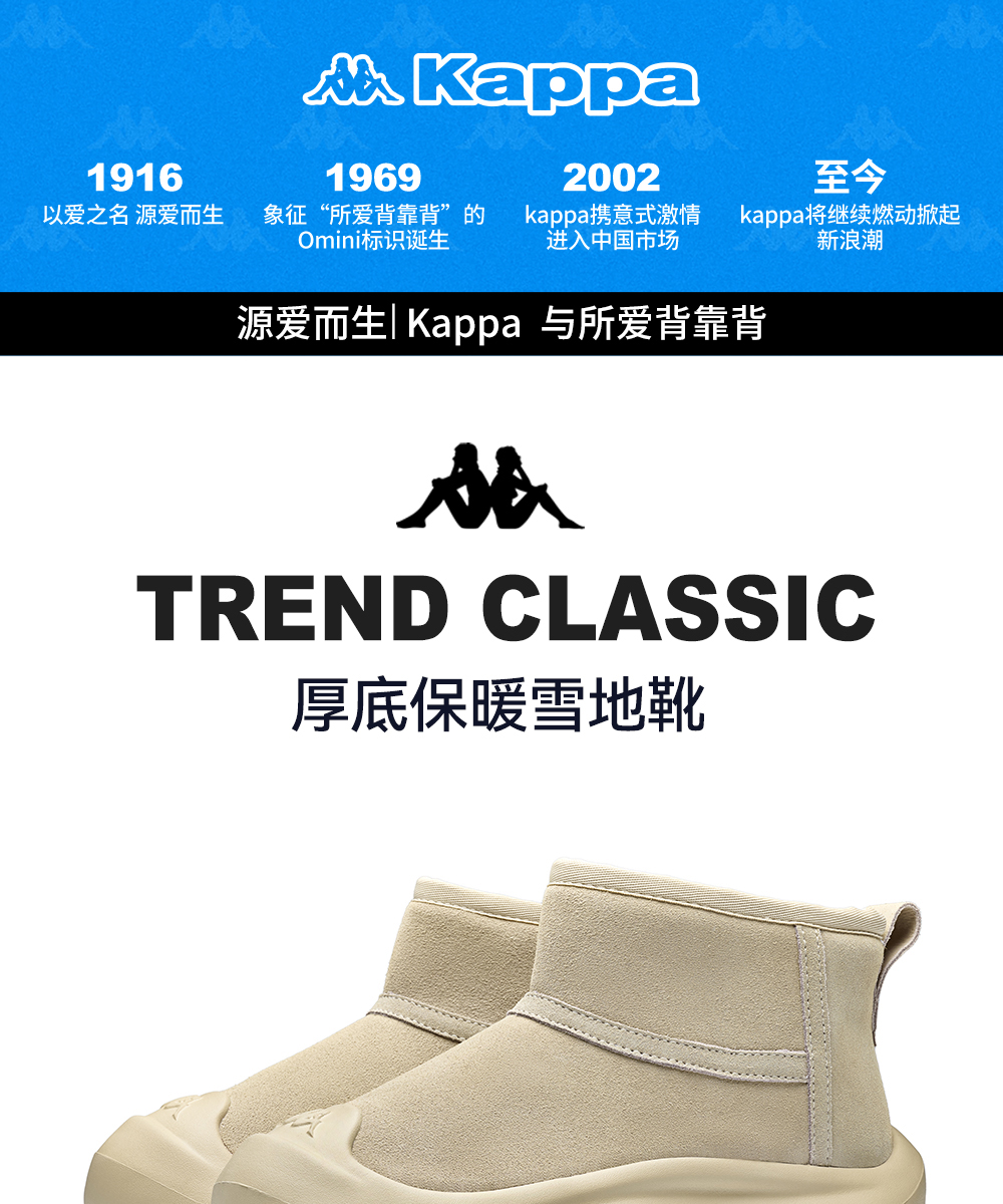 Kappa 雪地靴女2025新款秋冬加绒保暖棉鞋女面包鞋短靴K0F85CC44R