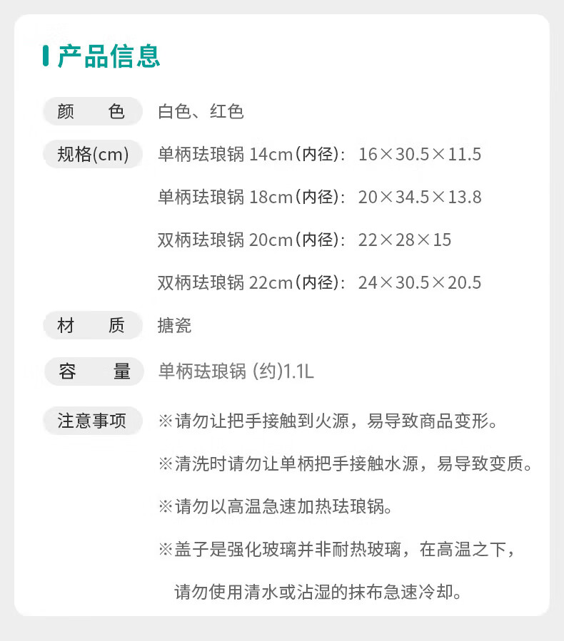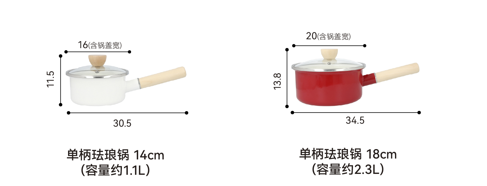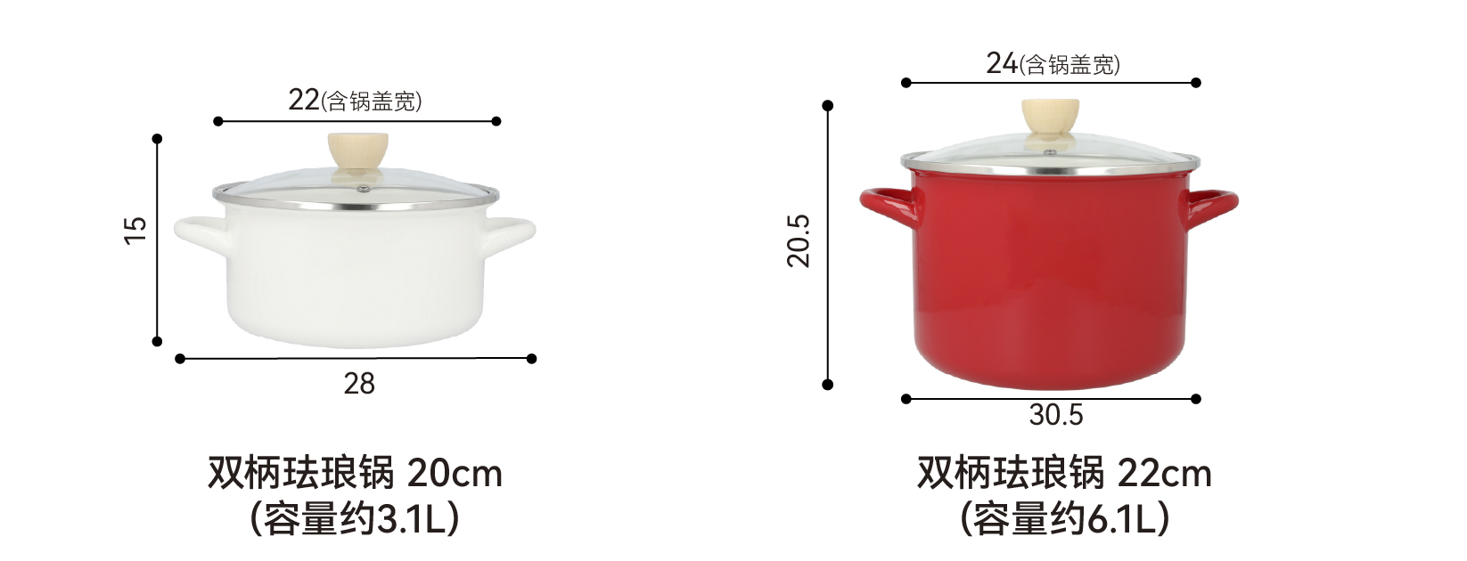 单/双柄珐琅锅 白色/红色 14cm/18cm/20cm/22cm