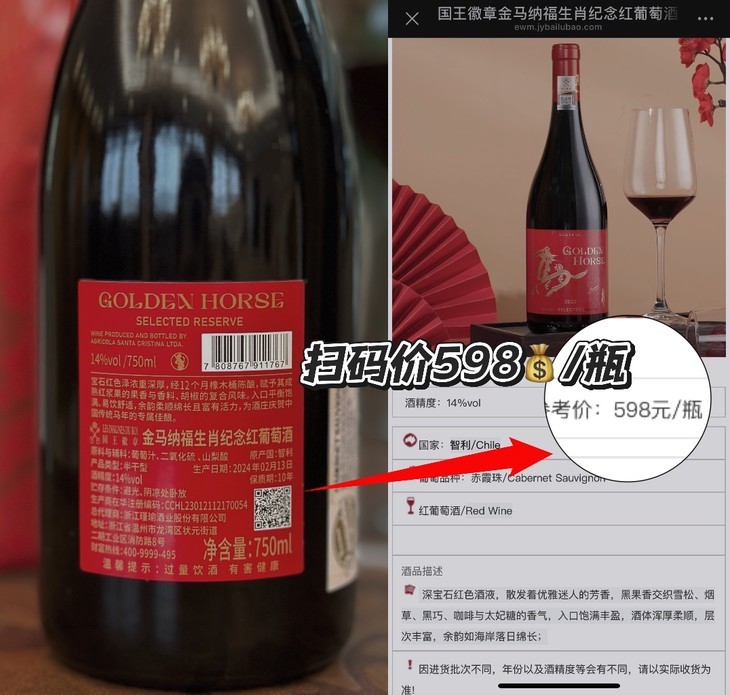 「金马纳福」生肖纪念红酒,智利原瓶进口,致敬徐悲鸿大师。马年生肖限量️,399元6瓶,太实惠了!