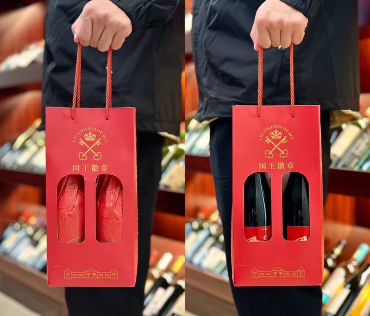 定制“中国红”烫金彩箱,赠3个双支礼袋+1个开瓶器。