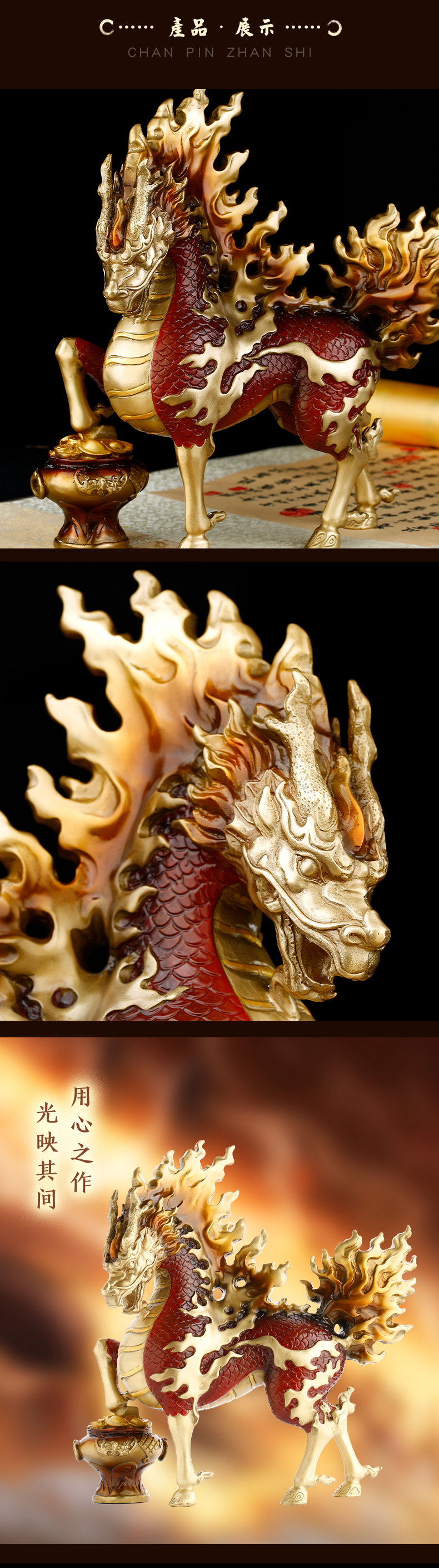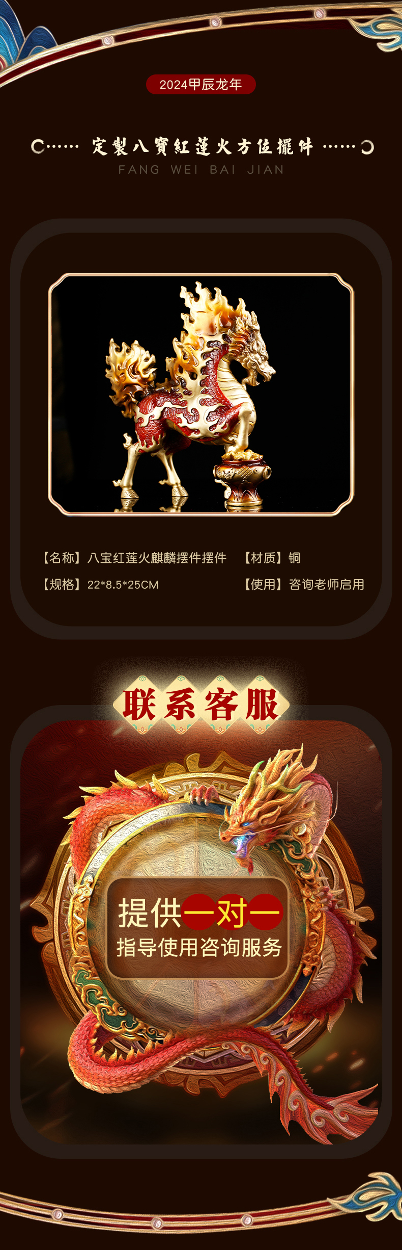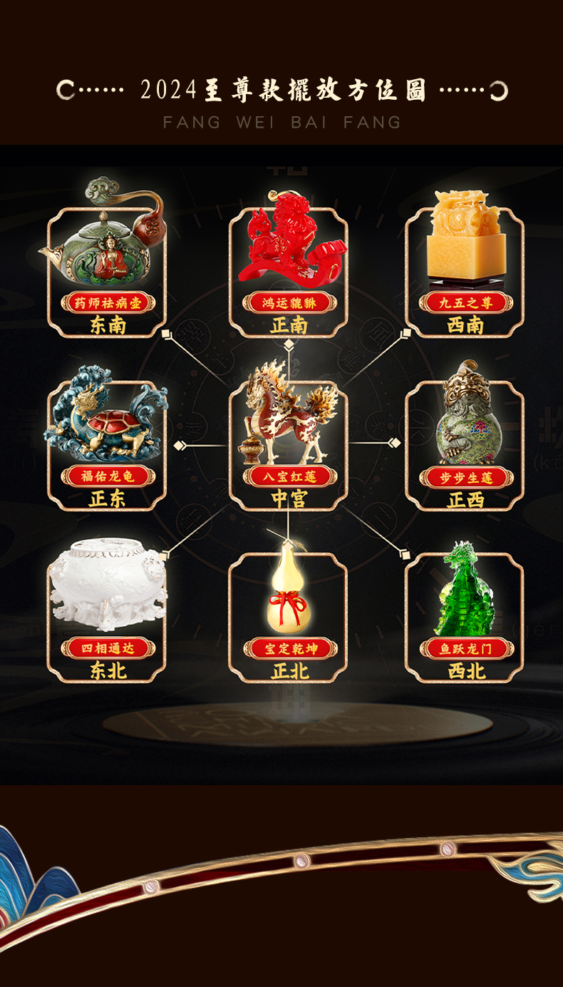 慈元阁2024年方位吉祥物八宝红莲火麒麟摆件家居玄关客厅办公室书房摆设