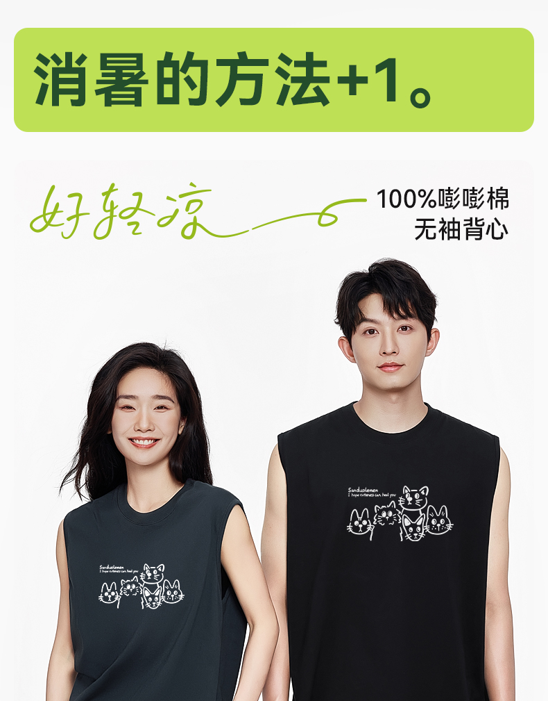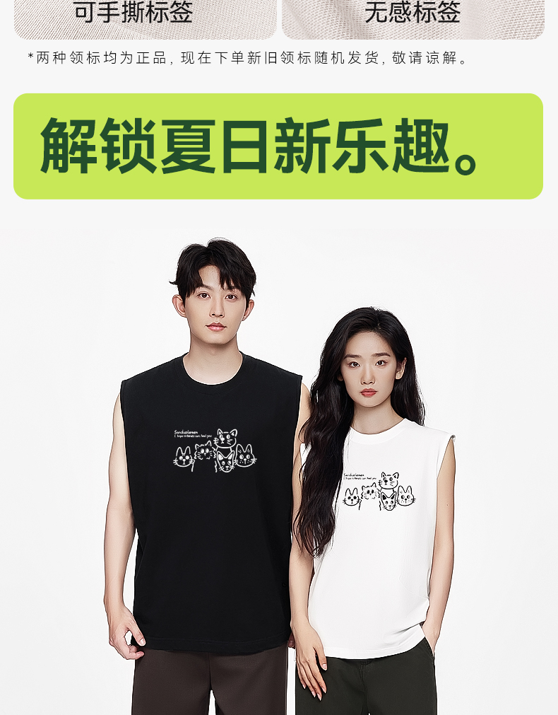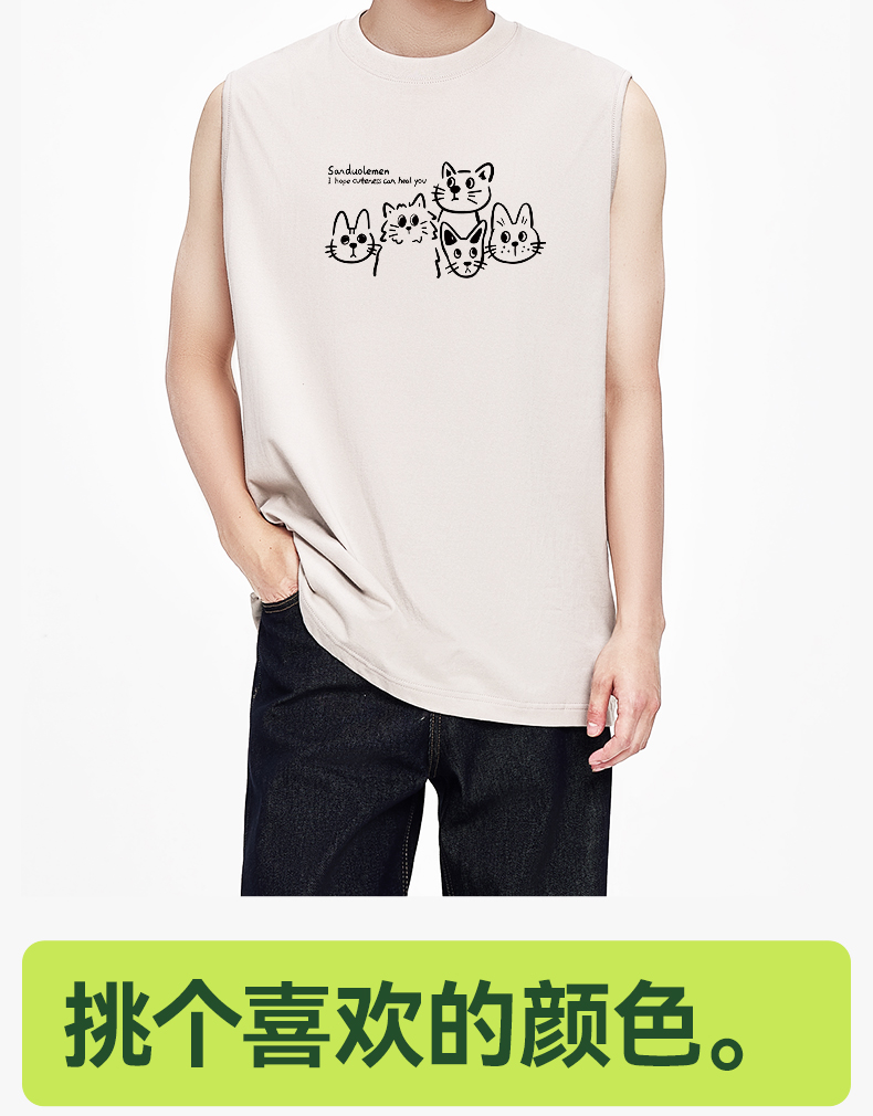 「棉的美学」重磅纯棉背心印花款运动健身透气休闲宽松无袖T恤