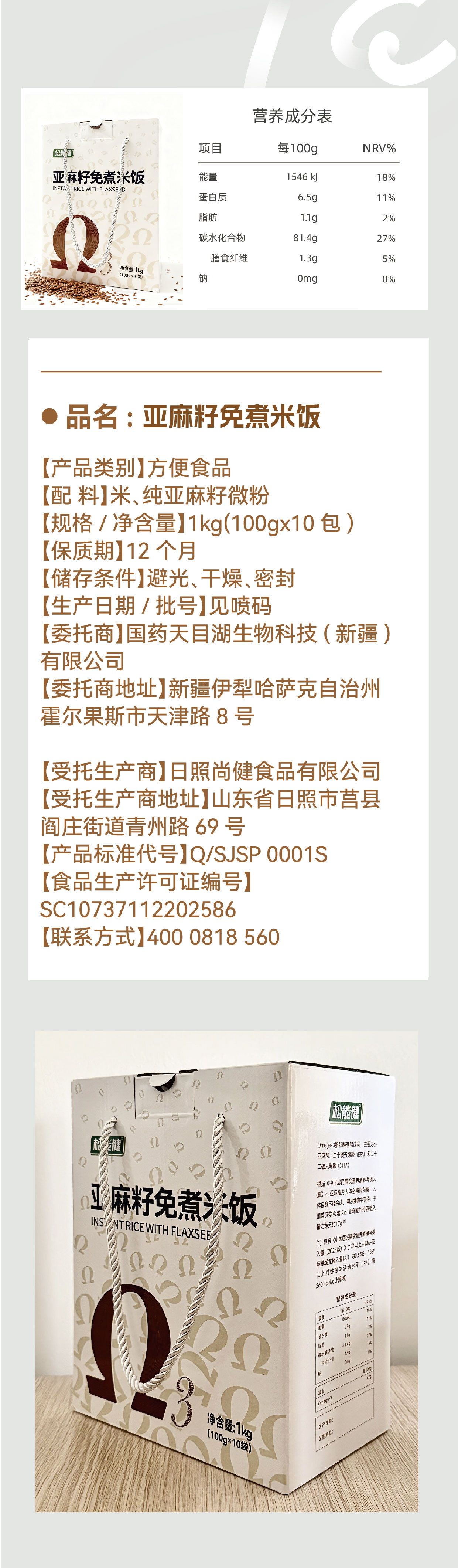 【松能健】亚麻籽免煮米饭100g/10盒