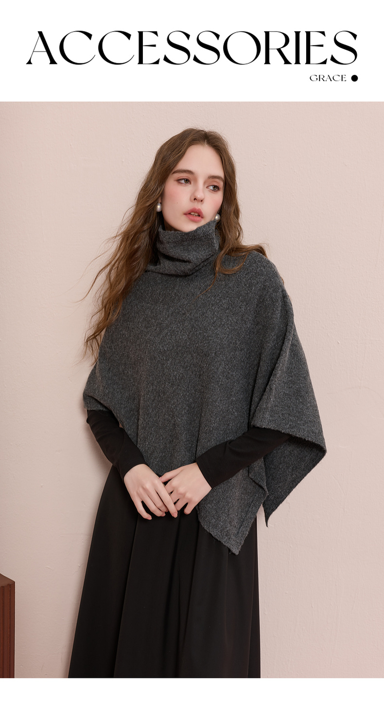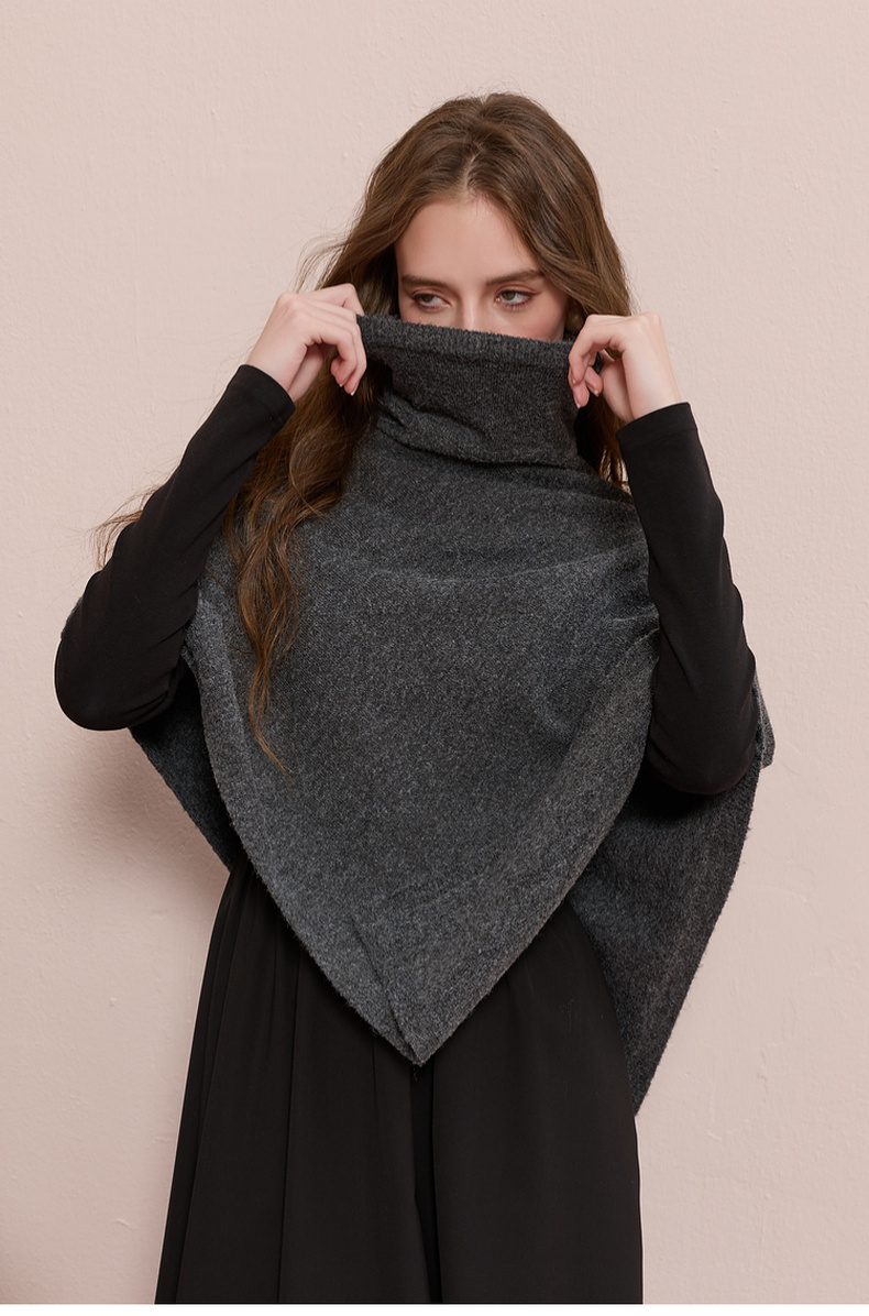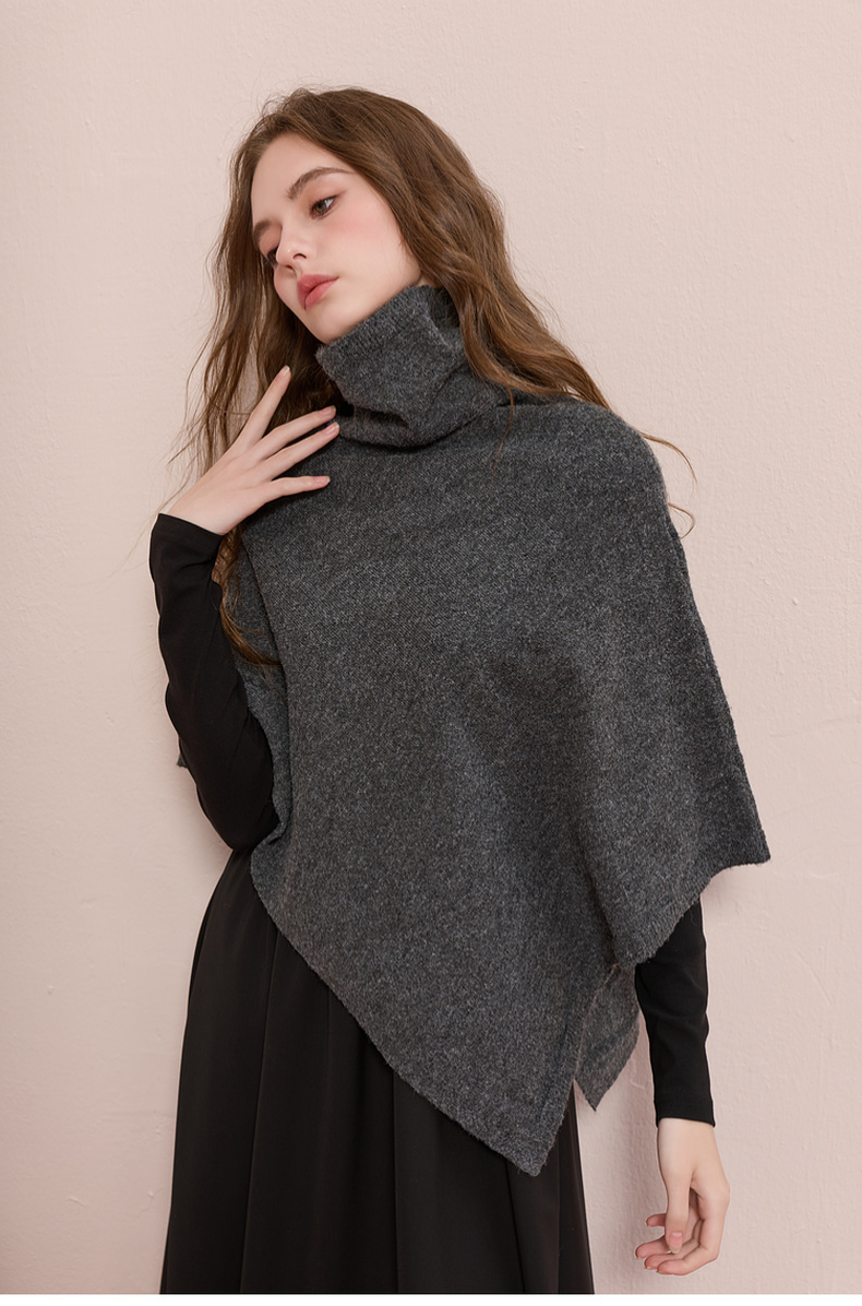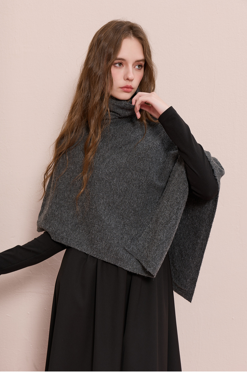 【绵羊毛】三彩2025新款知性风毛绒高领披肩保暖女氛围感通勤松弛