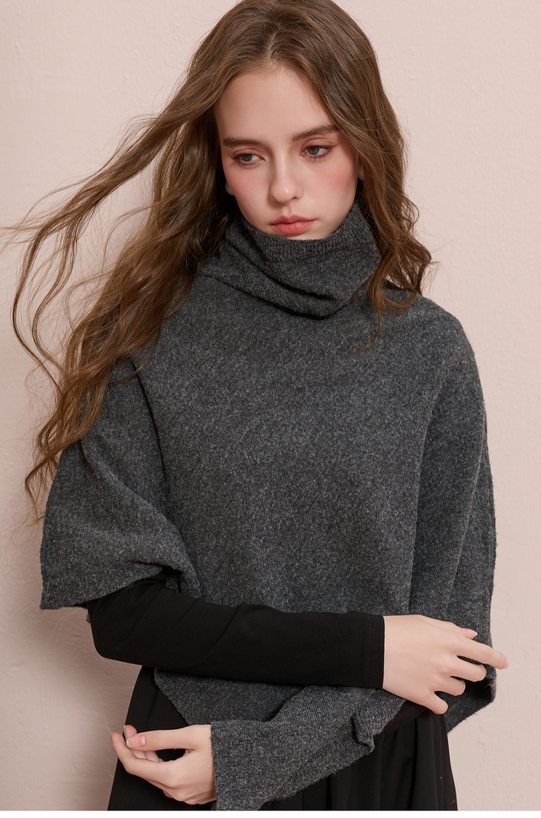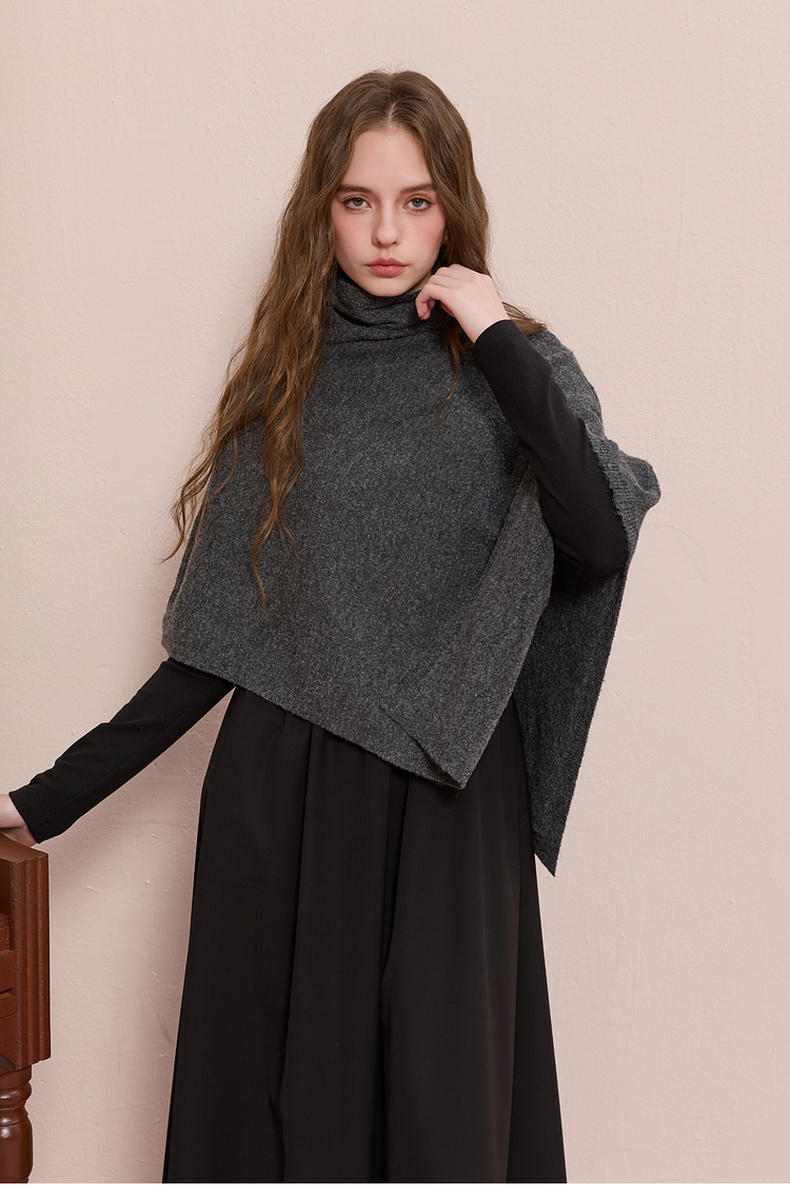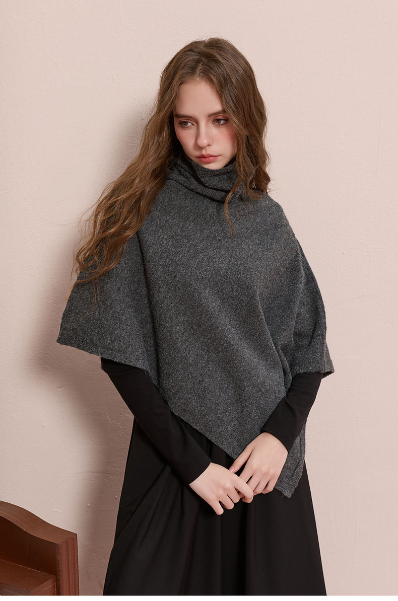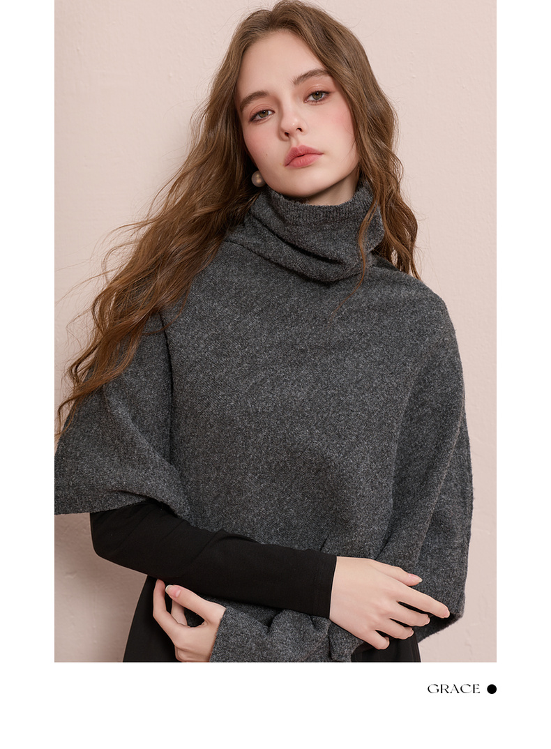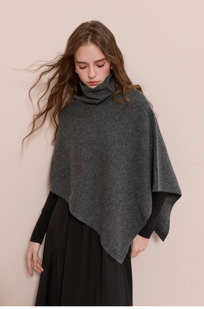 【绵羊毛】三彩2025新款知性风毛绒高领披肩保暖女氛围感通勤松弛
