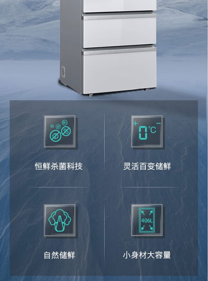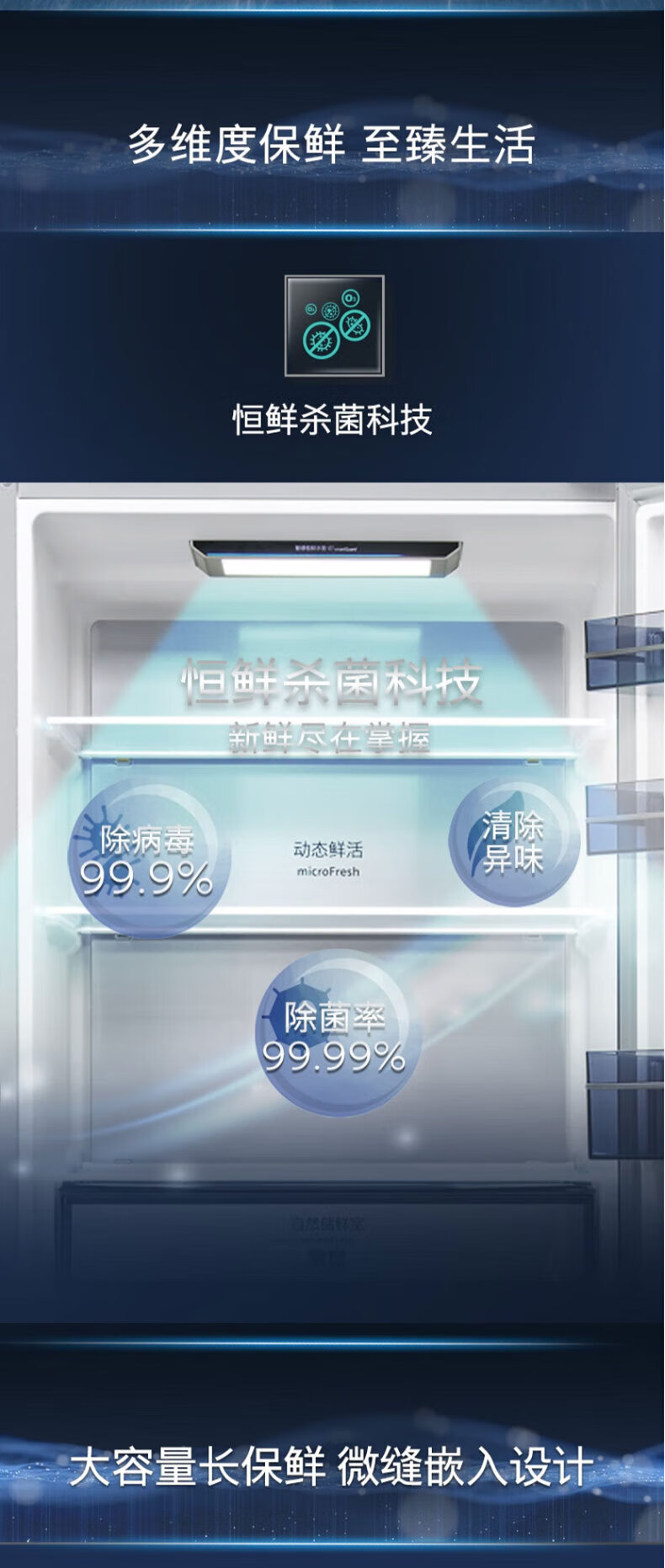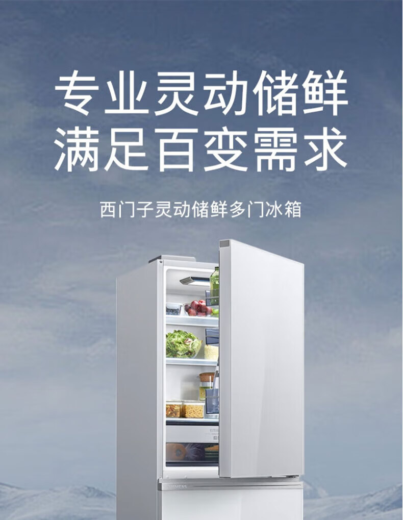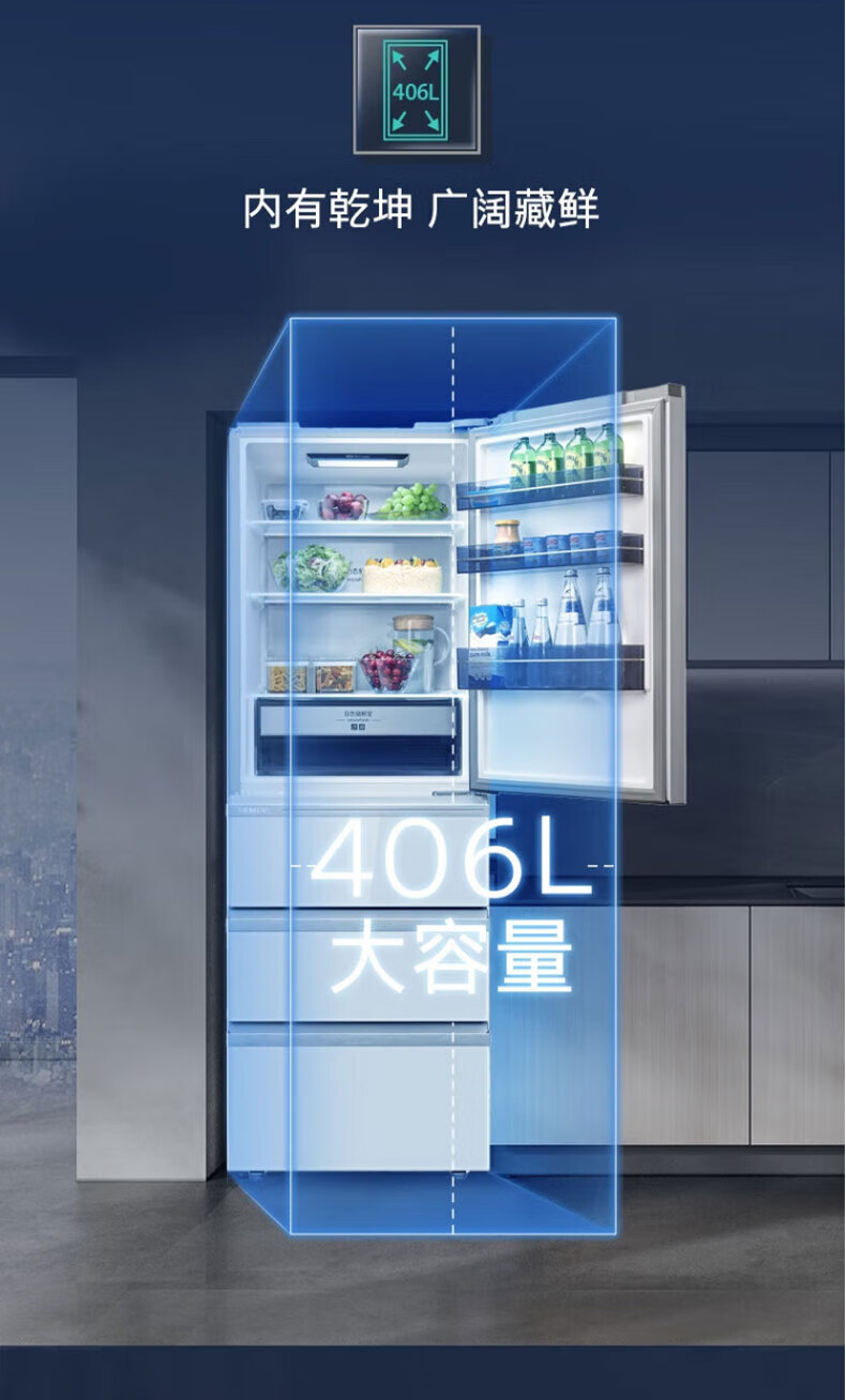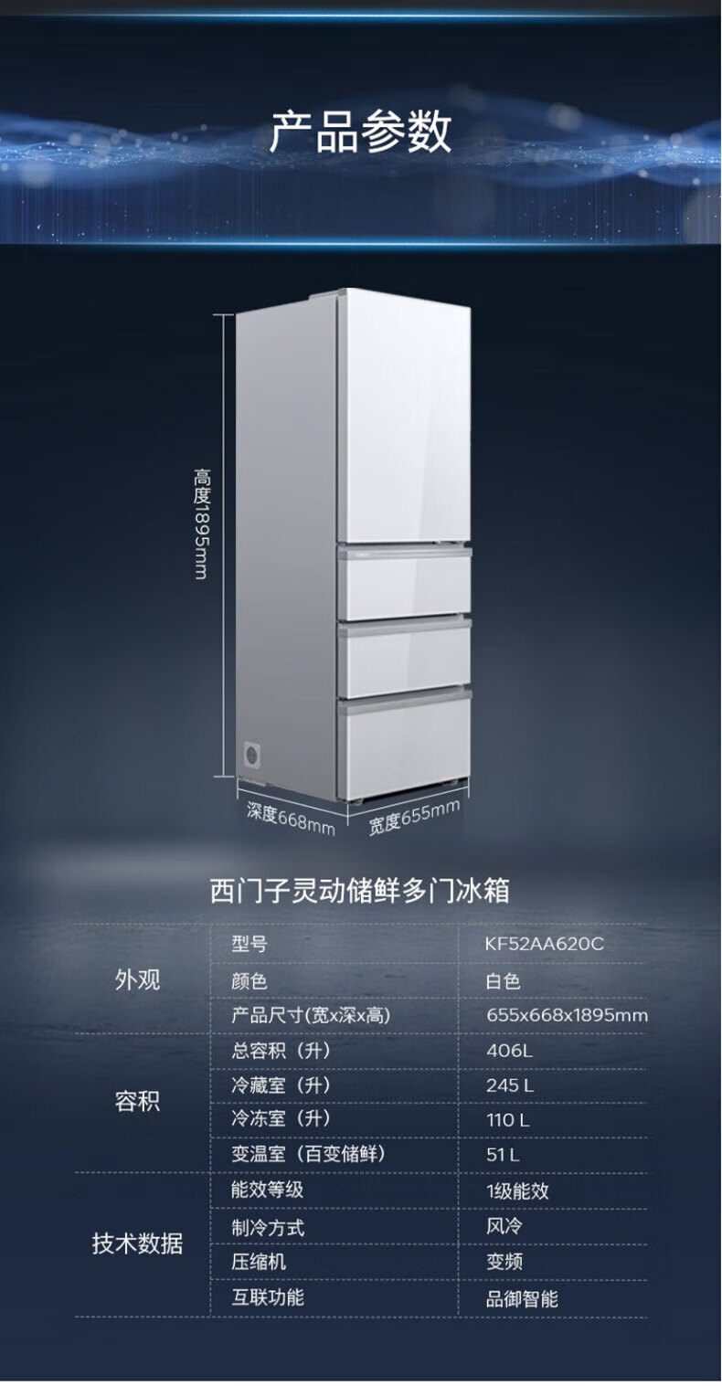 西门子/冰箱/KF52AA620C/406升四开门百变储鲜微缝自由嵌入风冷无霜恒鲜除菌科技智能远程控制家用冰箱
