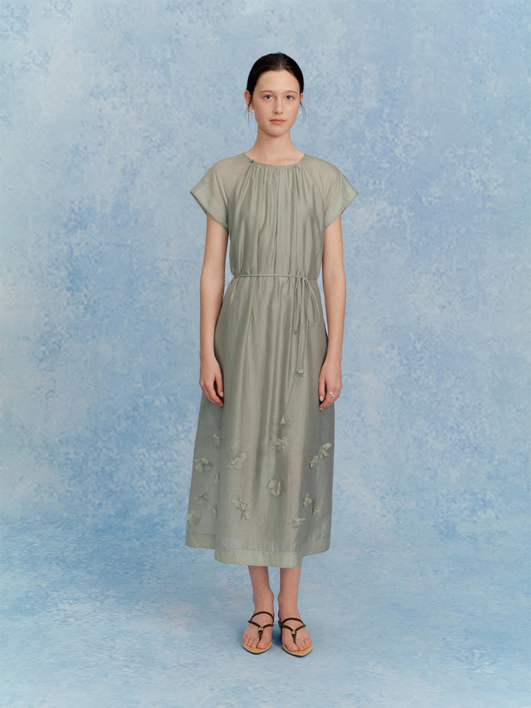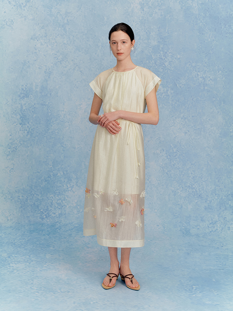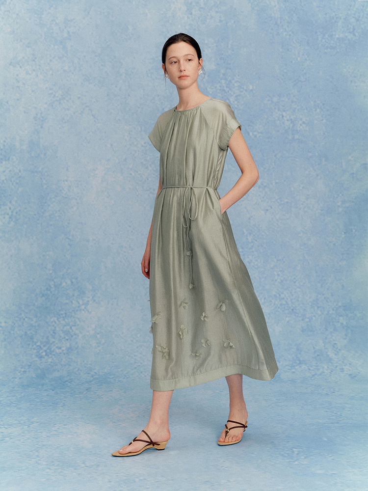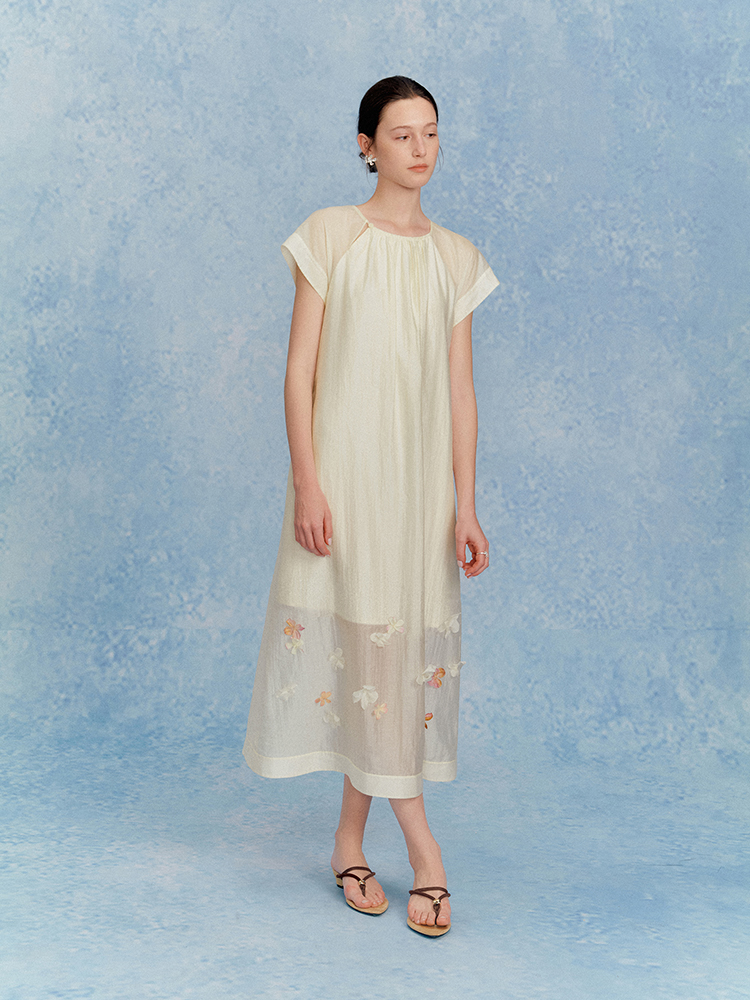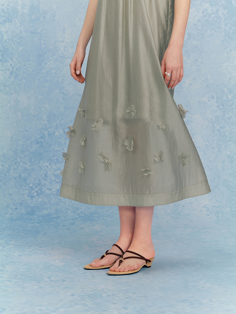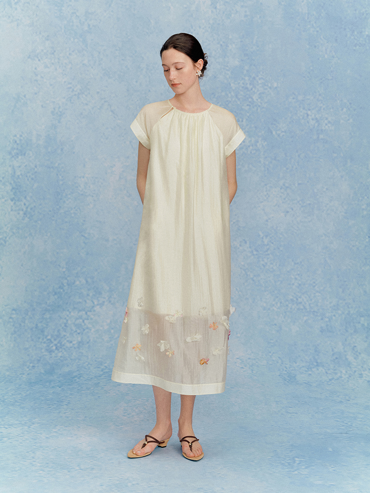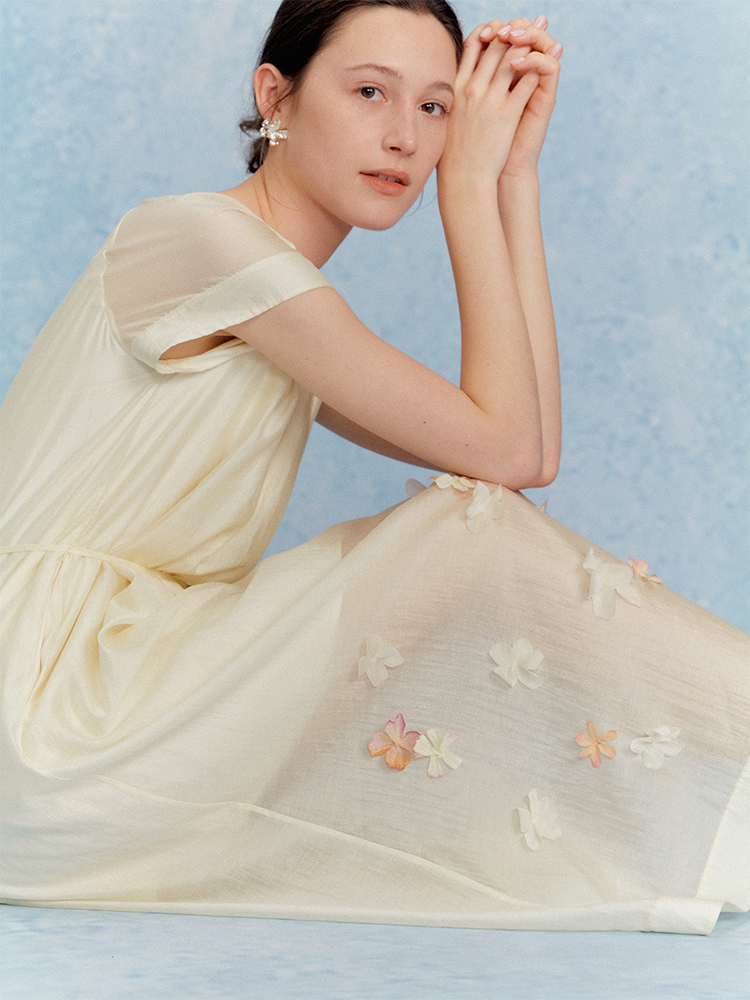 ForPoem 现货 25/SS原创设计花瓣醋酸双层立体花长款连衣裙