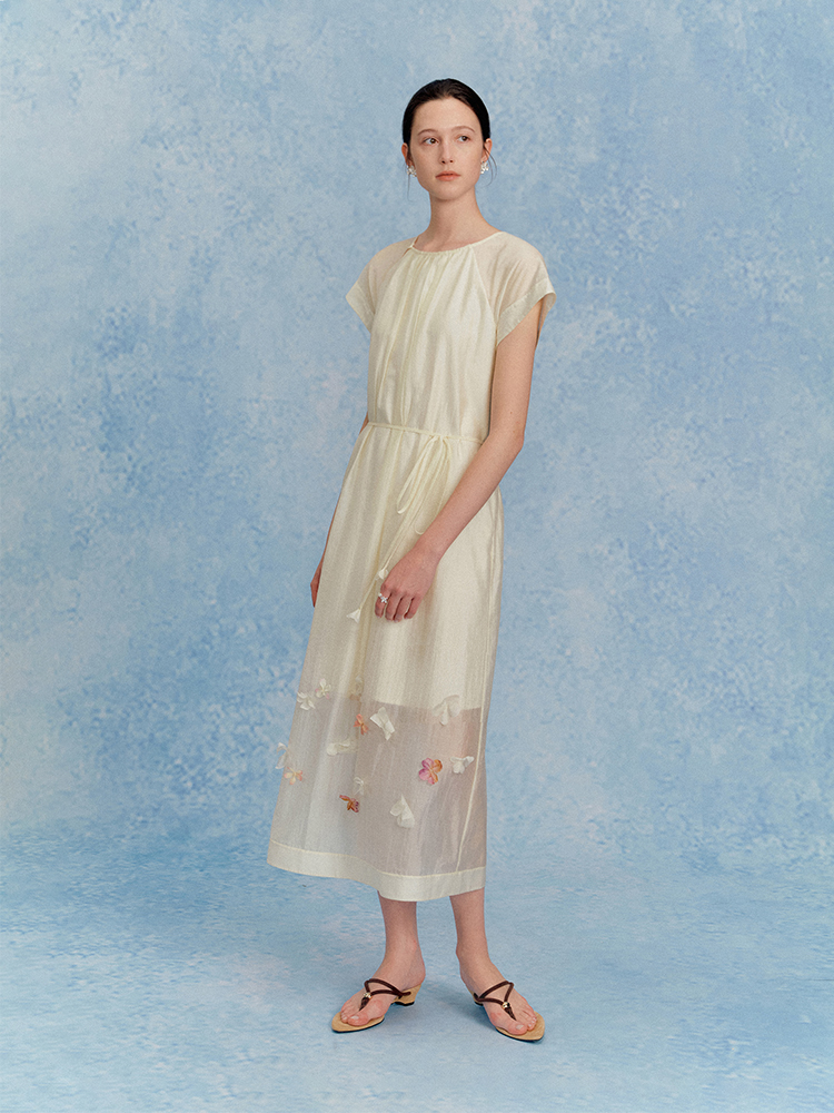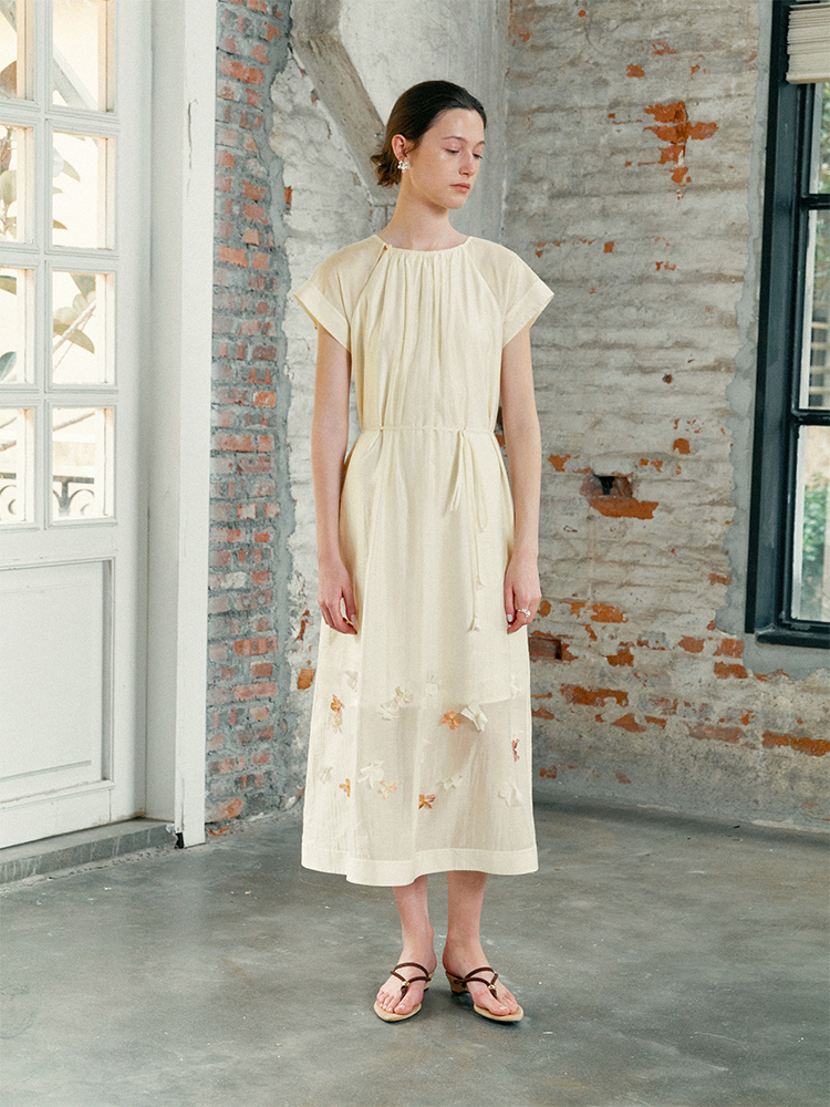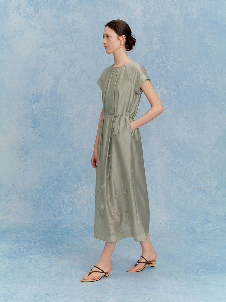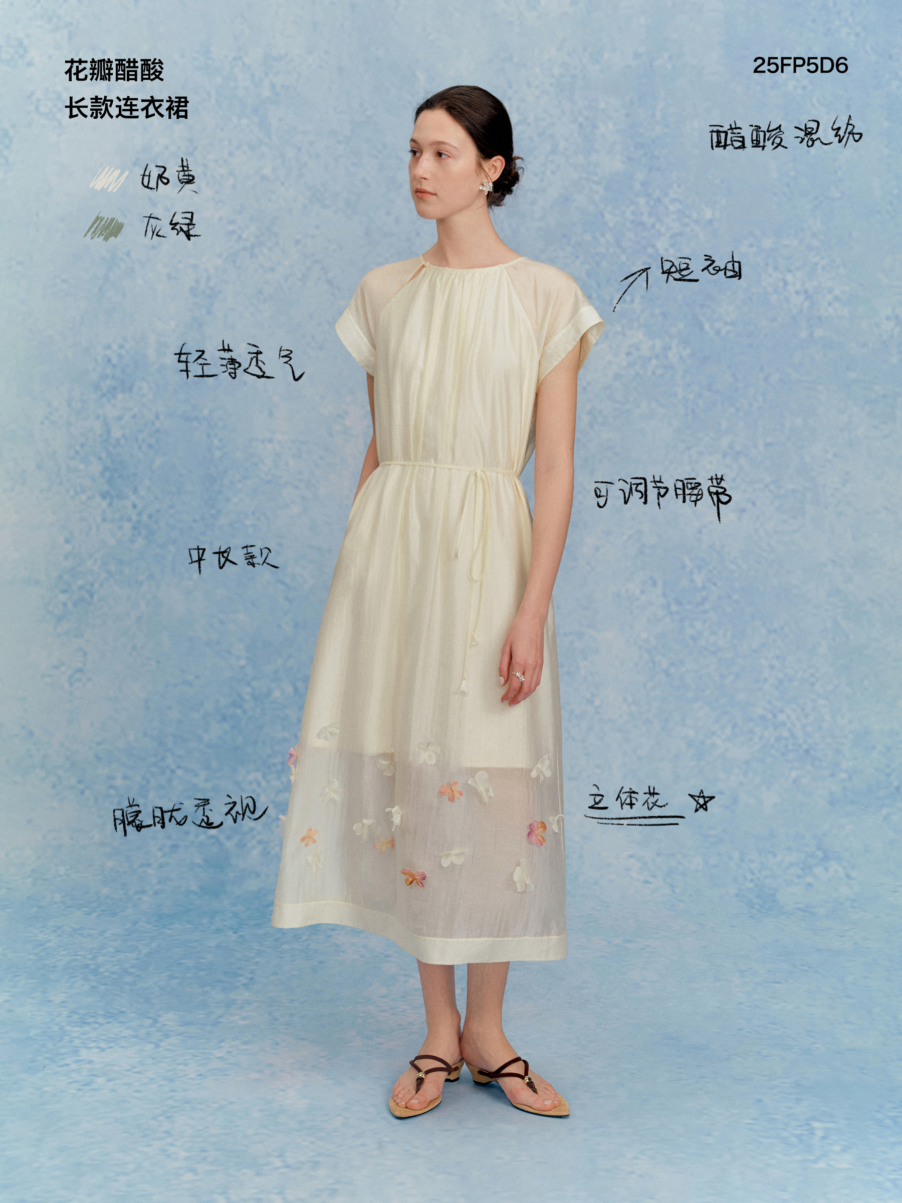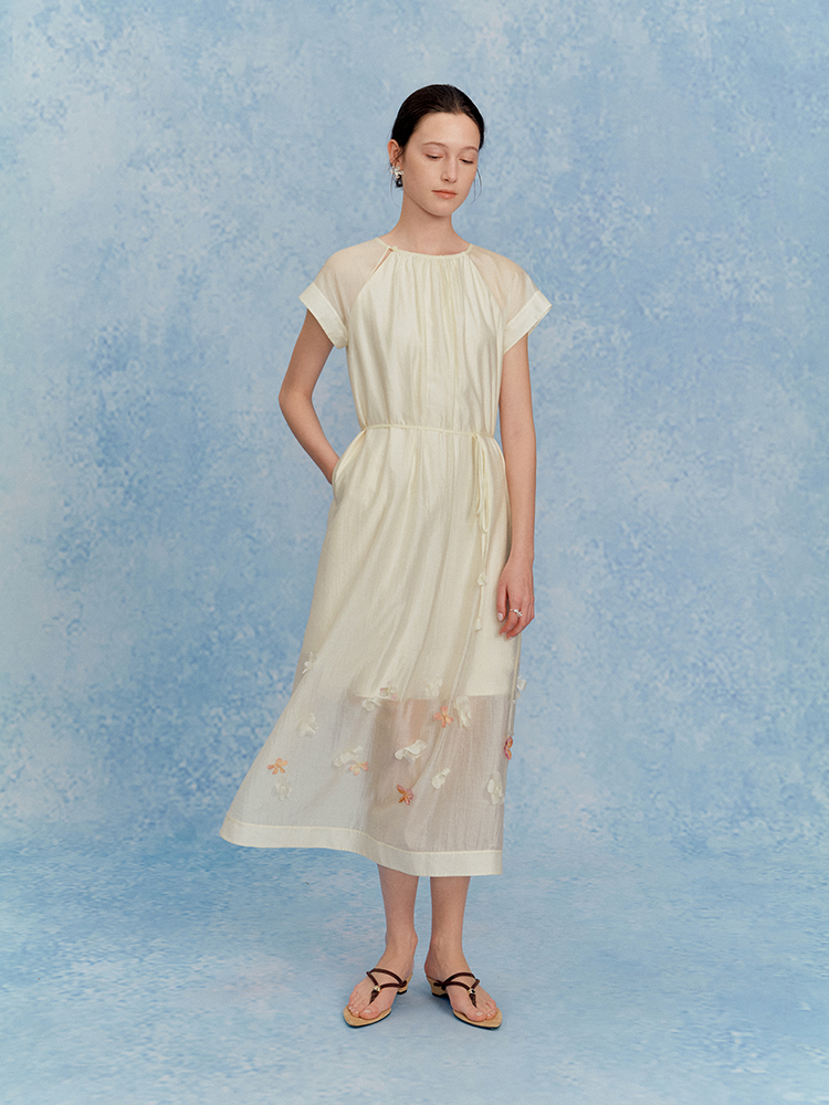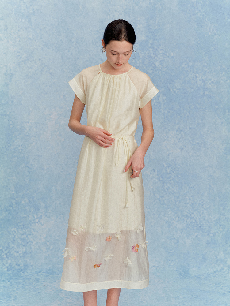 ForPoem 现货 25/SS原创设计花瓣醋酸双层立体花长款连衣裙