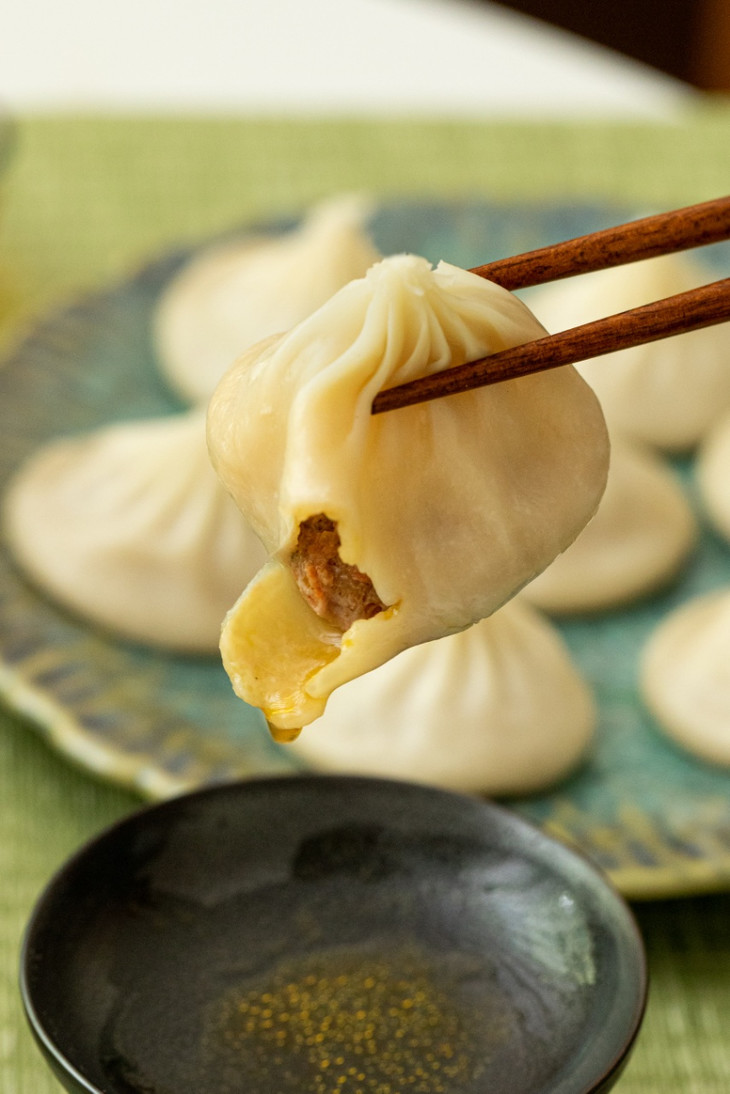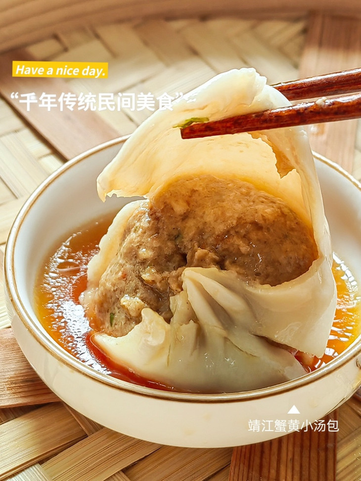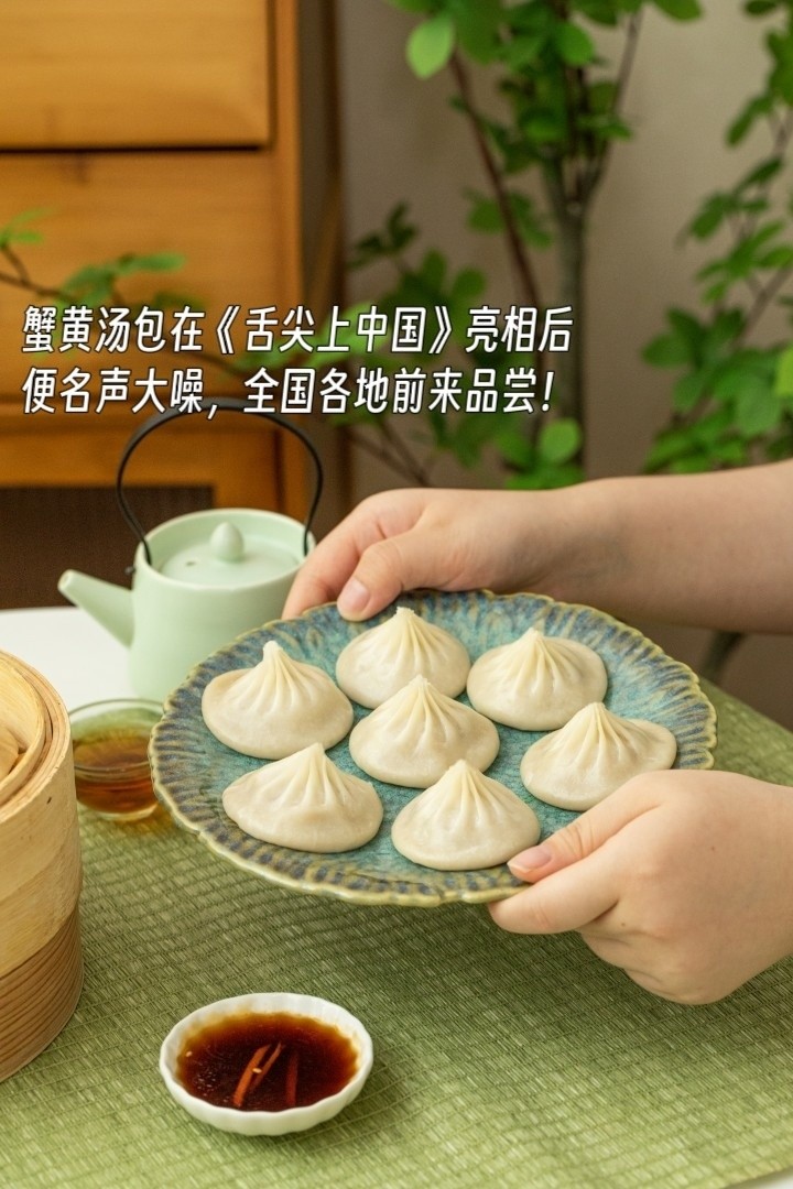 河蟹产地的靖江, 很会利用食材创作美食。 蟹黄汤包在《舌尖上中国》亮相后, 便名声大噪, 从此百年传统经典美食 从此在全世界风靡!