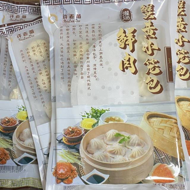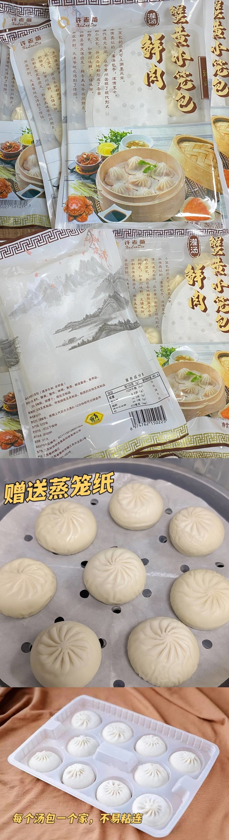 【产品说明】 名称:蟹黄小笼汤包(速冻生制品) 品牌: 许老爹 内物包含:小麦面粉、蟹黄、猪肉、味精、黄酒、酿造酱油、食用盐、饮用水、杏鲍菇、胡萝卜、香辛料、膨化豆制品 过敏原信息:本产品中含有“大豆及制品类”过敏原! 规格:280g/盒 3盒/箱 6盒/箱 产地:江苏省泰州市靖江 生产日期:详情见包装 保质期:12个月 发货地:江苏靖江 发货时长:48h内发货(疫情期间不确定) 快递:顺丰冷运速递 使用方法:无需解冻,水开后小笼包直接上蒸锅,大火蒸八分钟即可 保存方法:-18℃以下保存