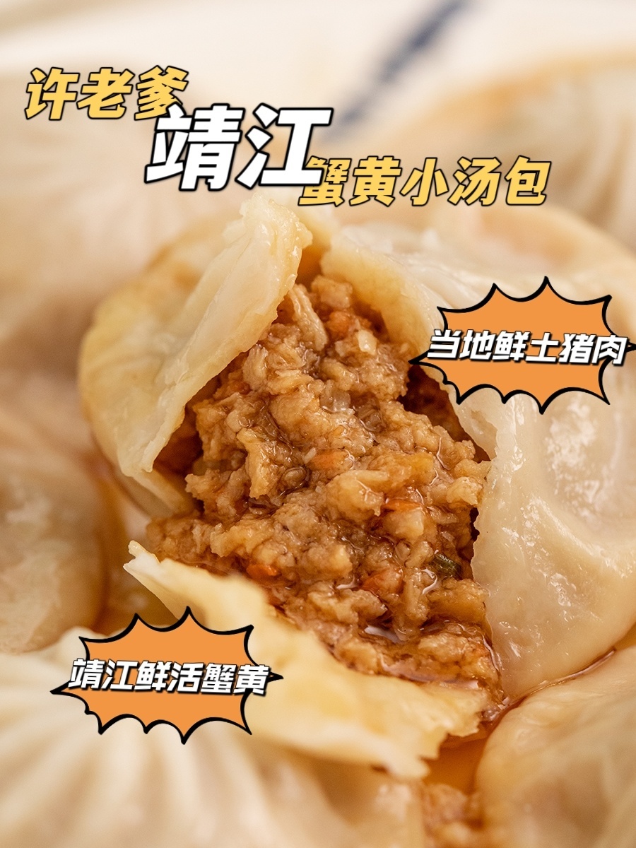 许老爹蟹黄汤包2.0版本 加量不加价,加料狠狠多 有了许老爹🧓 真的不用去靖江, 也能吃到正宗的蟹黄小汤包!