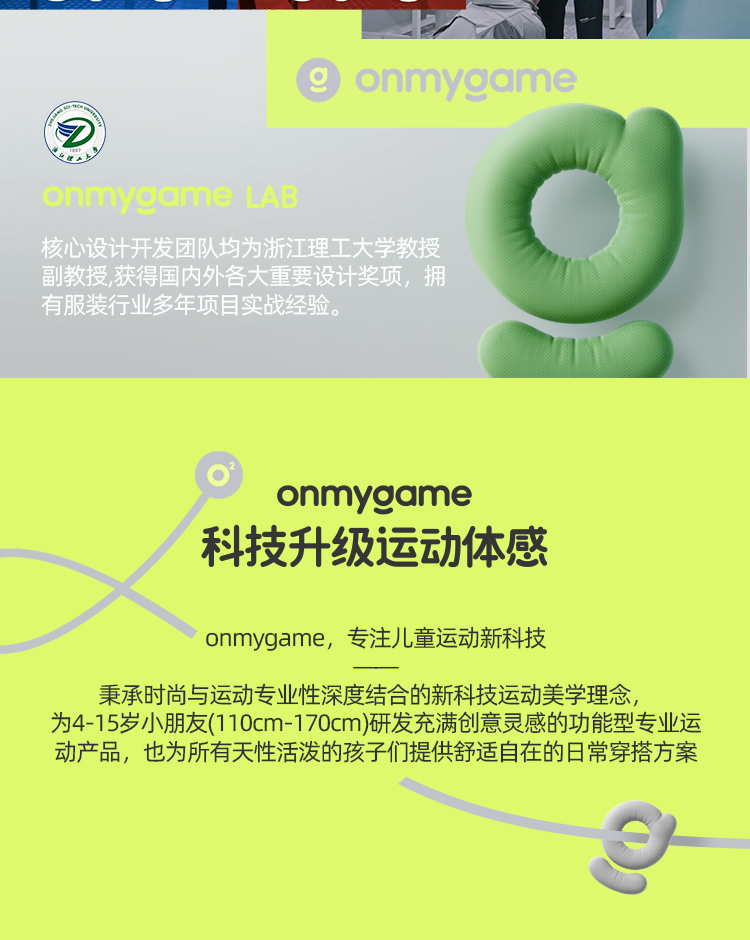 onmygame儿童专业运动品牌男女童款耐脏不易皱,柔软但不软踏